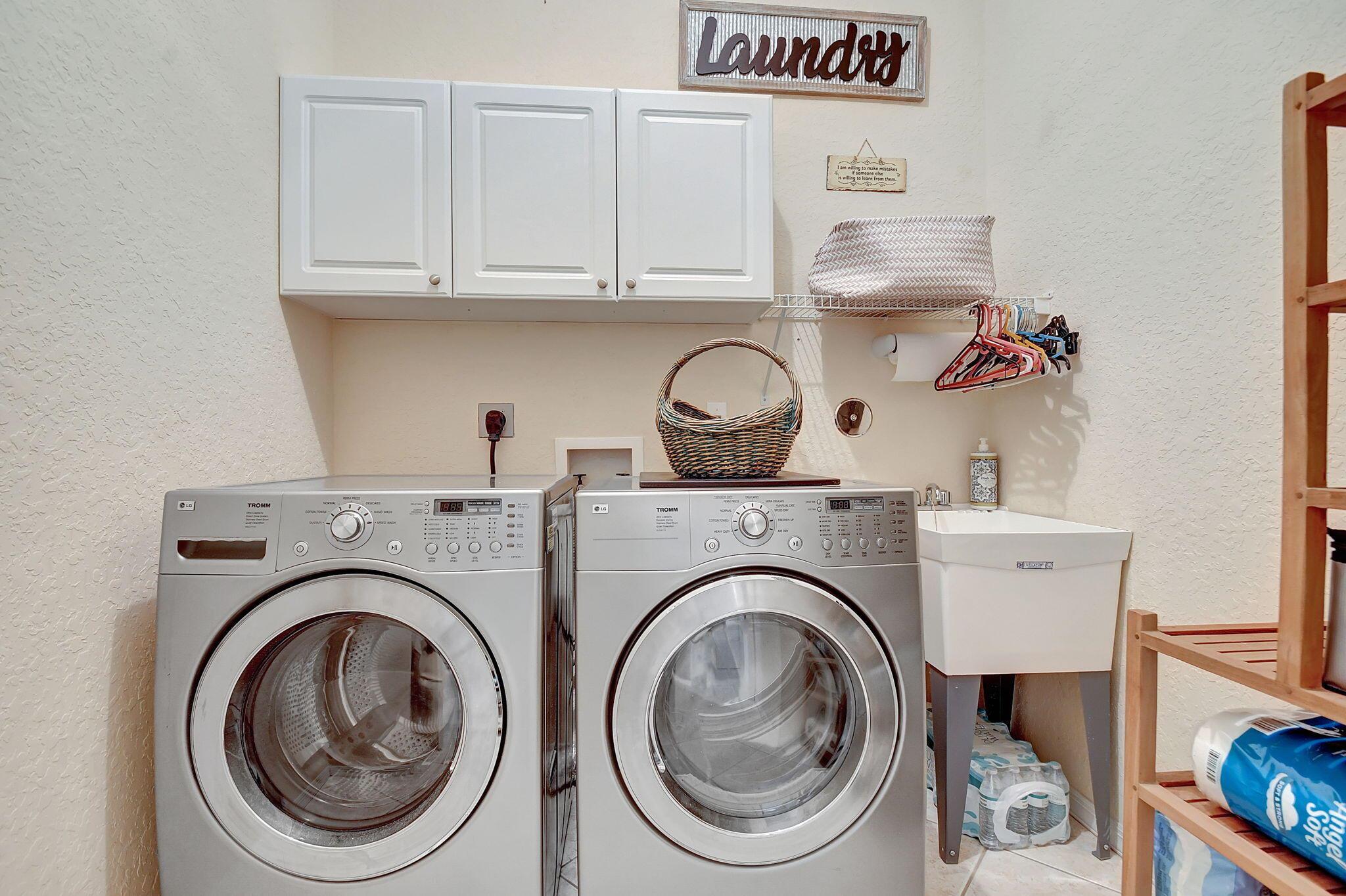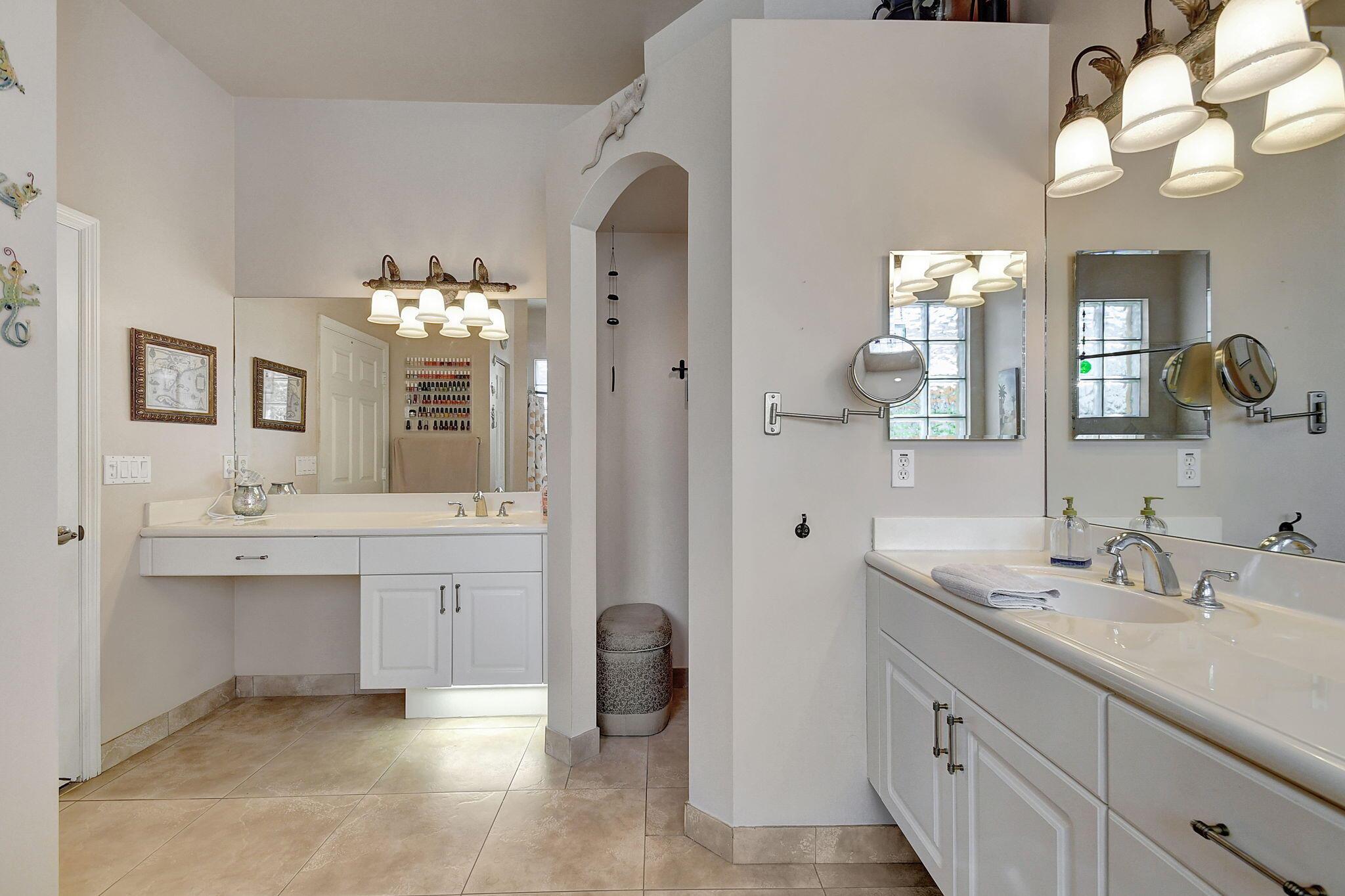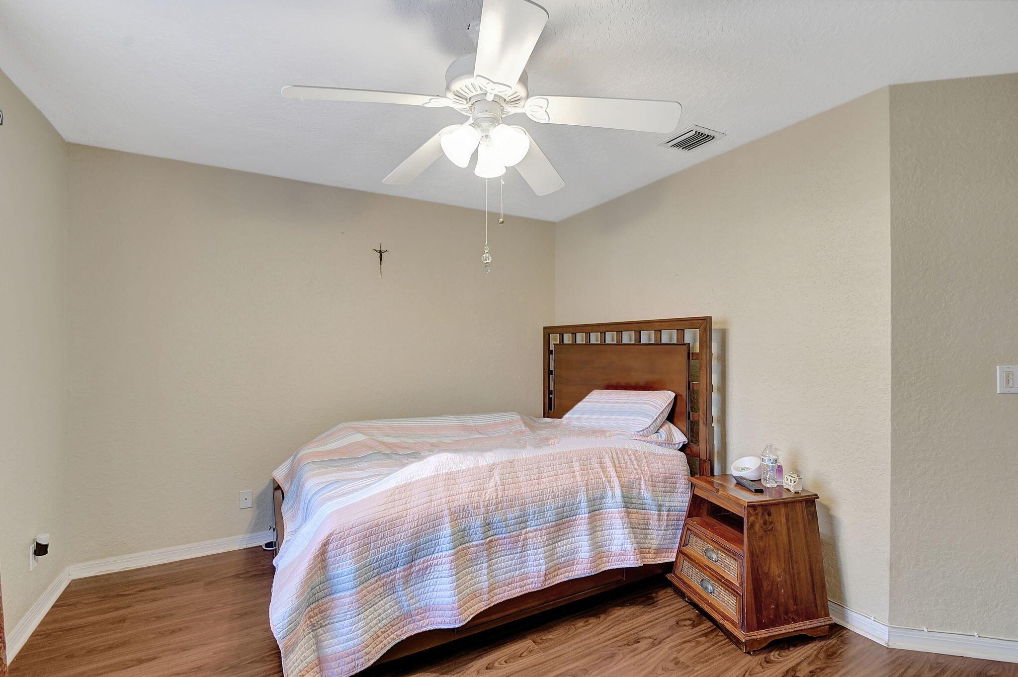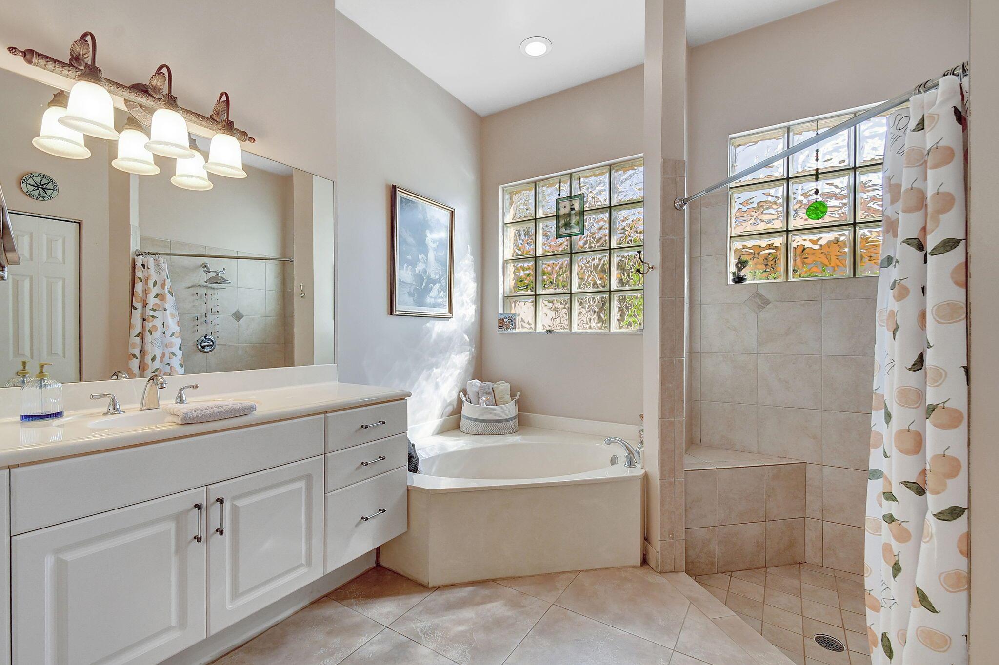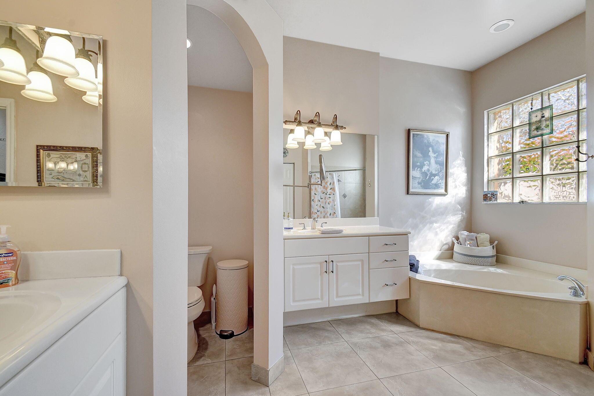 Beautifully maintained and loved home, pride in ownership here! Light and bright with many great features! 2 screen enclosed patios for additional living space, great for entertaining , relaxing and enjoying. High vaulted ceilings with sky light and recessed lighting. Water filtration system. High-end LG washer & dryer. Newer roof and AC. Accordion shutters. Large spacious en suite off primary bedroom that boasts a huge walk in closet. Nice corner fenced in lot, with beautiful mature trees and plants. Brick paver driveway. HOA includes basic cable, alarm system, WIFI, internet, lawn maintenance and a resort style clubhouse with lots of amenities and activities all within close walking distance from the house. Close to so many restaurants, shops, PBI, turnpike and beach less than 10 miles!