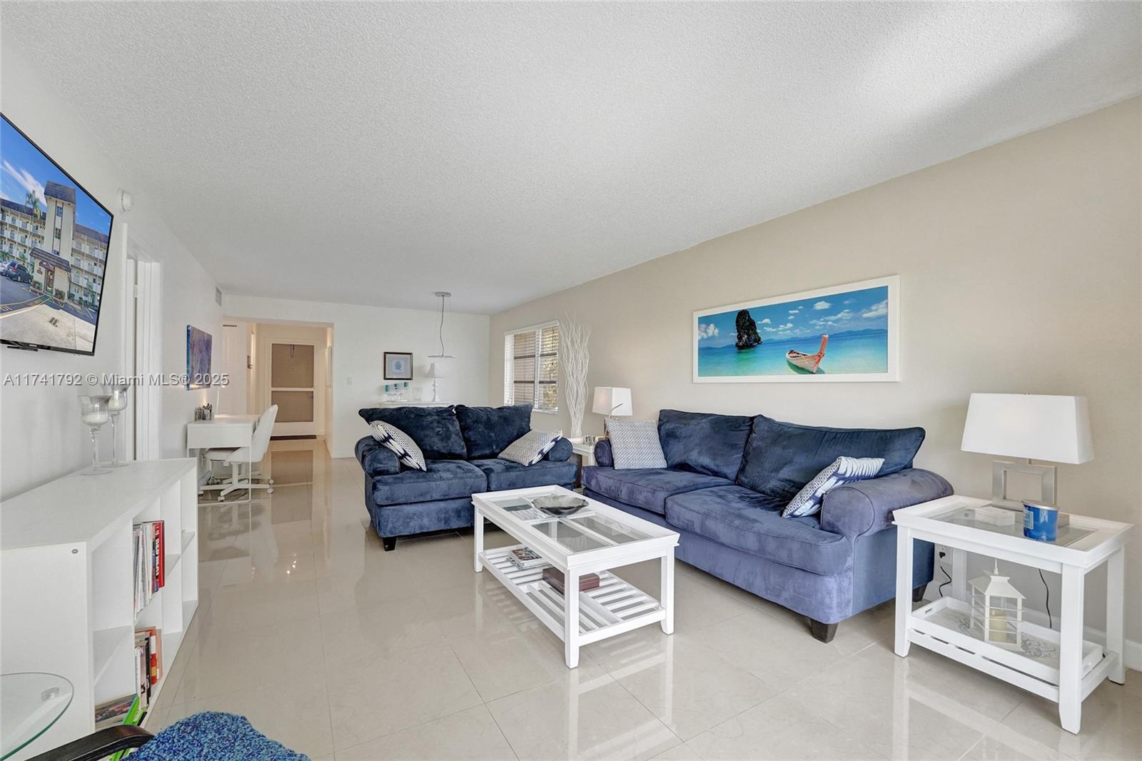 Seller is offering to cover the first six months of the Buyer’s HOA dues at closing. This Corner Unit is light, bright and airy, boasting porcelain tile flooring throughout, updated bathrooms with walk-in showers, and a spacious master suite with two walk-in closets and a tub-shower combo. Tastefully updated, this 2-bedroom 2-bath features modern white cabinets with ample counter space, pull-out drawers, recessed lighting, tiled backsplash, and a stackable washer and dryer in the unit right off the kitchen. This unit is MOVE IN ready, Fully furnished. Enjoy peace and privacy in this quiet end unit with a serene garden view. 50 yr recertification completed, NO ASSESSMENTS. Building has reserves, newer roof (2020), heated pool, security gate...cable and internet included. 55+ community.