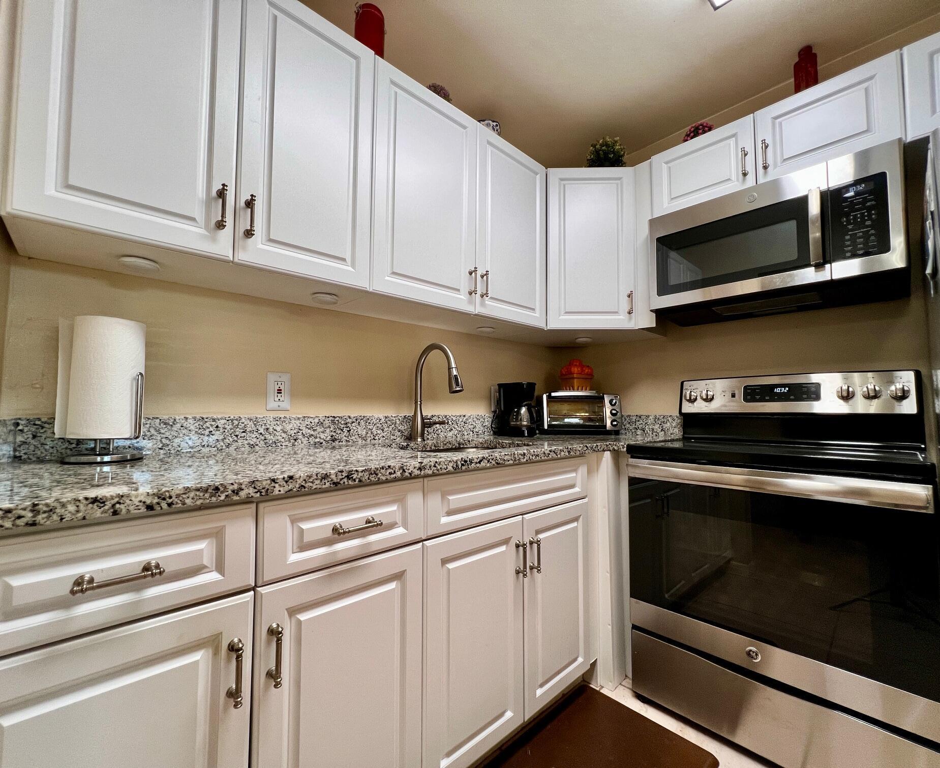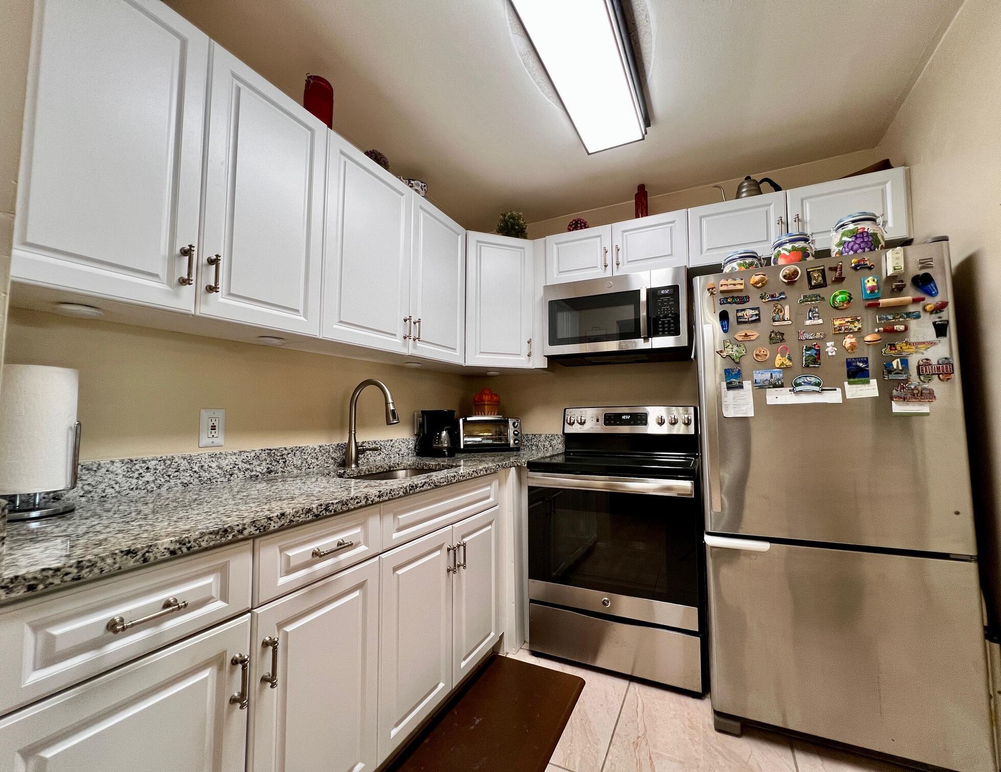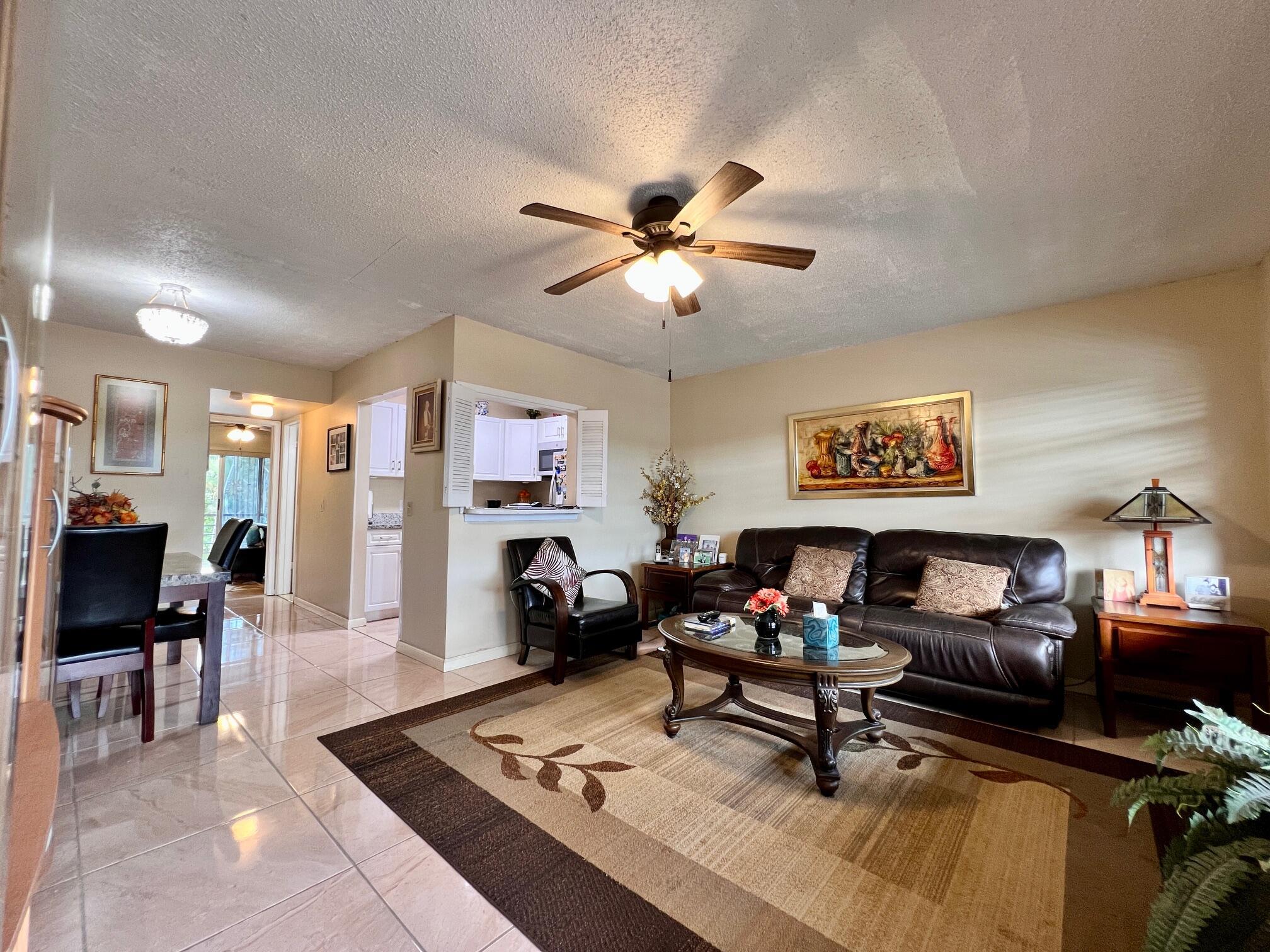 Well Priced & Delightful With Pretty Water Views in 55+ Century Village! Move-in Ready 1/1 With Numerous Updates. Lovely Updated Kitchen with White Cabinets, Granite Counters, and Stainless Appliances. Updated Bath With Step-in Shower. Gleaming Tile Flooring in Living Area. Updated Front Windows & Accordion Shutter Across the Back. Pretty Water Views from the Lanai. Nicely Maintained Building With New Roof (2022). Century Village is a Resort Style 55+ Community With So Much to Offer...