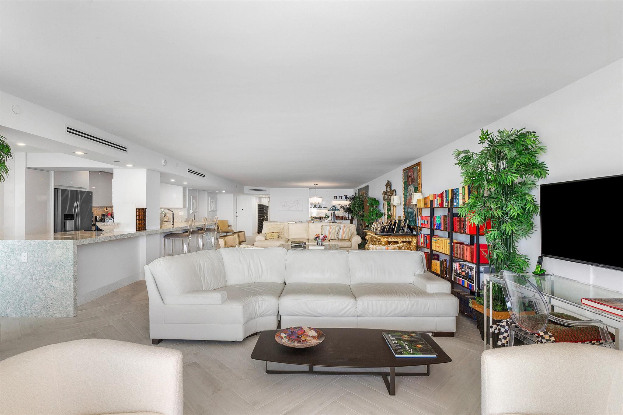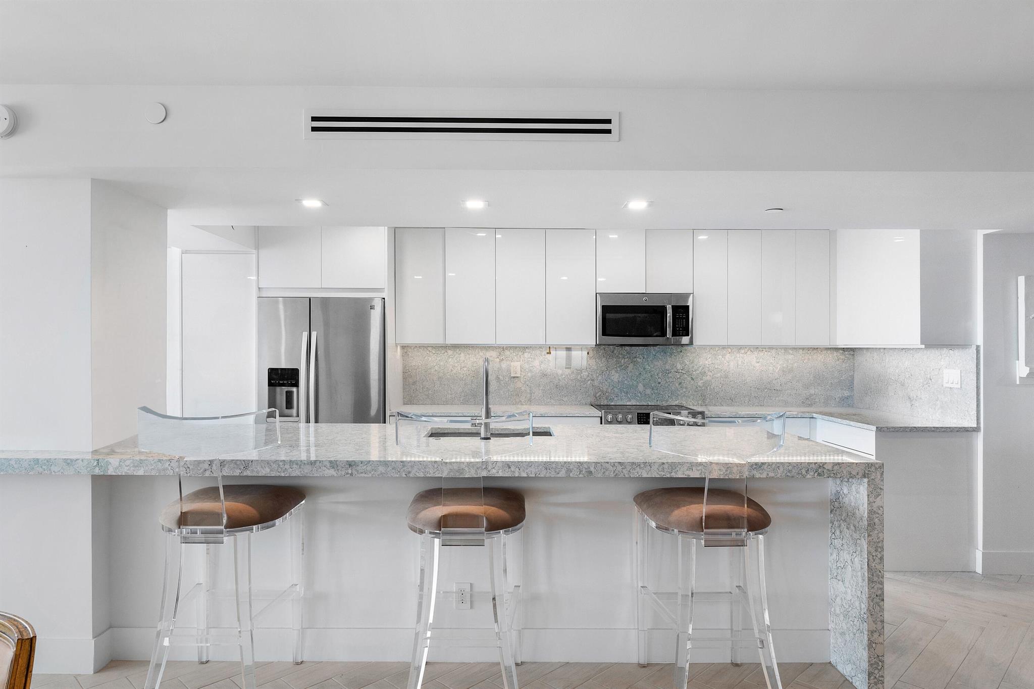 Enter into coastal modern luxury with this fully renovated 2,400sqft, 2-bedroom, 2.5-bathroom oceanfront residence at the exclusive 3600 S Ocean. Accessible via a private elevator entrance, this elegantly designed condo boasts breathtaking direct ocean views to the east and serene sunset vistas to the west from its ultra-large private balconies. The open-concept kitchen w/ ultra-long island and great room are an entertainer's dream, featuring detailed quartz countertops, high-end appliances, a wet bar, and a wine fridge. The residence showcases chevron wood tile flooring throughout, impact glass windows, fitted walk-in closets, and spa-inspired bathrooms. Additional conveniences include an in-unit washer/dryer and two covered parking spaces. Enjoy resort-style living with an oceanfront...