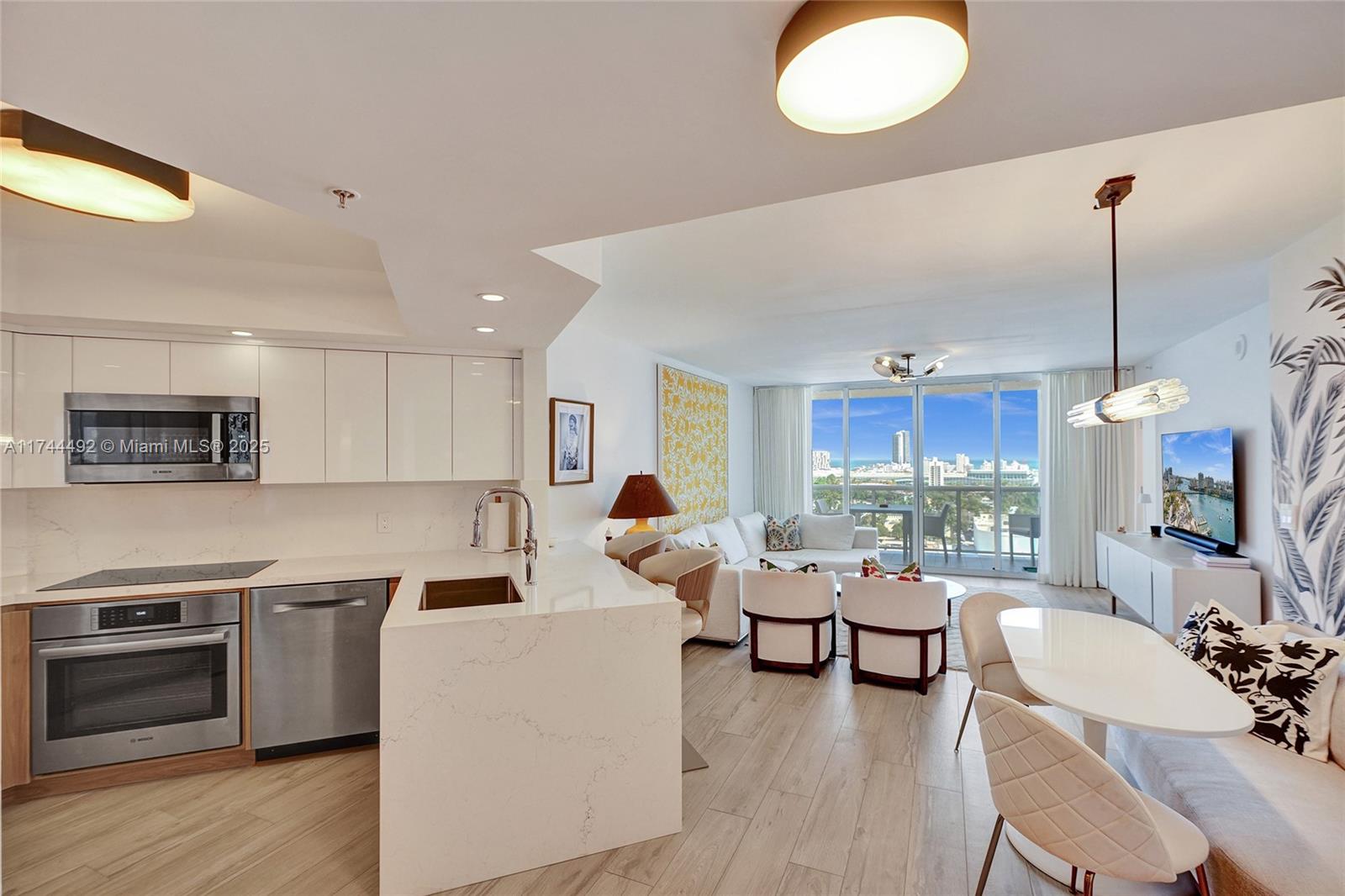 Unparalleled modern 2 bed, 2 bath luxury condo, meticulously renovated by acclaimed designer Anil Kakar. This SE corner gem offers breathtaking bay, ocean, & downtown skyline views from 2 balconies. The one-year gut renovation boasts a turn-key, five-star hotel finish. Gourmet kitchen features custom cabinetry, waterfall quartz countertops, Bosch stainless steel appliances, & porcelain floors. Spa-inspired baths showcase exquisite marble tile, new fixtures, smart toilets, and upgraded plumbing, electric and lighting throughout. Enjoy resort style amenities: 24-hour security, attended lobby, valet, 2 pools, gym, sauna, hot tub, and clubhouse. Neighborhood perks include Fresh Market, Publix, ample dining options, shopping, bayfront park, gyms, and more. Discover the luxury of Sunset Harbour!