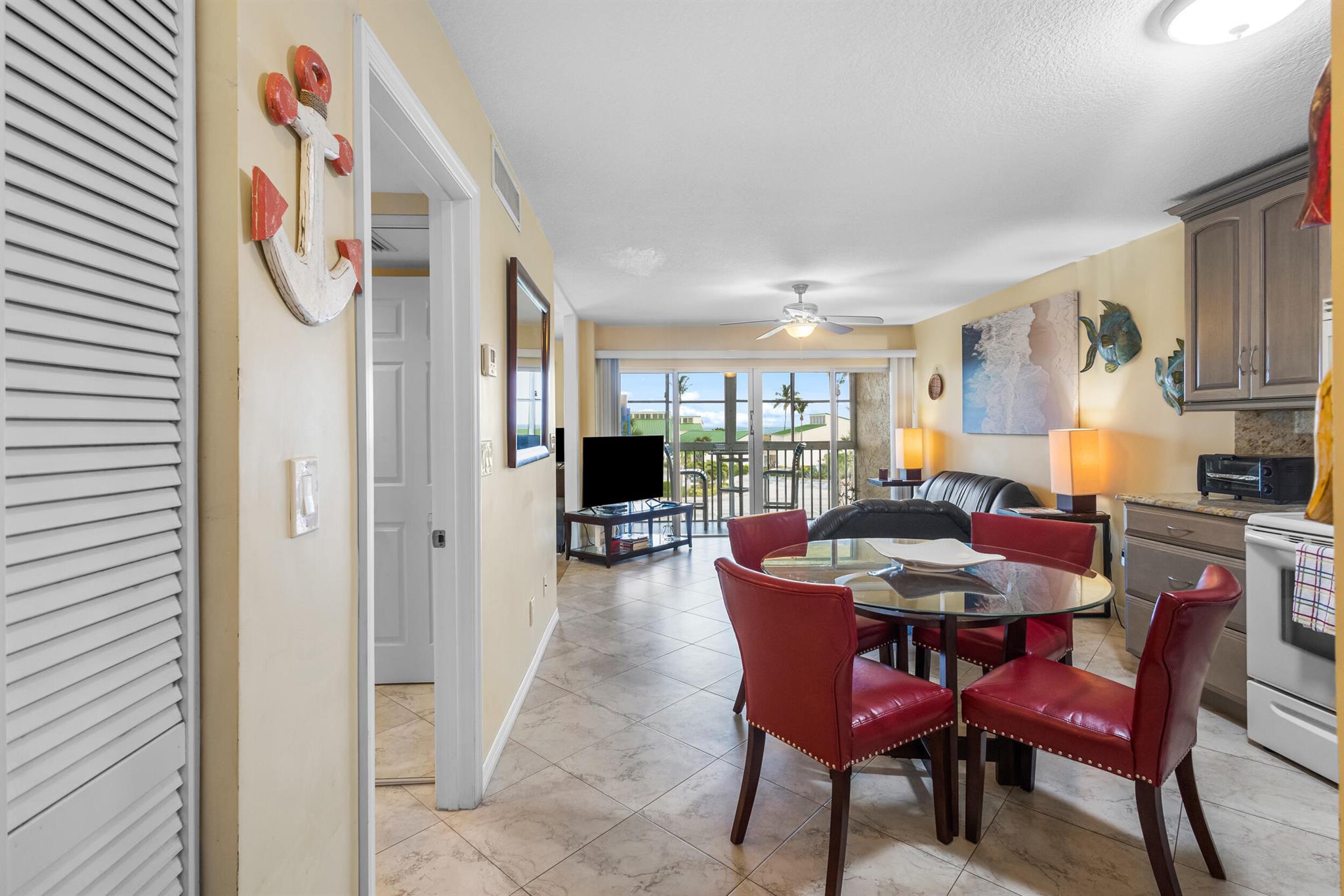 This is probably the only 1 bedroom with Ocean view on the market in Ocean Village right now! Updated kitchen with granite counters and cabinetry. Updated Bath with walk In shower, impact windows , new Roof 2022. This building passed the milestone inspection on 2024. Brand new elevator will be installed summer 2025 . Steps To The Ocean, Pool, Hot Tub, Restaurant, Tiki Bar, Golf & new club House. Great Rental Income Producing history. Don't loose this opportunity! Come see it today!