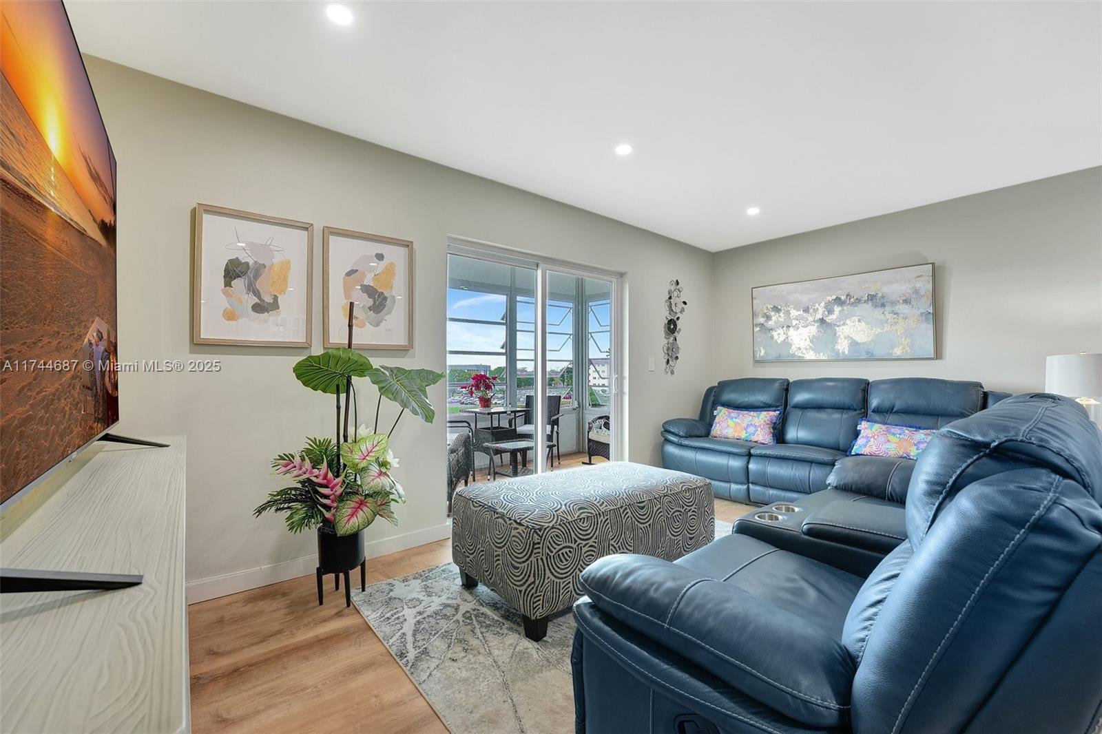 Stunningly Remodeled 1-Bedroom, 1.5-Bath Condo with Water Views! This beautifully updated 928 sq. ft. condo offers spacious living with breathtaking water views. The open-concept kitchen is a chef’s dream, featuring quartz countertops, white cabinets, stainless steel appliances, & recessed lighting. The unit is fully furnished & turn-key, showcasing wood flooring throughout & offering ample storage space. Enjoy a brand-new bathroom & a large living area that provides a perfect space to unwind. Plus, a cozy Florida room/patio allows you to relax and take in the serene lake views. Located in a HOPA-verified community, the building offers fantastic amenities including a pool, gym, shuffleboard, bowling alley, billiards, and more—all just a short walk away!