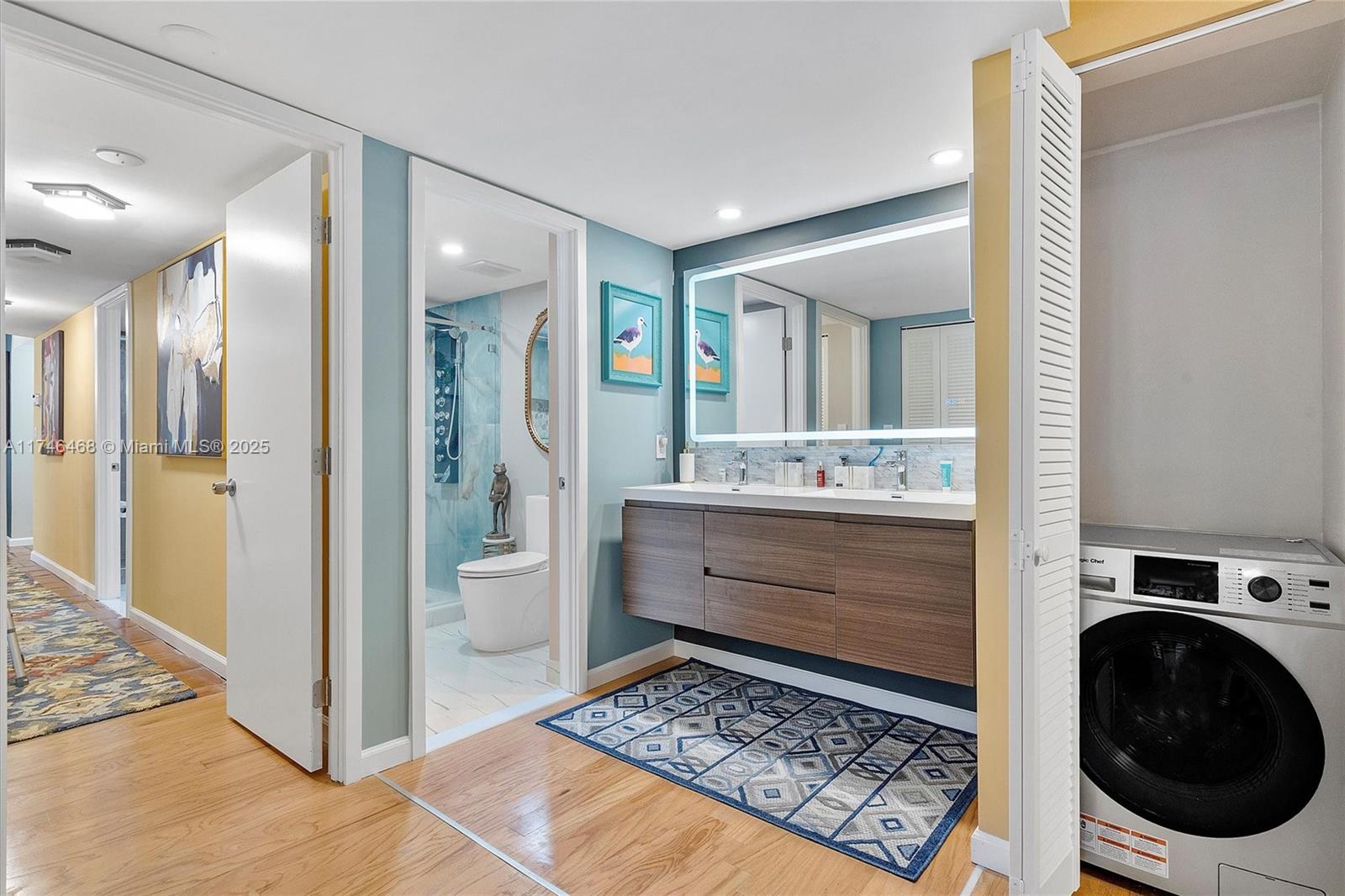Open-concept design with contemporary finishes. Spacious, modern, and fully renovated. Floor-to-ceiling windows, plantation shutters, walk in closet. In-unit washer/dryer, 2024 AC, hurricane shutters. Amenities include gym, heated pool, tennis courts, sauna. 24/7 door man. Located in a prime area, you'll be close to all local restaurants, shopping and beaches.