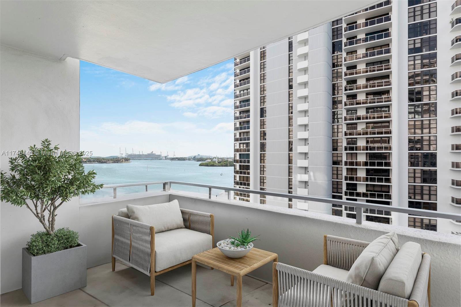 SELLER FINANCING AVAILABLE AT 5-6%! Magnificent Costa Brava on Belle Isle, Miami Beach's best kept secret! This spacious residence boasts a great floorpan including a sleek modern open kitchen, in unit washer and dryer, very large primary bedroom with en-suite bath plus a second bedroom complete with a murphy bed for flexible use as guest room, office or den. Impact windows throughout, second bath has a walk in shower with glass enclosure, solid wood and tile flooring and a large balcony with gorgeous views of Biscayne Bay and the cruise ships at Port of Miami. This stately building has recently gone through a beautiful transformation including all new lobby, elevators and common areas plus a world class gym and a rooftop solarium with views forever! Pet friendly and amazing walkability!