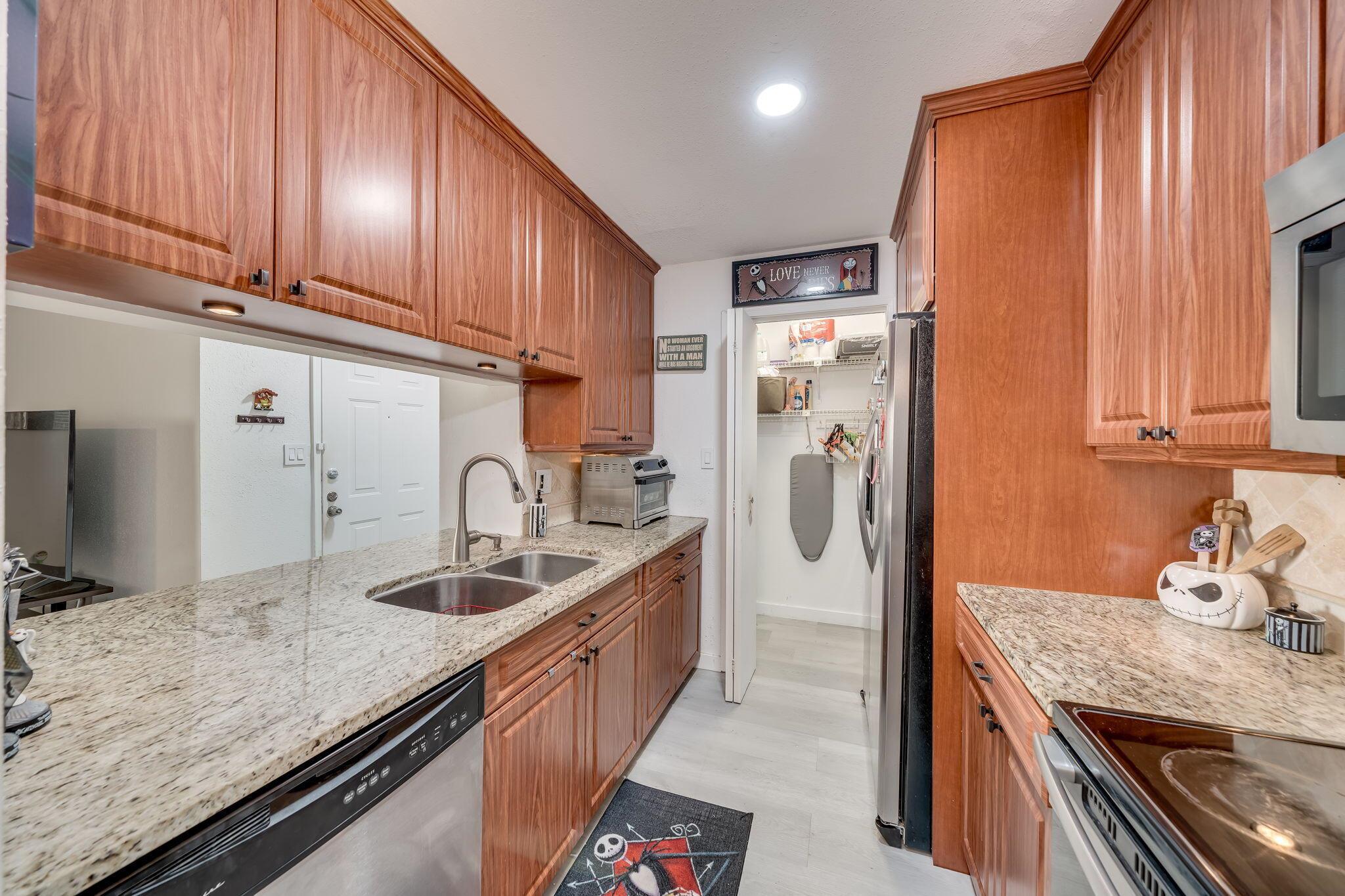 Completely remodeled 1/1 conveniently located on the first floor, a few steps away from its designated parking spot, in a desirable, quiet and safe community right across the street from The Coral Square Mall. All vinyl flooring throughout. Ceramic tiles in the bathroom. Standing shower and glass door. Granite counters and customed cabinets in kitchen and bath. Newer A/C less than 18 months. New water heater. Full size washer and dryer inside the unit. Savannah at Riverside offers resort- style living with a club house, pool, spa and fitness center. 1 Assigned parking, Pets OK. Plenty of storage inside and extra storage in the patio. Don't miss it. Perfect for owner occupant or investor....