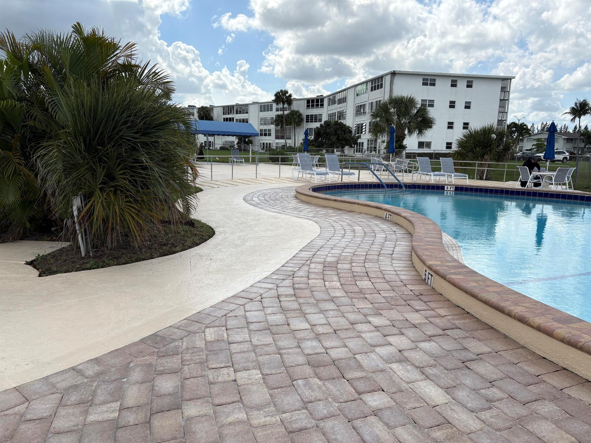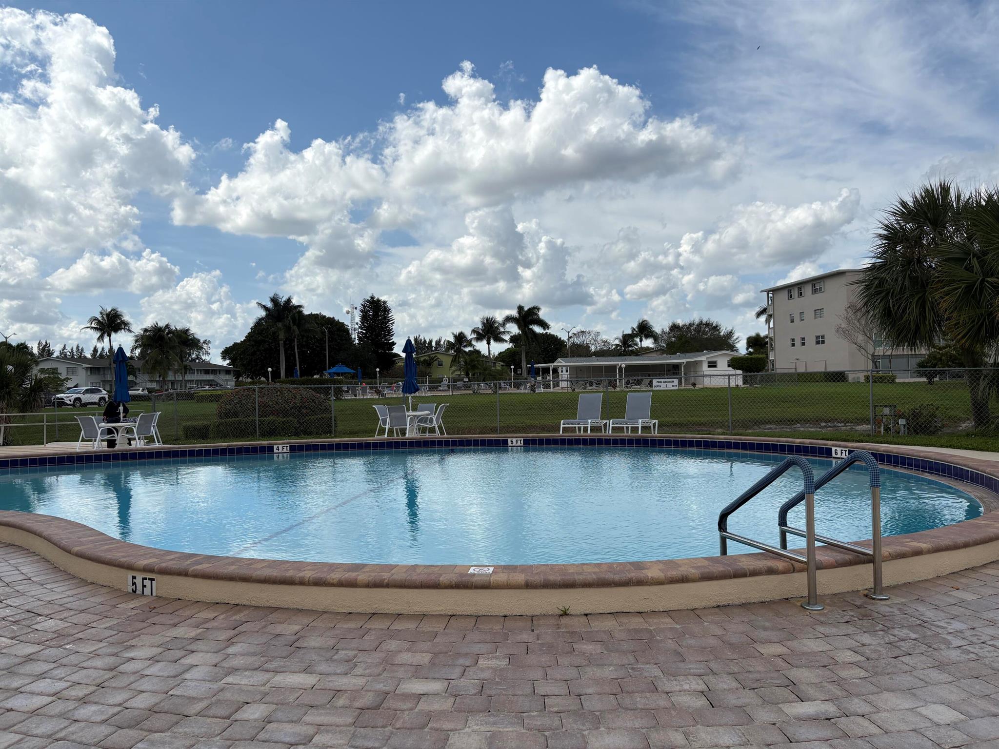 For sale in a 55 plus retirement community of Century Village a 2 BD, 2 Full baths condo situated on the third floor of well kept elevator building. You will enjoy the amazing view from the extra large lanai and the beautiful pool nearby. This unit is waiting for your special touch to make it your home. Century Village has many amenities to offer to residents, like over a 1000 seat clubroom to watch shows and movies, indoor and outdoor pools, courtesy bus service, medical facilities, beauty shop, tennis, boating and more. Close proximity to PBI airport, restaurants, shops and beaches