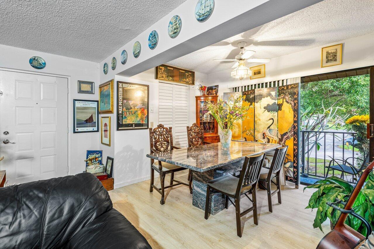 Charming 2-bedroom, 2-bathroom condo in the gated Pine Ridge at Haverhill community. This property offers a cozy and updated living space with a galley kitchen, stackable washer and dryer, and a large living room that leads to a balcony, perfect for relaxing or enjoying the view. The bathrooms have been beautifully updated with coquina stone flooring and sleek white cabinetry. The wood flooring throughout gives the condo a modern and easy-to-maintain look. The community has a lot to offer with its waterfront clubhouse and pool, tennis courts, bocce ball, and a playground, making it an ideal place for relaxation and recreation. Plus, its location near the Kravis Center, shopping, and fine dining means you're in the heart of everything!