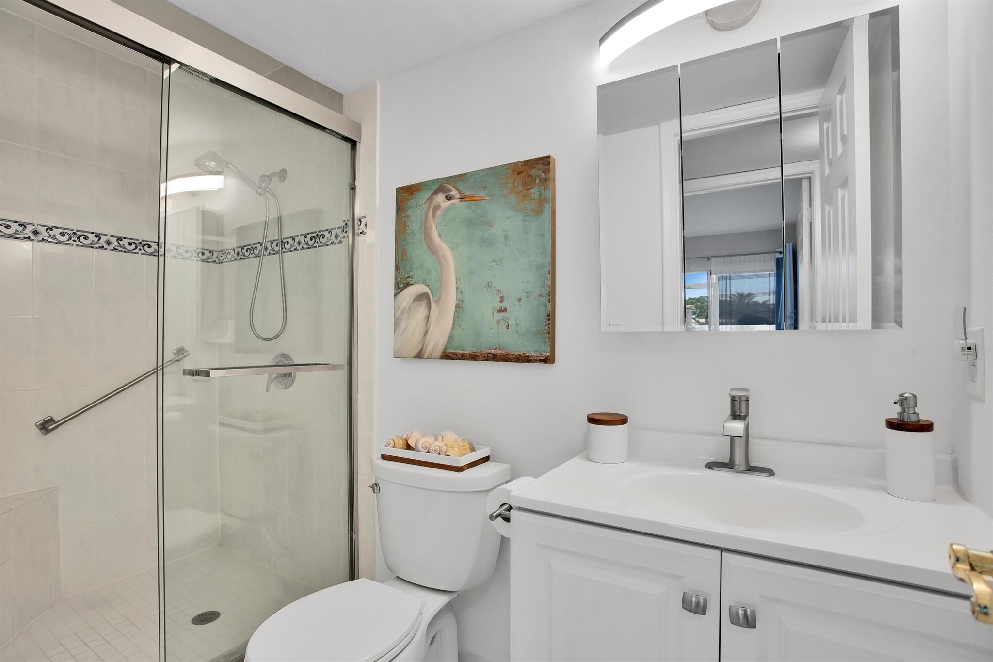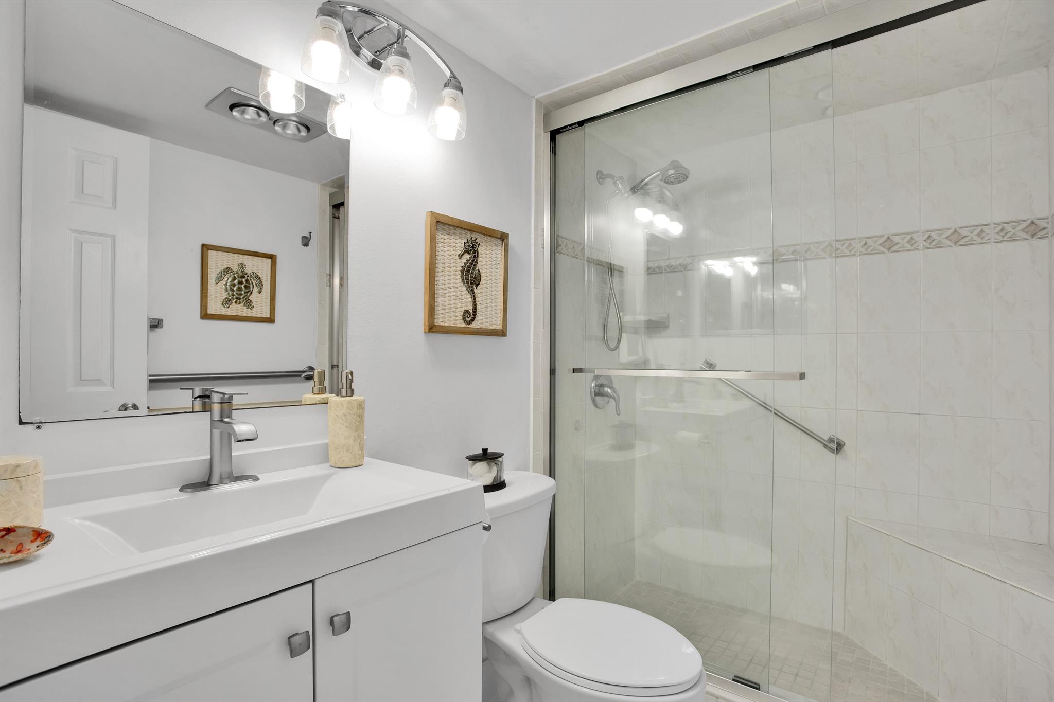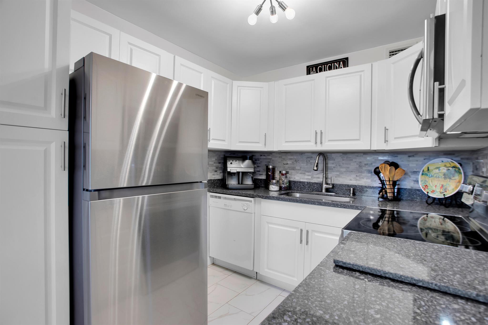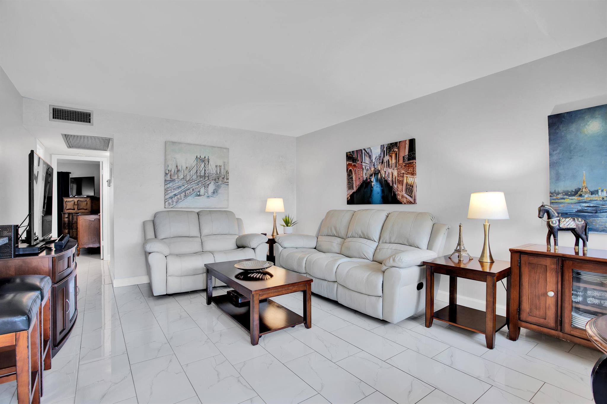 Boasting an unparalleled northwestern exposure, this 2-bedroom, 2-bathroom home features a spacious master bedroom with ample closet space and a stunning lake view. Two beautifully updated bathrooms, with large showers in both, provide ultimate relaxation. Entertain guests effortlessly as you flow seamlessly from an open-concept kitchen with stainless steel appliances, custom cabinetry, and natural stone countertops to a dining area into open living quarters, while enjoying your morning beverage on your screened patio overlooking a stunning lake view. Interior amenities include abundant patio storage and utmost convenience. Fall in love with the soothing Venetian plaster accent walls, smooth ceiling throughout, updated (cont')