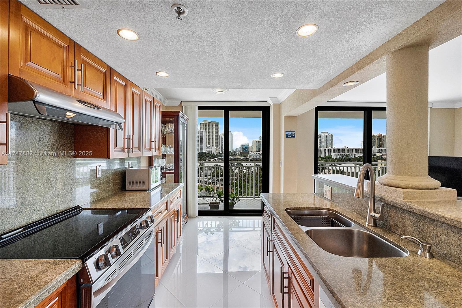Spacious, tastefully remodeled condo with ocean views in desirable Winston Towers, directly across from Atlantic Ocean, heart of Sunny Isles Beach! Oversized balcony, recently restored, all windows and slider hurricane impact. Unit is immaculate, tastefully designed and decorated (furniture included). Stunning granite kitchen counters, maple wood cabinets, porcelain flooring throughout, beautifully tiled baths (2 primary). Washer/dryer in unit. 24-hour security and concierge. Walk to shops, restaurants, supermarkets, houses of worship. Minutes to Aventura Mall, Bal Harbor, entertainment, airports, seaports, best schools. 40-yr certification done, construction to be completed in pool deck area.