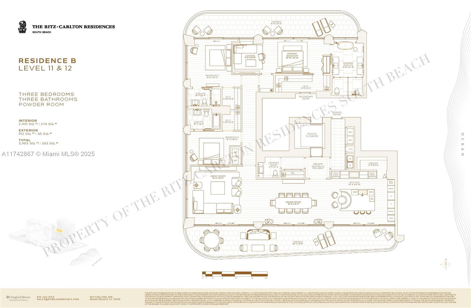 Discover the pinnacle of refined living with FULL OCEAN VIEWS at The Ritz-Carlton Residences, South Beach, an exclusive enclave of 30 oceanfront beach houses. Designed by renowned architect Kobi Karp with interiors by Studio Munge’s Alessandro Munge, this boutique property offers over 50,000 square feet of world-class amenities. Immerse yourself in beautifully landscaped surroundings by Naturalficial and indulge in exceptional dining curated by Michelin-starred Chef José Andrés. This luxurious 3-bedroom, 3.5-bathroom residence spans 3,903 square feet, including a 912-square-foot terrace. It features a private elevator, a spacious primary suite with a lavish ensuite, and expansive living and dining areas designed to provide the ultimate in comfort and elegance.