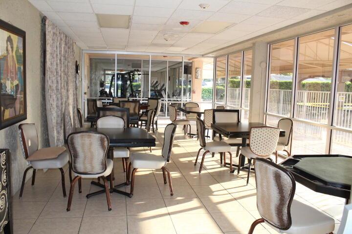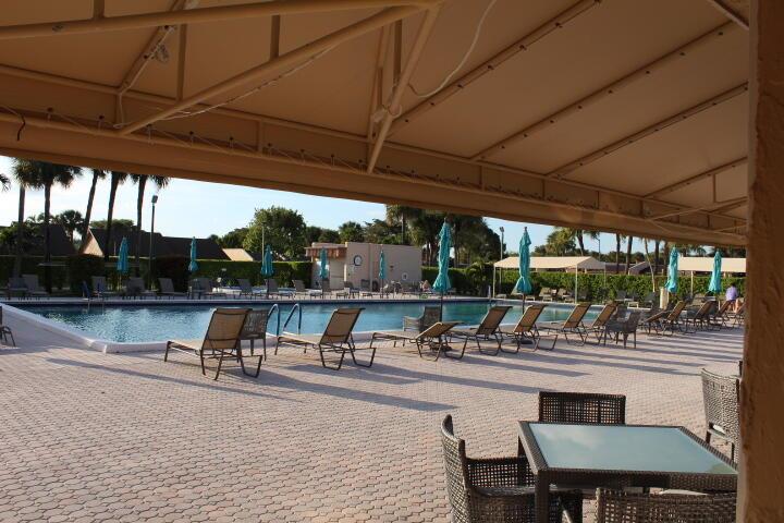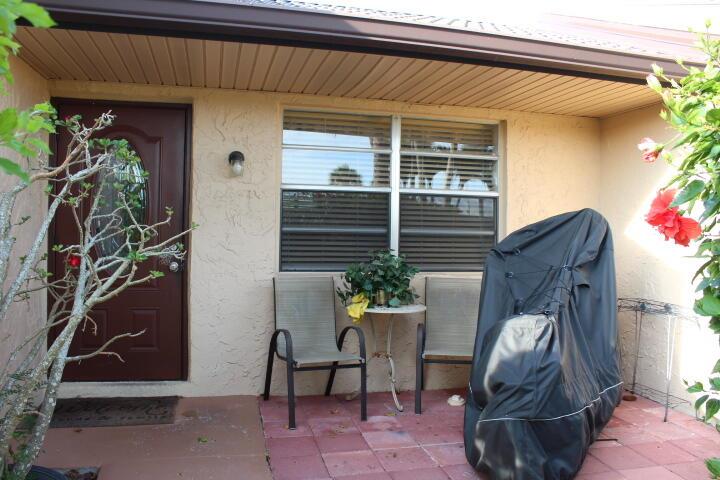 Spacious, updated waterfront villa offers 2 bedrooms, 2 full bathrooms, main bedroom includes 2 closets with a walk-in closet. The kitchen has wood cabinets and sleek black countertops and appliances, formal dining room, and laminate wood floors throughout. Washer /dryer conveniently located inside closet. FL room has hurricane impact windows. Backyard patio is perfect for relaxing and enjoying the peaceful water view. Close to the clubhouse, trash bins and mailboxes. HOA fee includes water, cable, building insurance, lawn care, pest control, exterior maintenance, 24-hour guard gate, and access to several pools, tennis courts, a cafe, billiards, clubhouse 4 events & more. Assigned parking and guest spots are right in front. A small dog or cat is allowed, leasing permitted w restriction