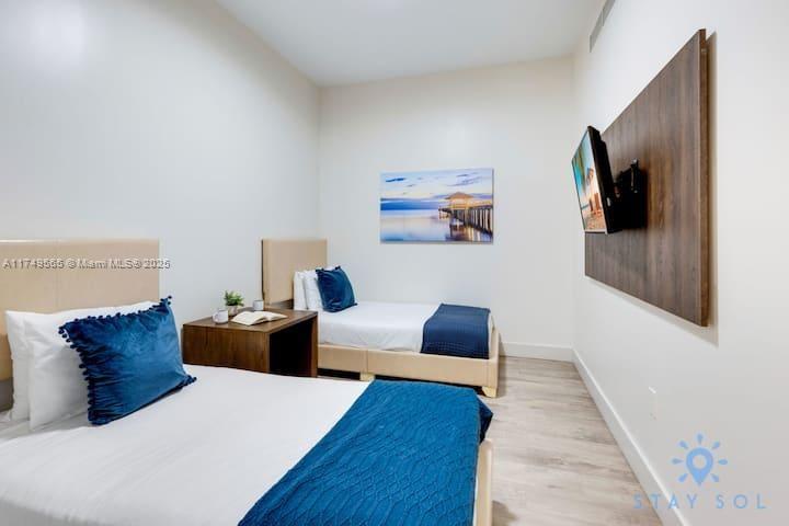 Beautiful unit 1 Bedroom + 1 Den + 1 Full Bath. The Den has 2 beds and TV!! Living- Dining room with 1 sofa bed. Fully furnished and equipped at Costa Hollywood Resort in Hollywood Beach! Modern kitchen, balcony with ocean and intracoastal view. Amazing rooftop with bar, pool, jacuzzi, lounge areas and spectacular views of the city, Intracoastal and beach. No Rental Restrictions! Association fee includes Cable TV, Internet, water, gym, Electric, facilities, amenities. Unit management by Stay Sol. Just steps away from the Hollywood Boardwalk with many restaurants, bakery, shops, sports. Don't miss the opportunity to stay in paradise!!