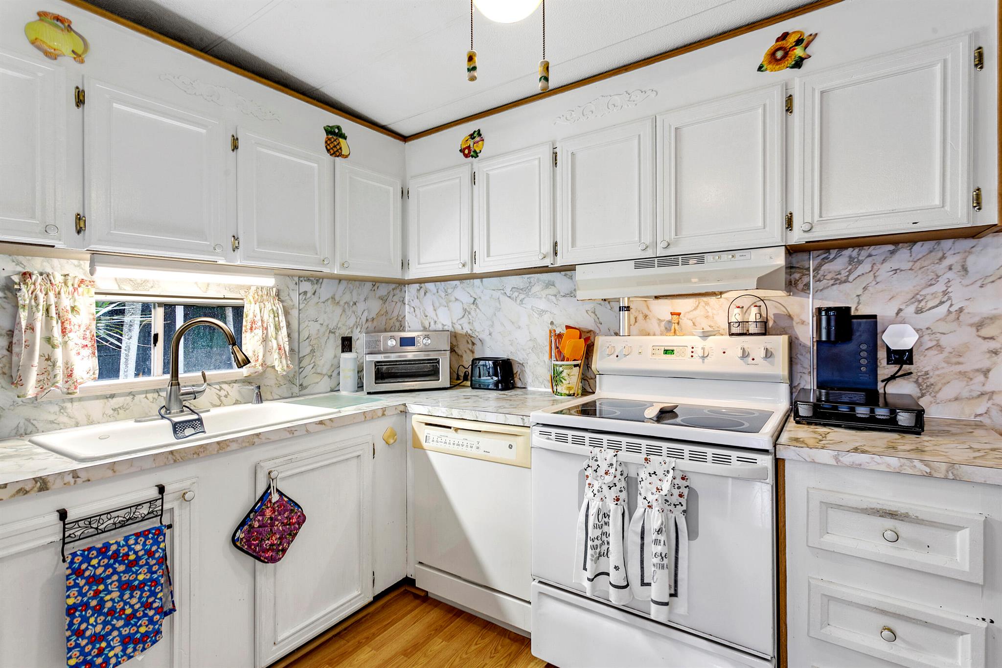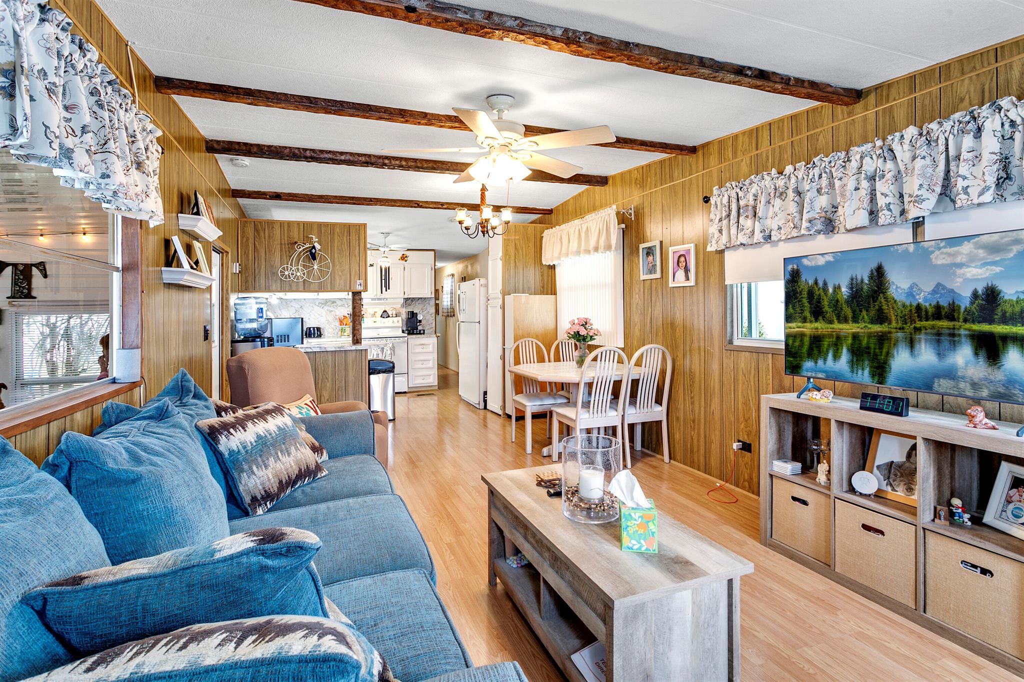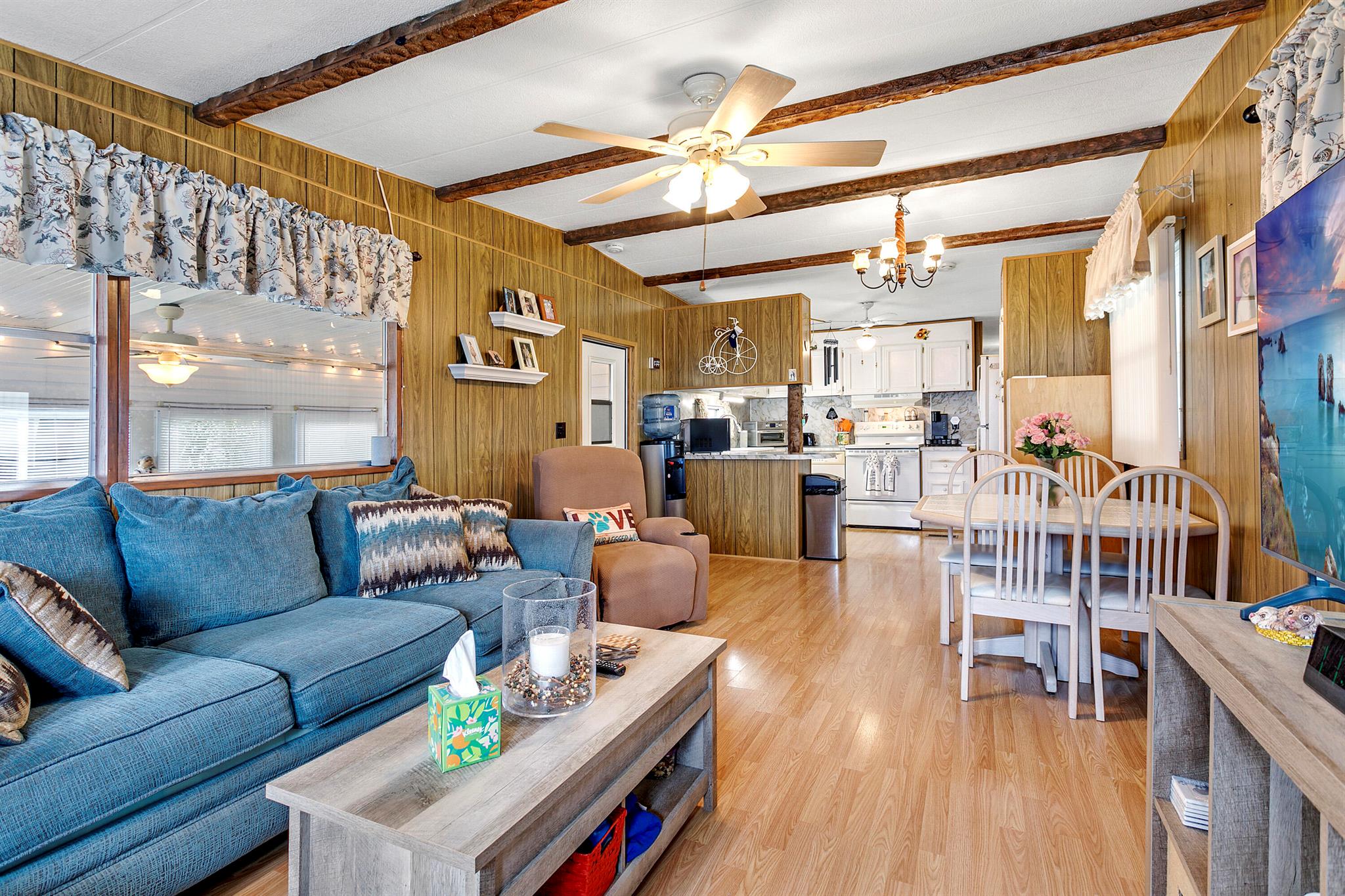 Cute 2 Bedroom 1 Bathroom Home in desirable 55+ Community. Manned Gated Community with plenty of activities. Enjoy Shuffleboard, Heated Pools, Bingo, Cards, Dances, Pot Luck Dinners, Game Nights and so much more. This home has laminate Flooring throughout, Vaulted Ceiling in the Living Room with Decorative Beams, Newer Windows, Kitchen with breakfast bar. Enjoy your spacious Florida Room for additional living space. 2nd bedroom perfect for guest room or office. Main Bedroom has entrance to Bathroom. Bathroom has Step Shower. Ramp has been installed for side entrance. Also a Shed for even more storage. This is a great Snowbird getaway or a home for someone looking to downsize and start traveling. Easy to Maintain and great location within the park. Community is located close