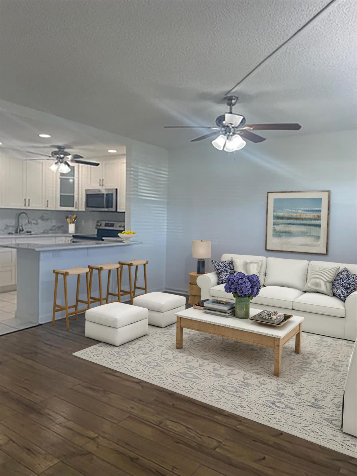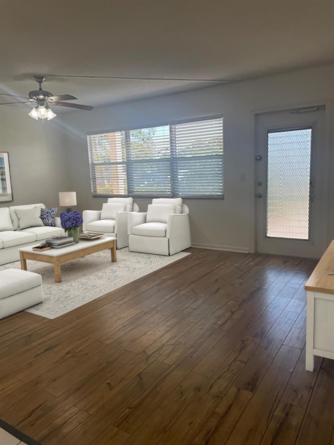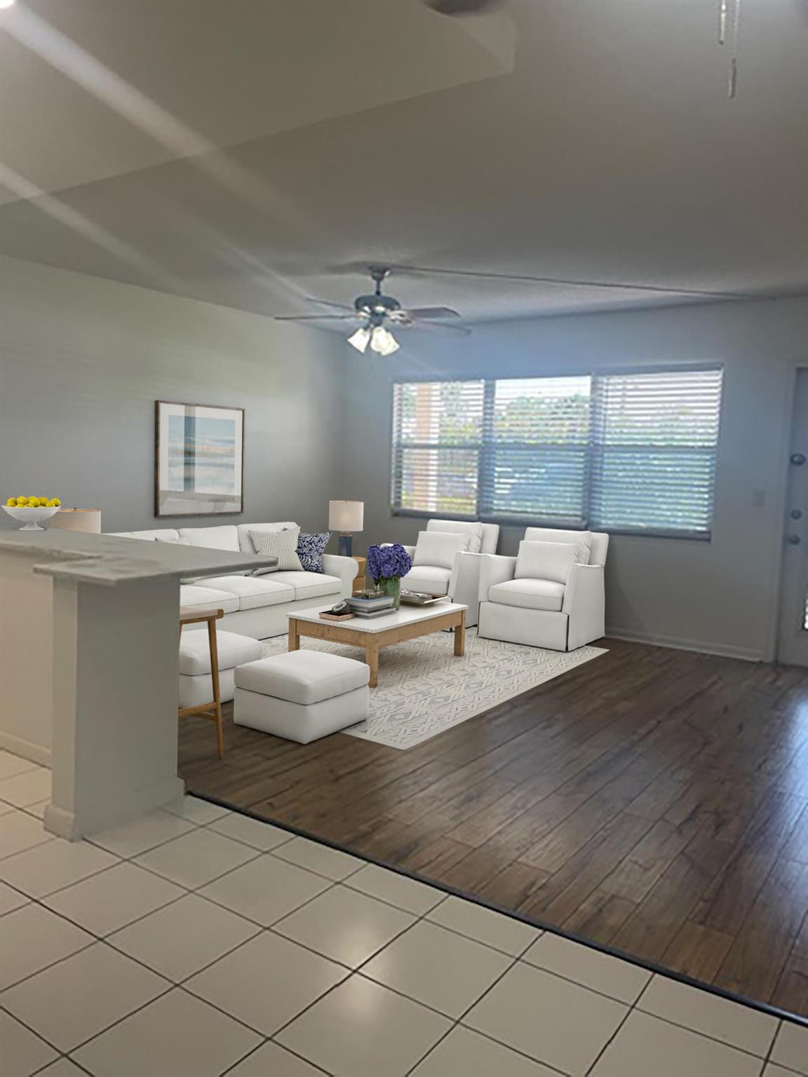 🏡 Beautifully Renovated 1st-Floor Condo in 55+ Gated Community - Just $95,000!Comfort meets convenience in this tastefully updated 1-bedroom, 1.5-bath first-floor condo, perfectly located in the heart of West Palm Beach. Step into a modern open kitchen featuring white stone countertops, sleek high-hat lighting, stainless steel appliances, and ceiling-height cabinetry--a rare find at this price point! The spacious living area flows beautifully with tile and laminate flooring throughout, complemented by central A/C and a clean, bright interior.🚗 Enjoy easy parking access right outside your door.🏊♀️ The pool is directly across the parking lot--just steps from your front door!