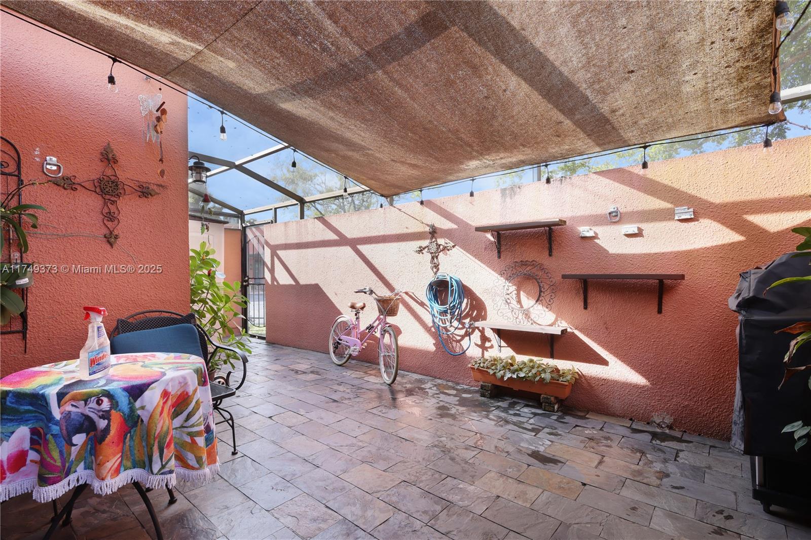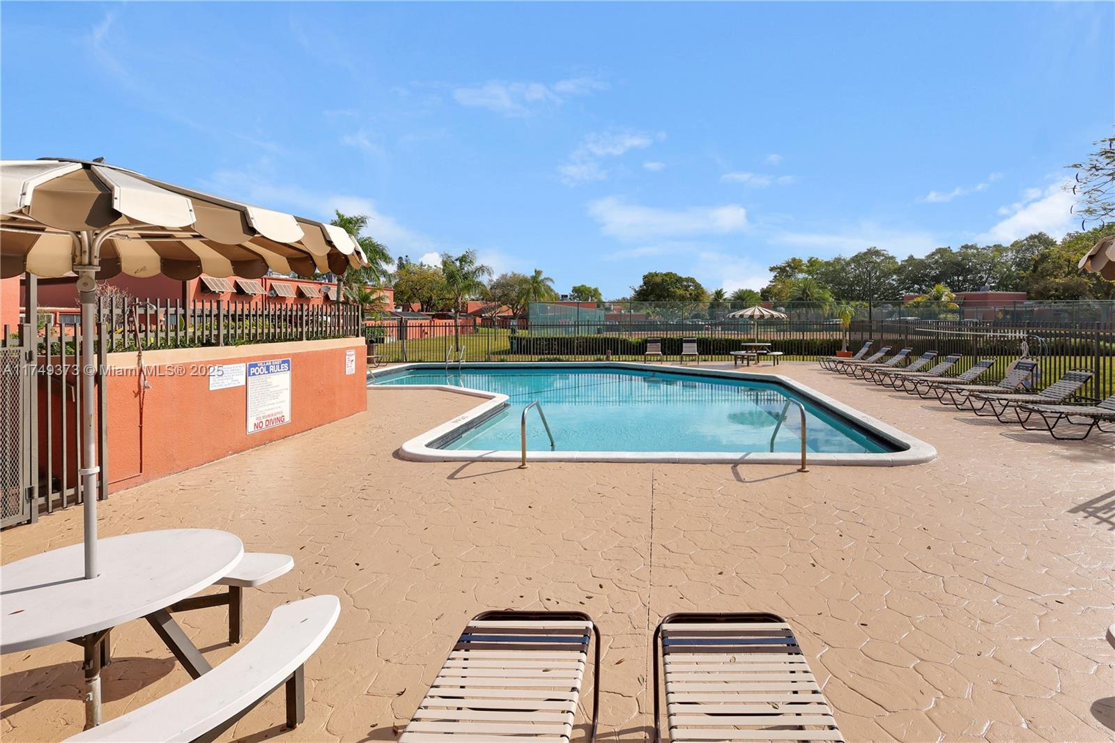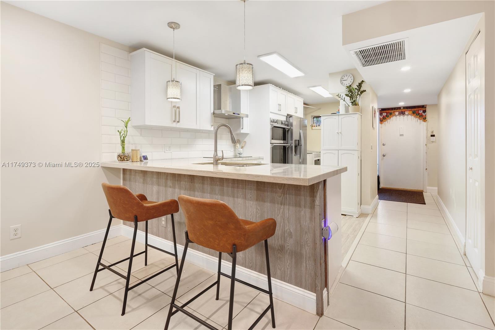 This spacious Corner Unit Villa located in Pembroke Pines, at The Villas East in Pembroke Lakes has a 3 bedroom, 2 baths and a glass covered room that can be used as an office. The open kitchen counter has space for bar stools was totally renovated with white cabinetry & Brazilian Stone counters with LED lighting. The roof was recently replaced, in 2024. An sliding door opens to a screened patio with tiled floors and access to a grassy area view. AC is approximately 4 years old. This home offers plenty of storage space, walking closet. Shared Bathroom fully renovated. There are 2 assigned parking spaces in front of the property & plenty of visitor parking. A Clubhouse, with a community pool, tennis, pickleball and basketball courts are part of the amenities offered. Come and take a look.