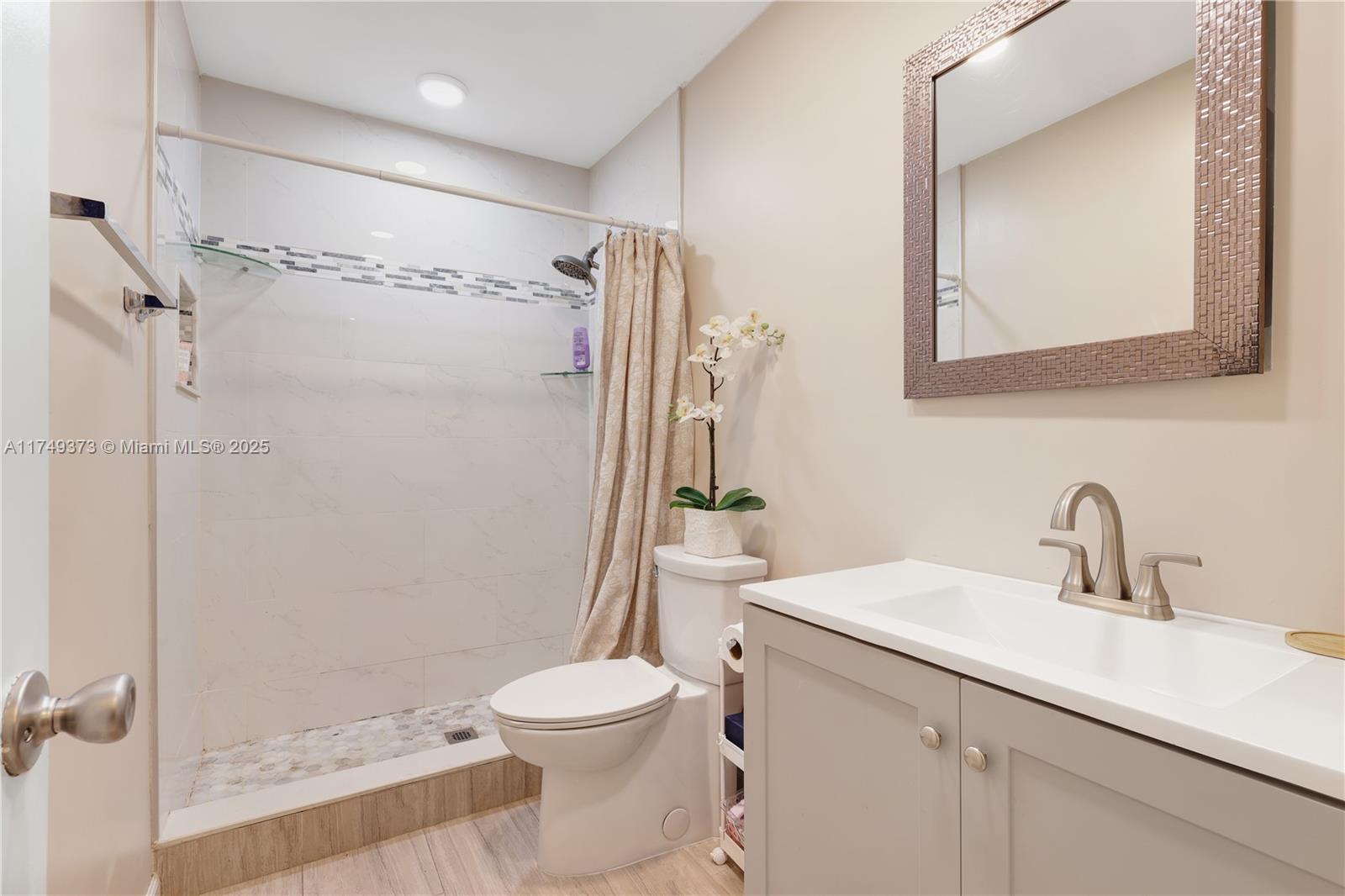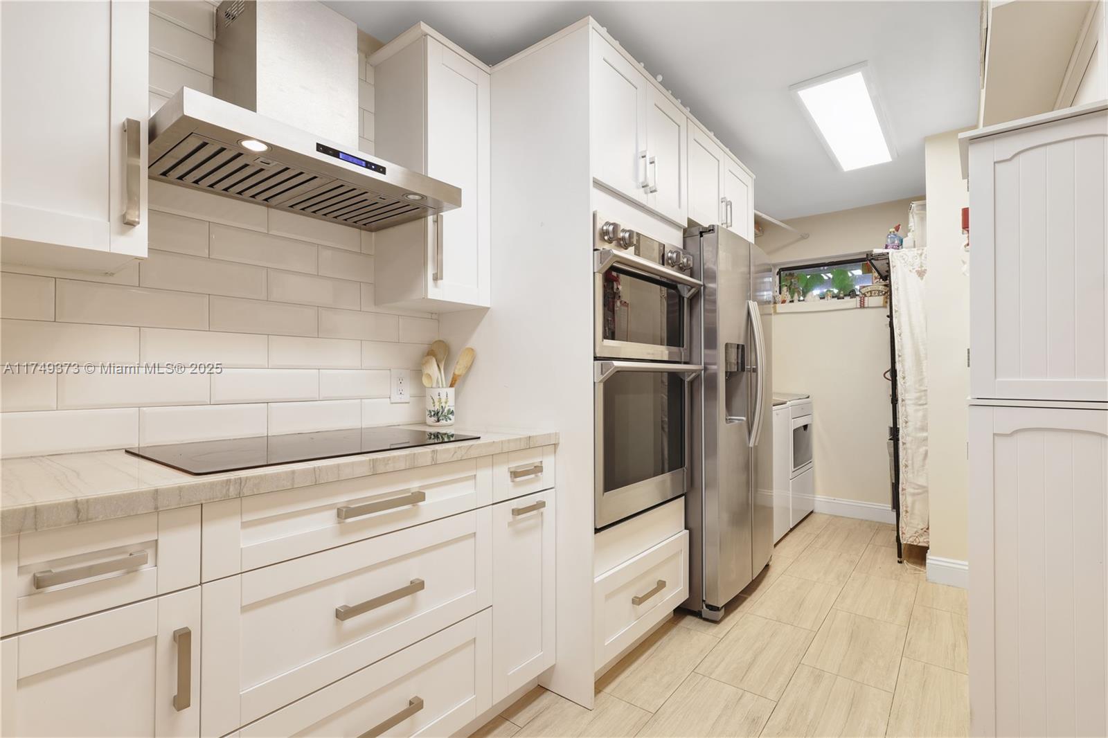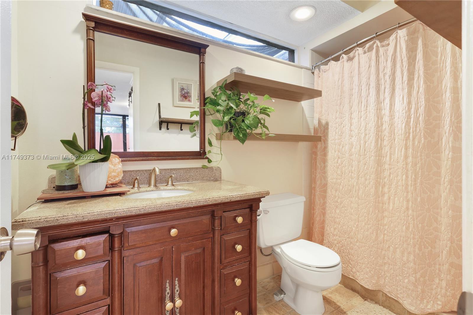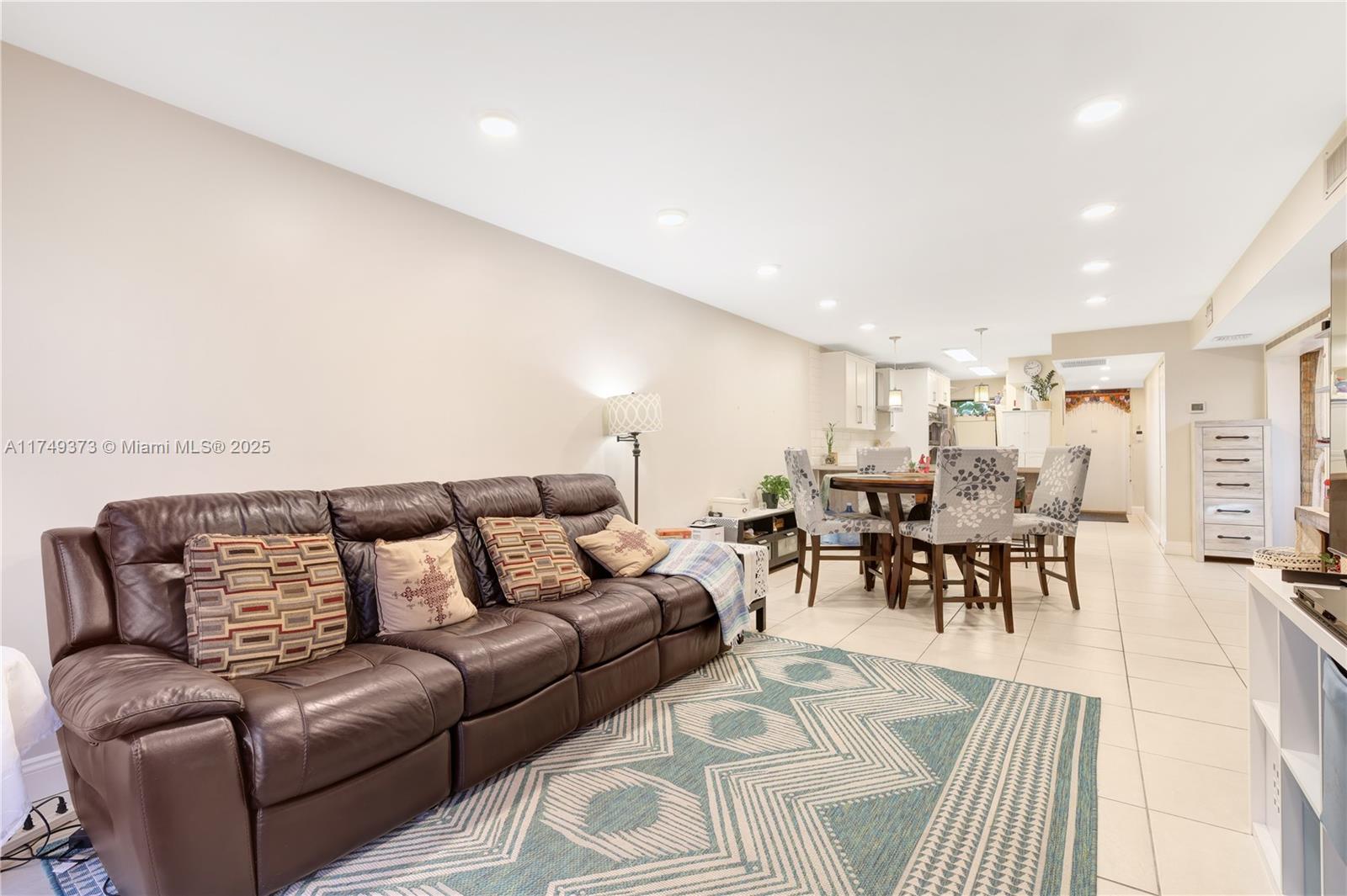 This spacious Corner Unit Villa located in Pembroke Pines, at The Villas East in Pembroke Lakes has a 3 bedroom, 2 baths and a glass covered room that can be used as an office. The open kitchen counter has space for bar stools was totally renovated with white cabinetry & Brazilian Stone counters with LED lighting. The roof was recently replaced, in 2024. An sliding door opens to a screened patio with tiled floors and access to a grassy area view. AC is approximately 4 years old. This home offers plenty of storage space, walking closet. Shared Bathroom fully renovated. There are 2 assigned parking spaces in front of the property & plenty of visitor parking. A Clubhouse, with a community pool, tennis, pickleball and basketball courts are part of the amenities offered. Come and take a look.