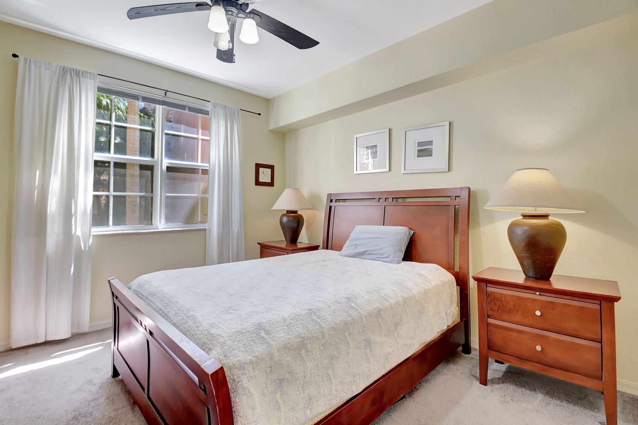 Investors Welcome- this unit can be rented right away and is sold furnished so you can start generating income! Luxurious resort style living awaits in this upscale gated community ideally located along the Intracoastal Waterway. This inviting first floor condo features a split bedroom floor plan, lush private patio, an open concept living/kitchen area, 2 bedrooms, 2 full baths, full size washer/dryer & 2 garage parking spaces. New AC & WH installed 2024! Minutes to the beach, downtown West Palm Beach, Palm Beach Island & convenient to PBI Airport, this deluxe all ages community offers concierge, 24 hour security, Olympic size pool with water views, party pavilion, fitness studio, sauna, clubroom, billiards, business center, grill plaza & dog park! 30 day rentals allowed.