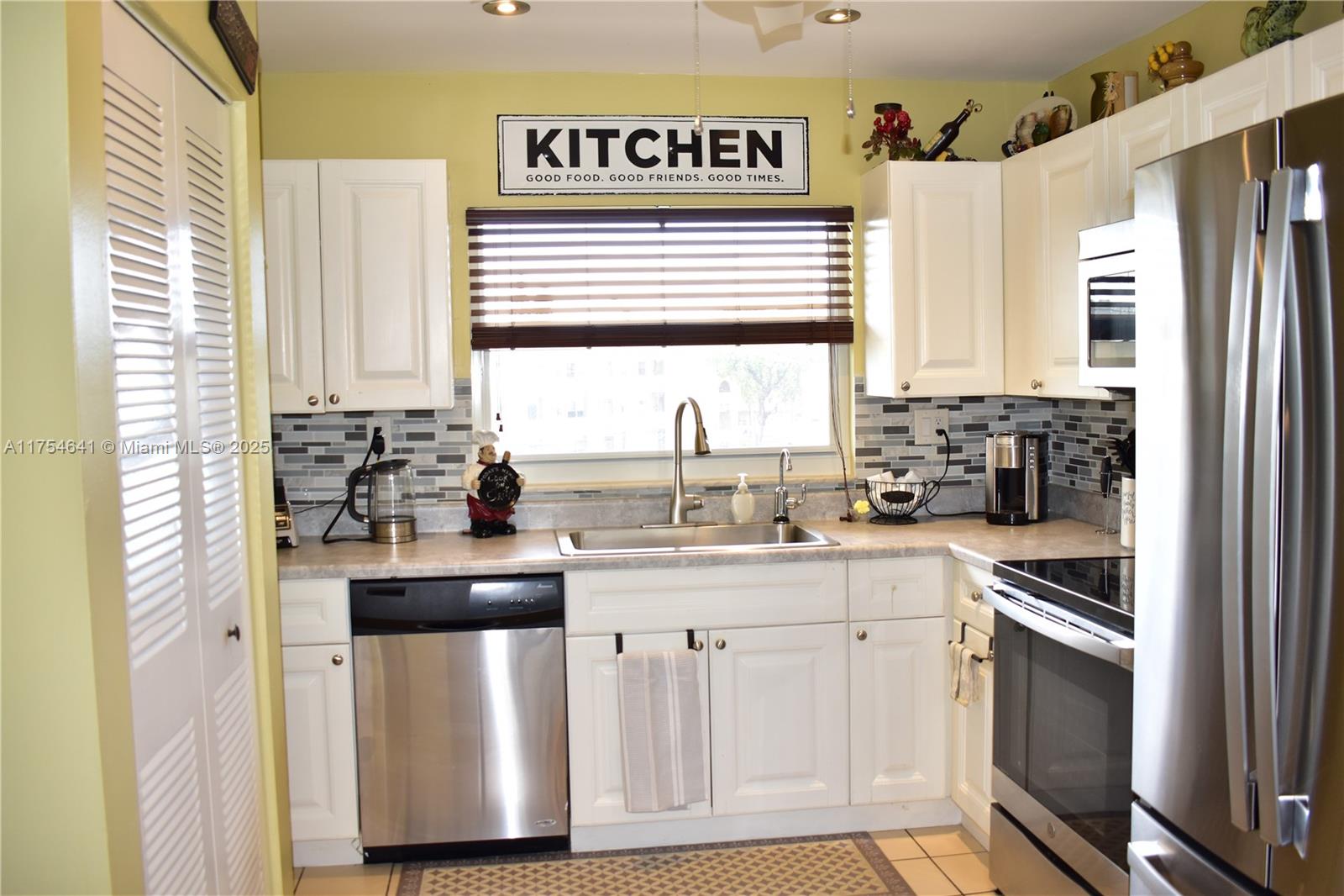 Enjoy watching the golfers on the 3rd hole or participate in the sport, or play yourself, for free, as it is included in your maintenance fee. This particular unit includes complete Impact window and door protection, a new A/C, newer hot water heater, new disposal and all newer and high end appliances,and beautiful high quality upgrades! There are no assessments pretty kitchen with new appliances and exceptionally nice bathrooms! A beautiful sliding door in the master bedroom provides privacy in the bathroom. Just check the pictures and virtual tour! Plenty of parking and lots of activities to enjoy such as a golf course, 10 swimming pools, pickleball, a gym, 4-wall racquetball. This is a unit where you can move right in and enjoy it. Easy to see!