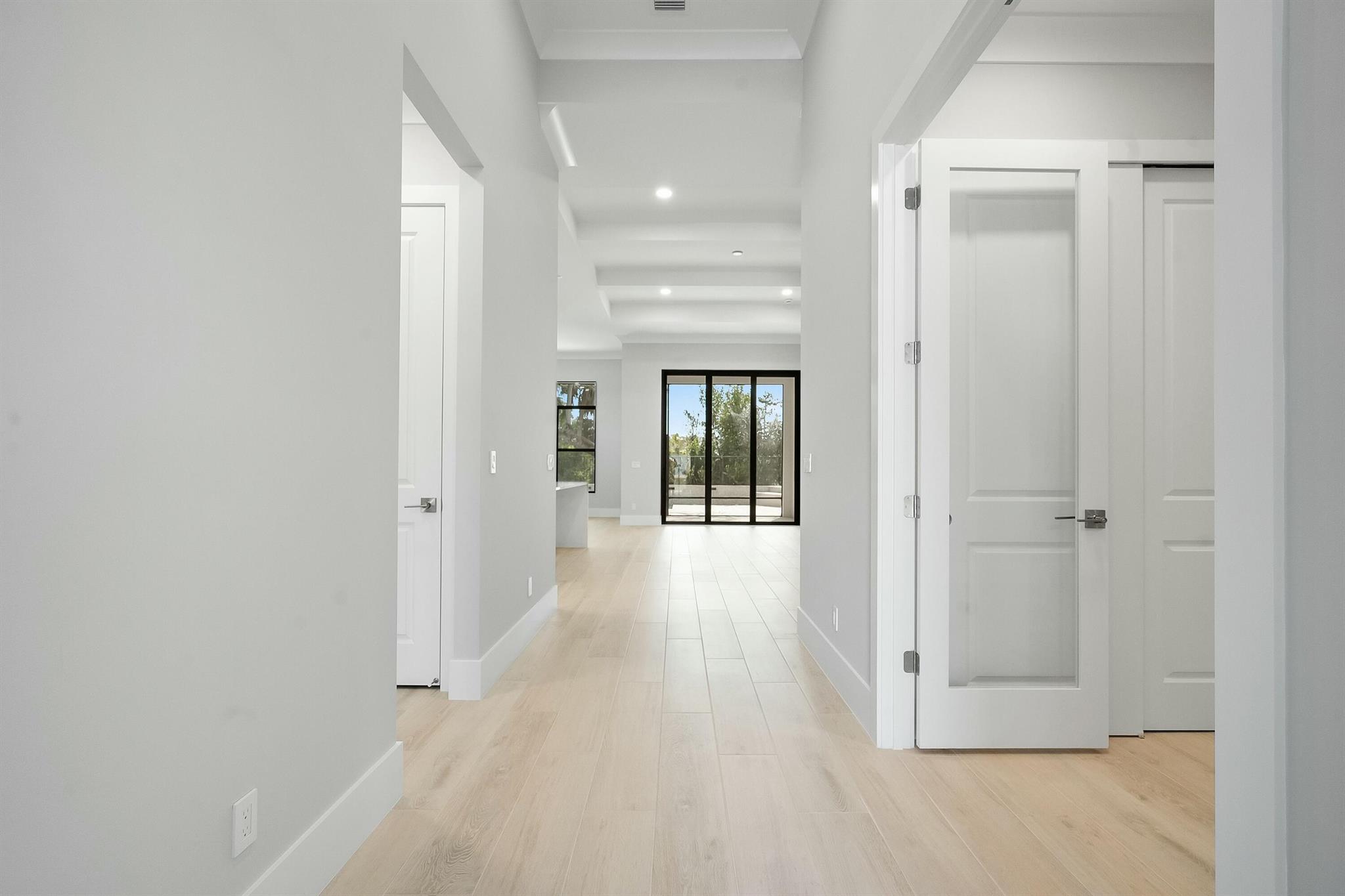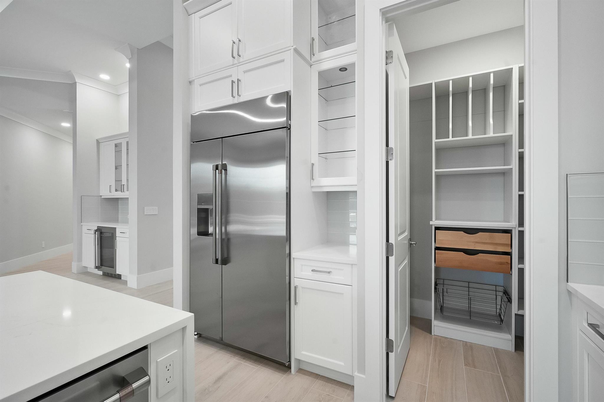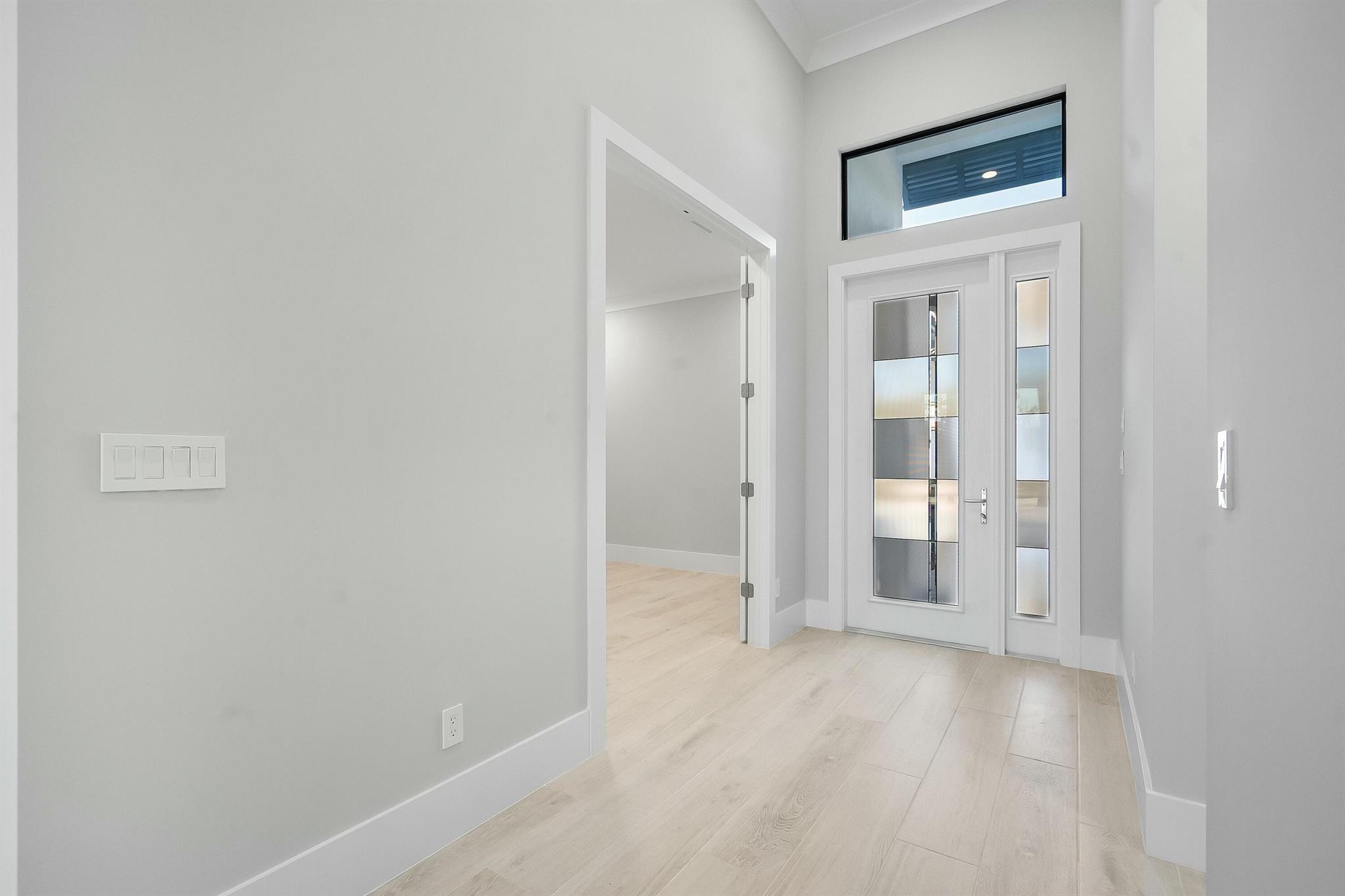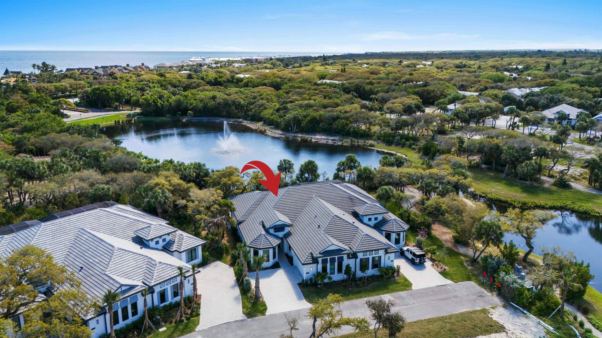 The Seabreeze Grande, a 4-bedroom, 3-bath villa with over 2366 finished square feet, offering the ultimate in-island living. Nestled in a charming Florida setting surrounded by lush landscaping, this home boasts an exquisite pool including 3-24'' sheer descent waterfalls and a built-in wrap-around bench surrounded by lush landscaping, perfect for embracing the carefree island lifestyle. The covered patio is screened in with rail fencing around the pool area. And a retractable screen on patio. Exceptional finishes include solid core interior doors, Arhus Classic Blanco wood-look tile flooring, volume ceilings, bay window in bedroom 2, quartz countertops, under-cabinet lighting, high-end Cafe appliances, Bar area with a beverage refrigerator. With the added option of a 4th bedroom or den