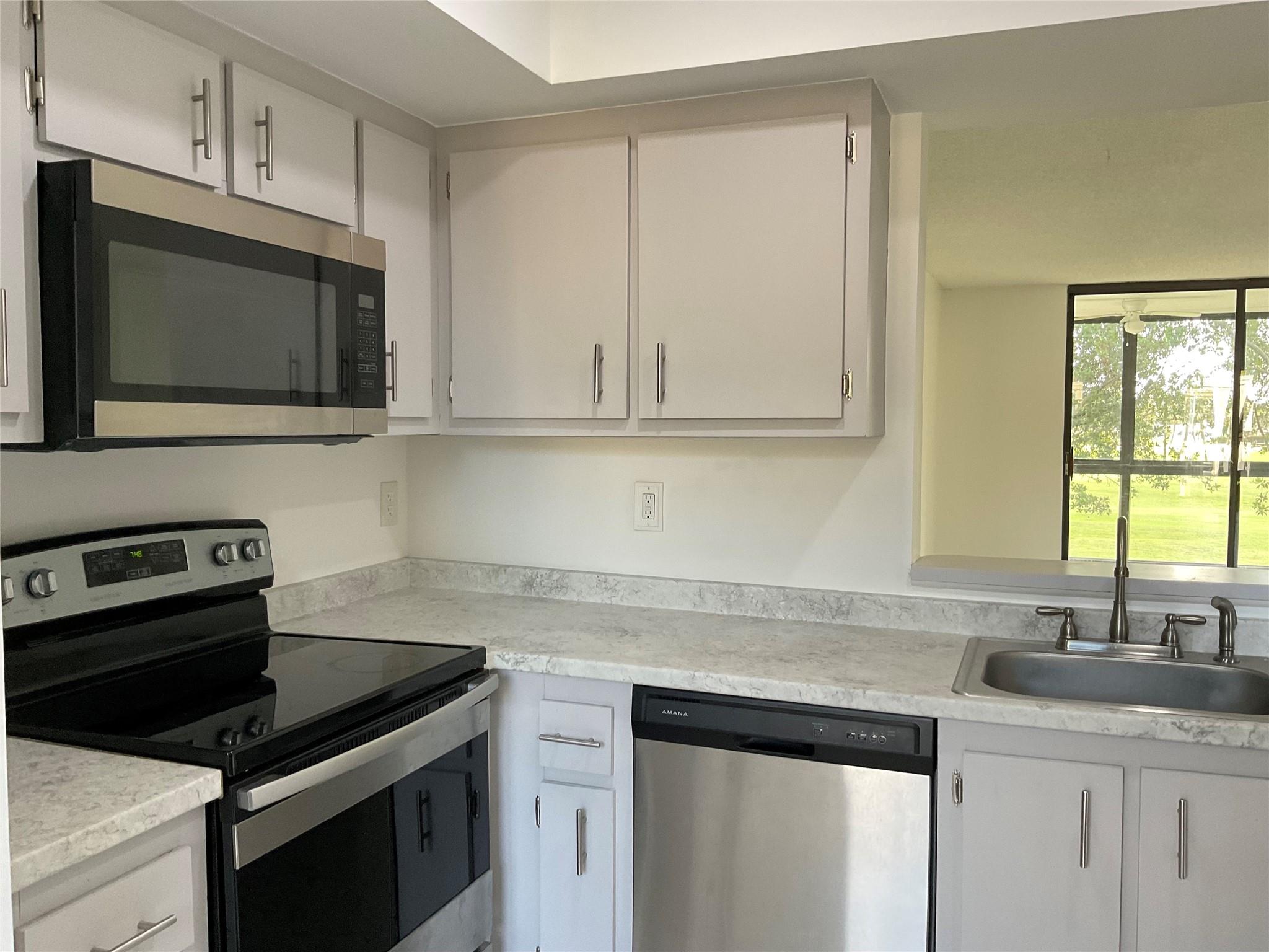 Stunning, renovated 2BD/2BA condo in a vibrant 55+ golf community! ?impact glass. Upgraded in 2022 with new A/C & water heater, stainless steel appliances, luxury vinyl floors, and neutral tile in the kitchen. Oversized washer/dryer and both baths with modern vanities and fixtures. Enjoy breathtaking golf course views from the enclosed terrace with extra storage—perfect for morning coffee or sunset relaxation. Assigned parking right in front + plenty of guest parking. The community offers pool, fitness center, clubhouse, and golf access. Ideally located near shopping, dining, medical centers, and highways. Move-in ready and designed for comfort, harmony, and low-maintenance living—your perfect next chapter!