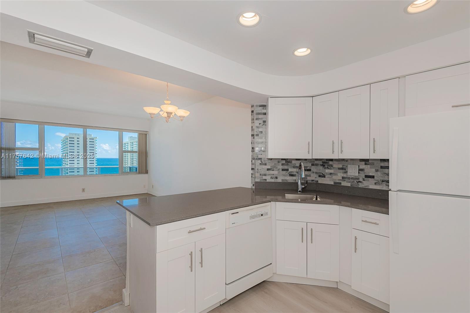 Wake up every day to breathtaking direct ocean views from your brand-new glass balcony, enjoy stunning sunrises and sunsets. This beautifully updated penthouse offers an open-concept kitchen with sleek white cabinetry, quartz countertops, and luxury vinyl flooring, while tile flooring flows throughout the living areas. Your spacious bedroom features a walk-in closet, bathroom with a modern vanity and a bathtub with a sliding glass door. High-impact windows and door. Nestled in a sought-after 55+ community just two blocks from the beach, with resort-style amenities, including a heated saltwater pool, fitness center, library, BBQ area, and 24-hour security. Walking distance of restaurants, shops, and places of worship. Embrace the ultimate beachfront lifestyle—schedule your viewing today!