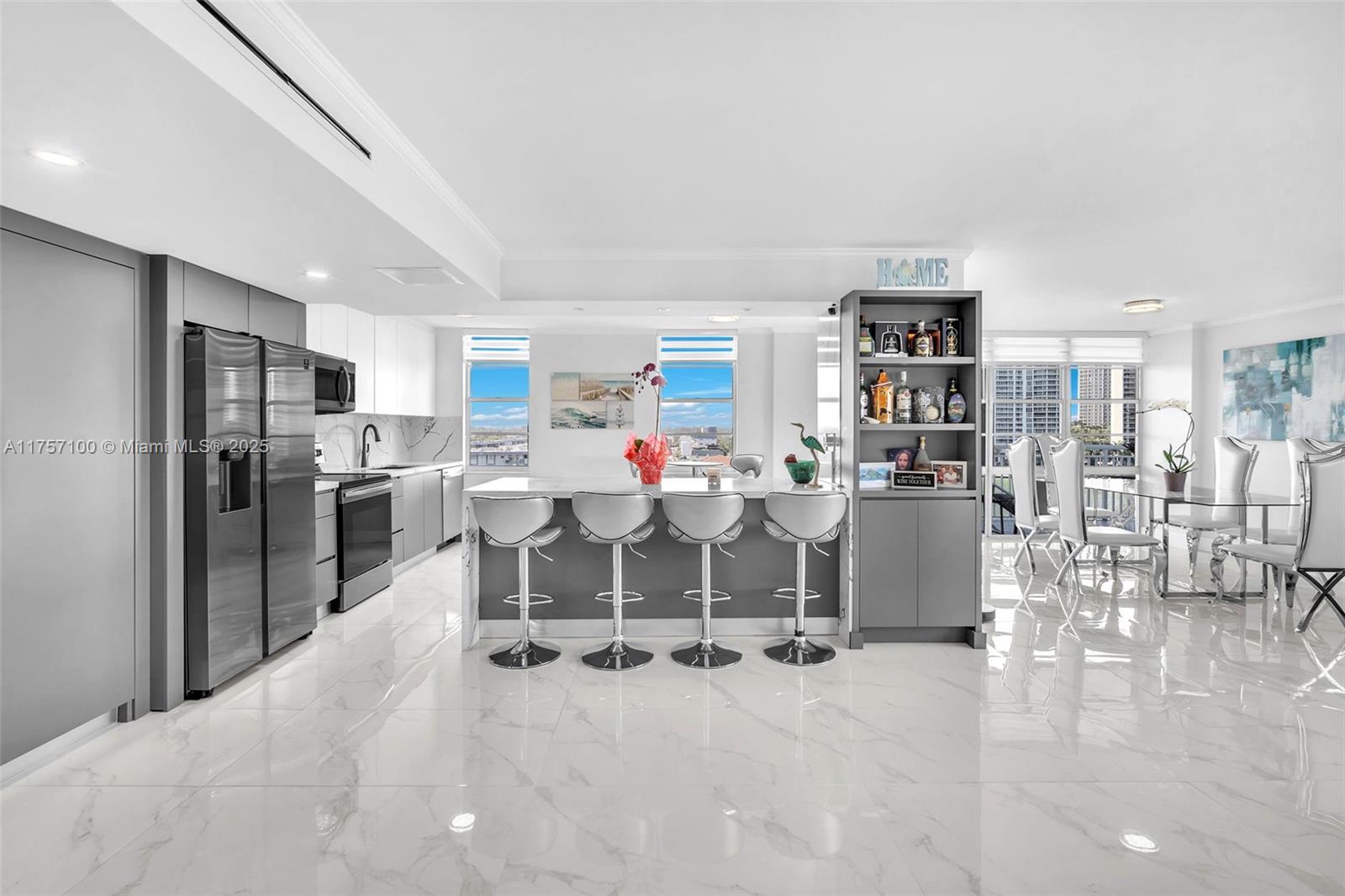 PRICED TO SELL!! This stunning 2-bedroom, 2-bathroom corner unit at Winston Tower 500 in Sunny Isles offers breathtaking views and an unbeatable location. Just a short walk from the beach, top restaurants, and retail stores, walkable distance to everything that you need, also free shutter service. This fully remodeled 1,840 SF residence boasts a bright, open-concept design, a sleek quartz kitchen countertop, and high-end stainless steel appliances. The building features a range of top-tier amenities, including a pool, fitness center, library, billiards room, playroom, and 24-hour security. Recent renovations include updates to the roof, balconies, pool, and elevator, ensuring a modern and well-maintained living environment.