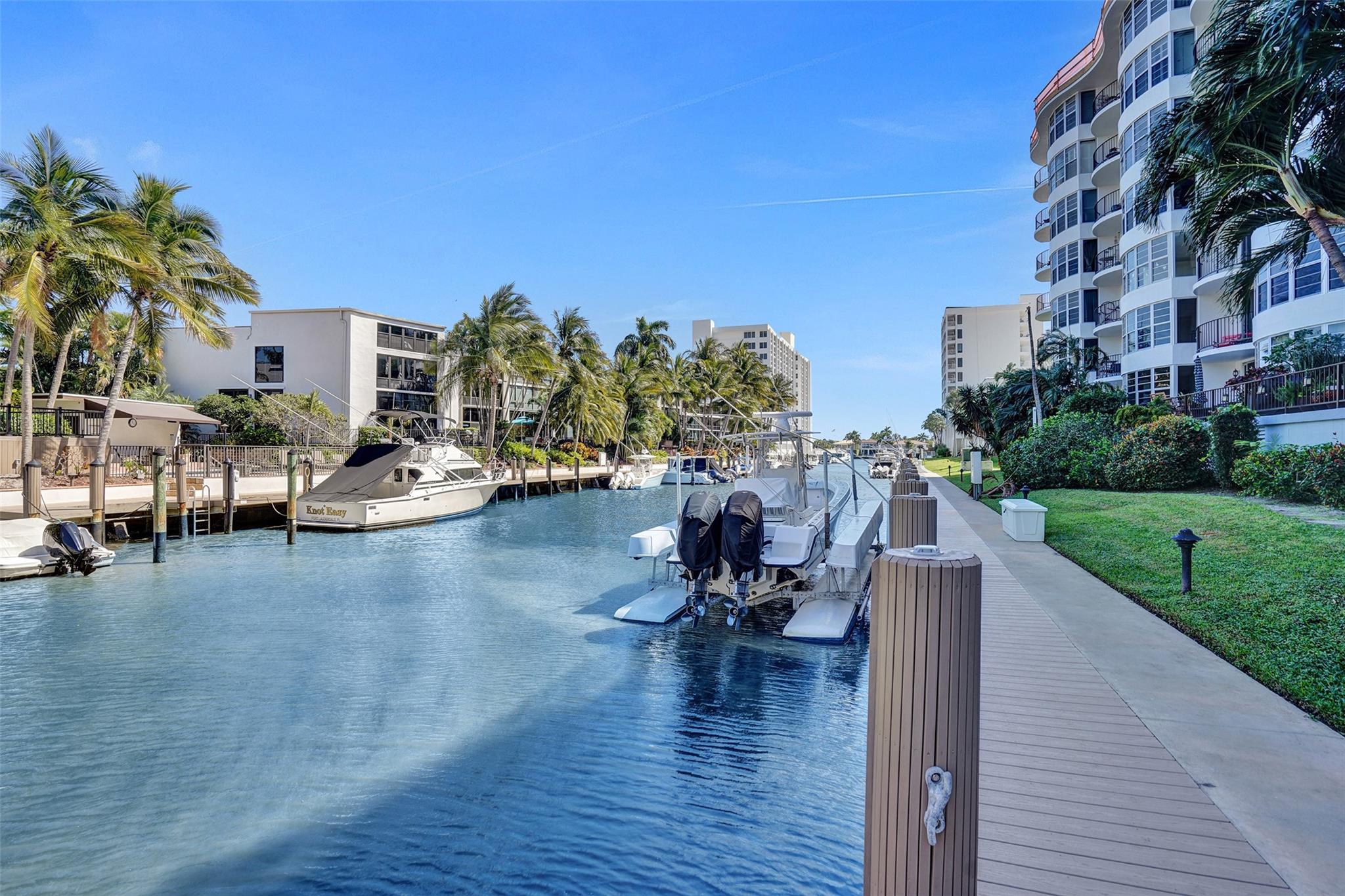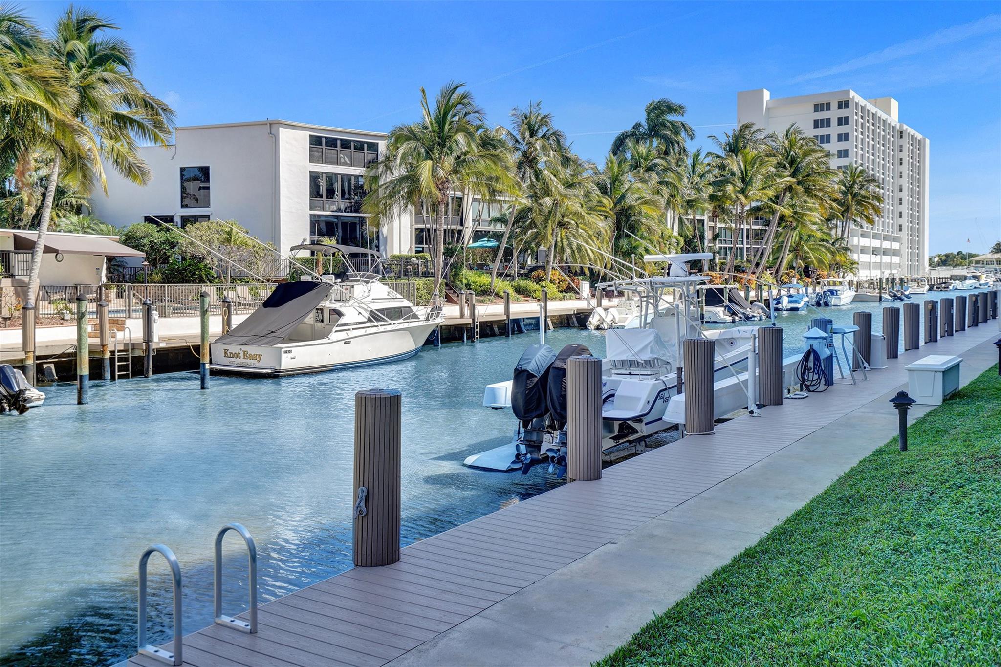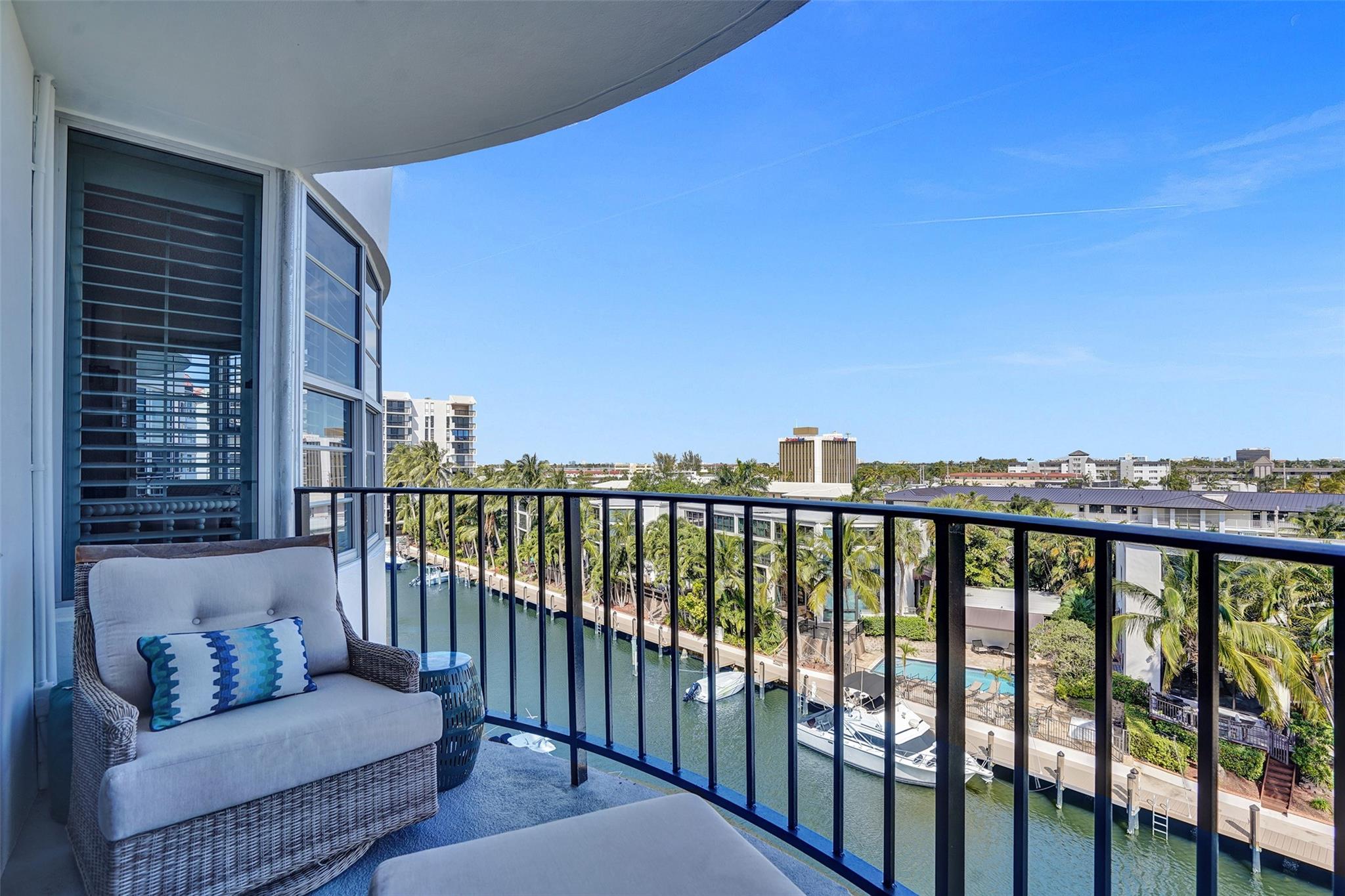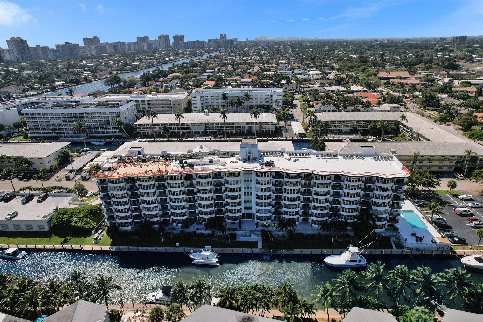 Stunning, luxurious waterfront living in this 2BR/2BA condo with 1450 SF of modern space. This turn-key unit features a renovated kitchen with granite countertops, stainless steel appliances, and custom cabinetry. New elegant plank ceramic floors, new hurricane compliant windows/doors, plantation shutters, and newly painted! Spacious master and second bedroom feature large walk in closets. Washer/dryer in unit! One parking space in the covered garage. The secure building finished its concrete restoration and almost everything is new, including modernized elevators, new dock, new roof, seawall updates, and a heated pool that gets sun-all day. Pet-friendly and just steps from top dining, shopping, nightlife, and minutes from Lauderdale- by-the-Sea Beach. Low HOA’s. Parking space 41