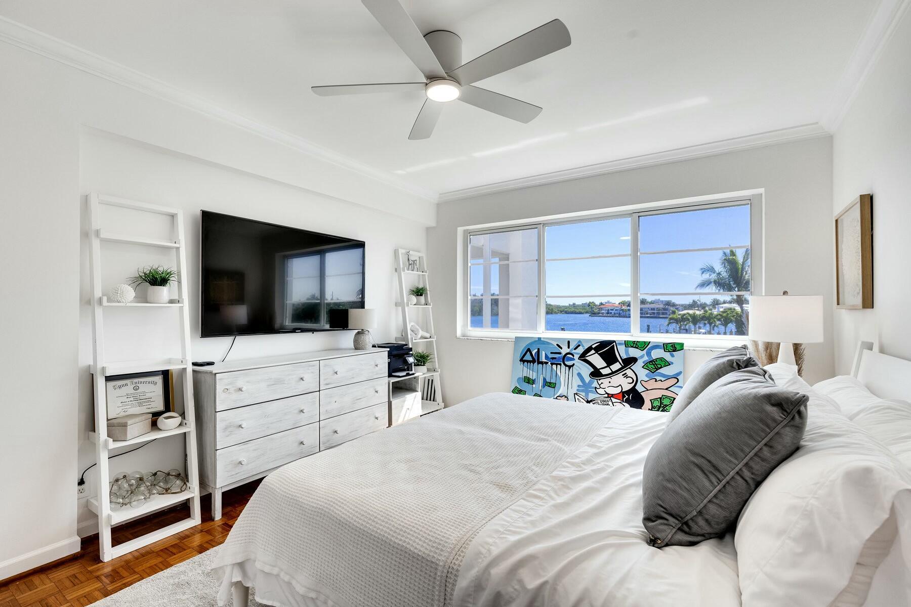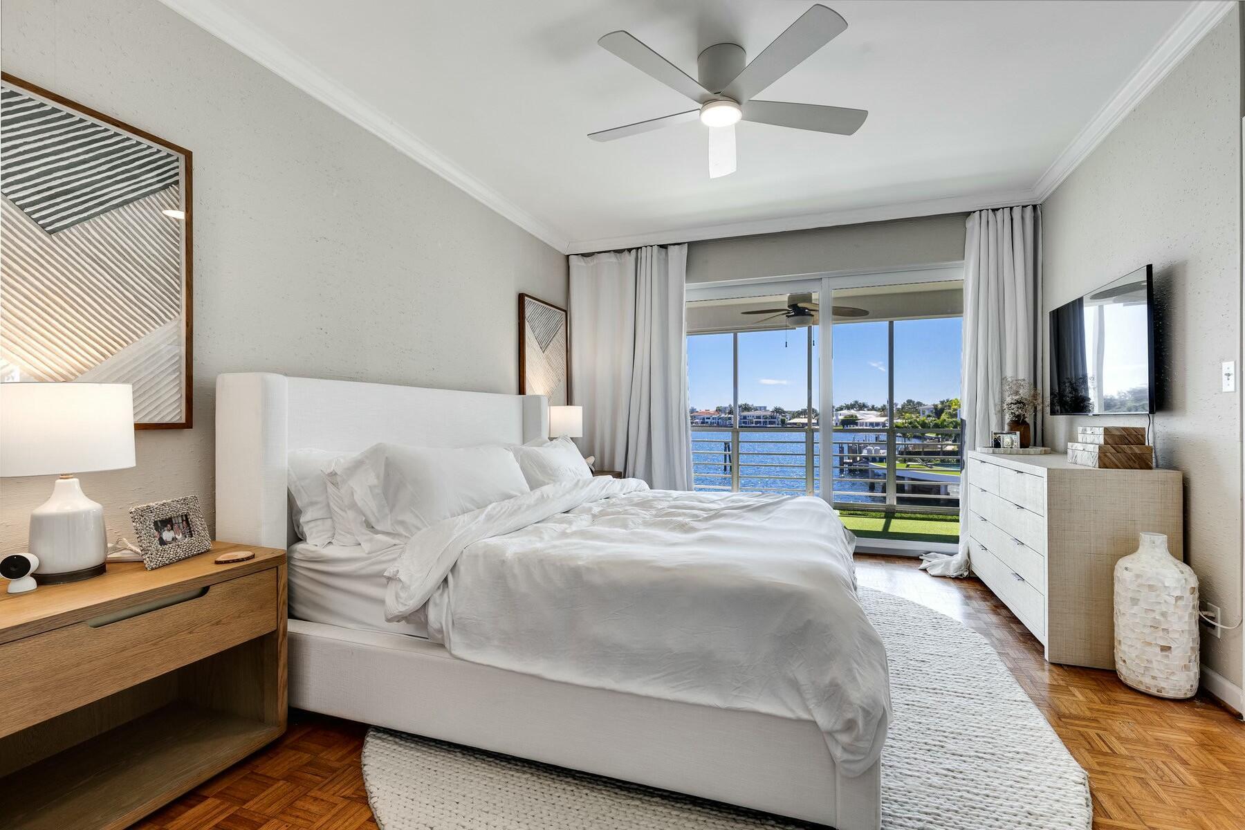 The Rogers House is a waterfront boutique, Frank Lloyd Wright-inspired condo offering unmatched privacy where all condos feature no shared walls. This 2-bed, 2-bath unit boasts breathtaking water views from every room and nearly 250 feet of prime waterfront on Lake Rogers with sought-after southern exposure for all-day sun. Just a short walk to Spanish River Beach, the property features a pool and private docks. Recent upgrades include full impact glass, smooth ceilings and walls, crown molding, and designer wallpaper in the primary suite. The kitchen boasts brand-new 2024 appliances, and a new Bosch A/C system ensures efficiency. Don't miss this rare opportunity to own a move-in-ready waterfront condo in one of Boca Raton's most desirable locations! 40 YR RECERTIFICATION COMPLETE