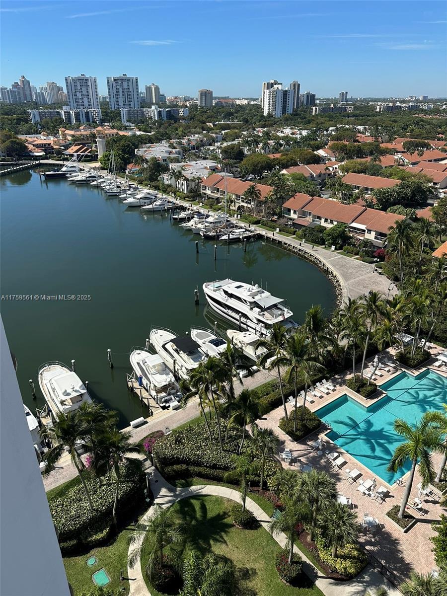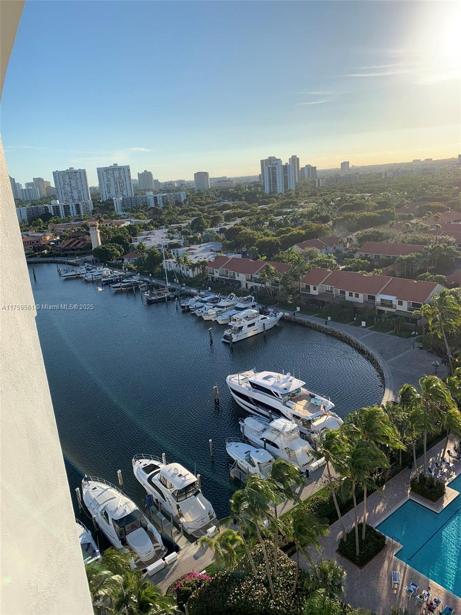 Experience breathtaking views from this stunning 15th-floor penthouse in Portsview at the Waterways—one of the best locations in Aventura! This beautifully designed 2-bedroom, 2-bathrooms with a balcony overlooking the water. This unit is the EPITOME of waterfront luxury with countless upgrades that you MUST see for yourself! Enjoy resort-style living in this gated community with exceptional amenities, including two pools, a fitness center, tennis courts, a stylish party room, and scenic walking paths surrounded by lush greenery. Conveniently located within walking distance to Houses of Worship, Don Soffer High School, Waterways Park & Marina, Whole Foods, and Aventura Mall.