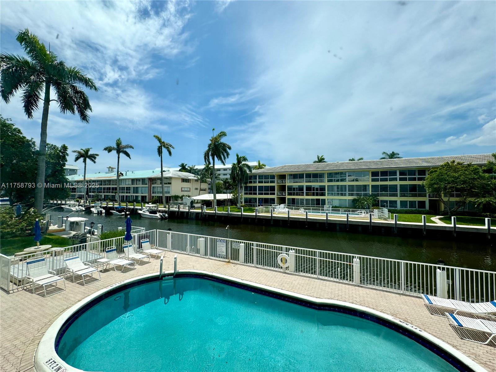 Excelent conditions and large Waterfront One bedroom condo, Furnished, with one full and half baths, located in Coral Ridge; located just a few buildings from the Intracoastal Waterway. Walking distance to restaurants and the beach. This unit features newer laminated floor, updated bathrooms, enclosed balcony for additional living space, stainless steel applicances, track lighting, fans, large walk-in closet and a built in, floor to ceiling book shelves. A must see before it goes!
