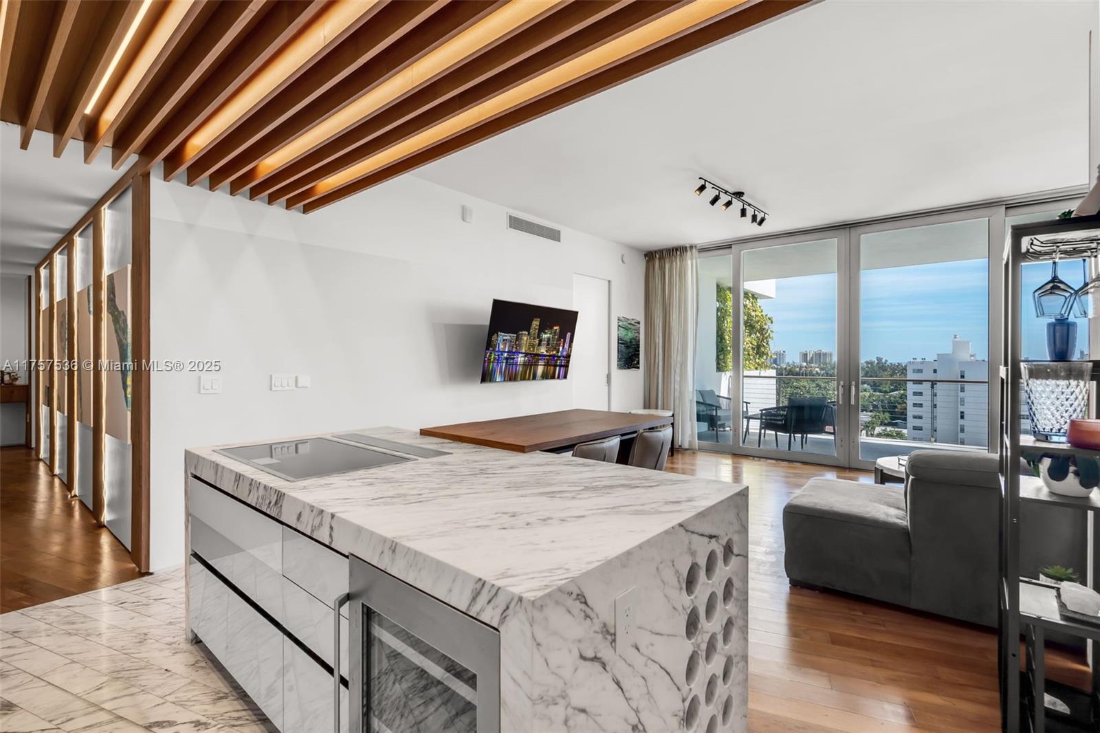 Oceanview 2 bedroom residence in Miami Beach's newest, premier waterfront building - Monad Terrace. With panoramic views of South Beach and the ocean beyond, enjoy seamless indoor/outdoor living with two expansive terraces. Exceptional finishes are featured throughout include teak and marble flooring, kitchens by Gaggenau with Calacutta counters and sumptuous marble baths with designer fixtures. Thoughtful upgrades elevate this home with custom built-out closets/storage, custom window treatments, custom wood trim throughout and balcony green wall. Award-winning architect, Jean Nouvel, delivers this celebrated masterpiece with only 59 waterfront residences perfectly positioned between the popular neighborhoods of Sunset Harbour and South of 5th. Priced to Sell, all offers welcome.