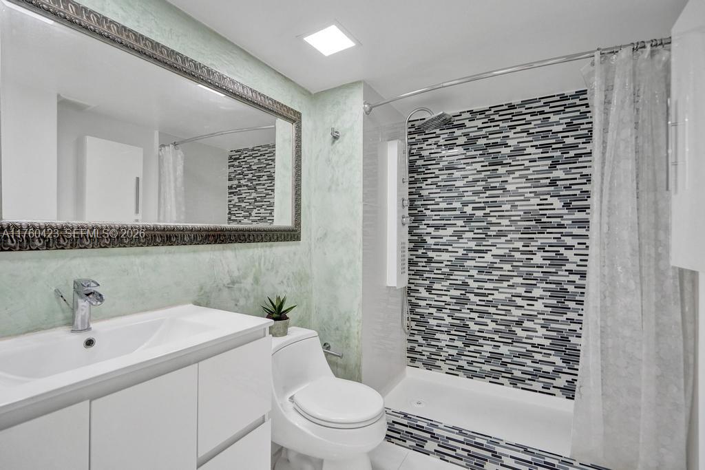 This completely remodeled & generously spacious unit offers mesmerizing, unobstructed, direct ocean views from every window. The large open kitchen features all-new cabinets & appliances, white porcelain floors throughout. New A/C & the convenience of a washer & dryer in the unit. Everything has been beautifully redone. Additional highlights include a large walk-in closet, a linen closet for ample storage, & 2 parking spaces. This is the largest floor plan in the building at just under 1400 SF. The building offers a 24hr doorman, gym, pool. Pet friendly. Does not allow short term or nightly rental. The neighborhood is walkable with shopping, restaurants & grocery stores close by. There is a park across the street w/ parking, a designated dog park, huge playground & beach entrance.