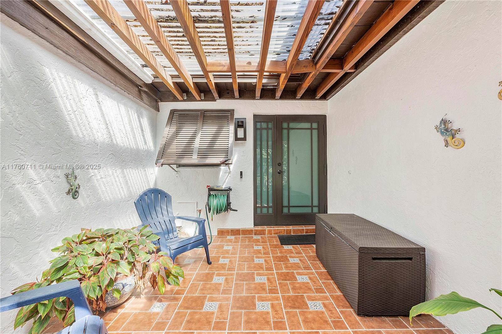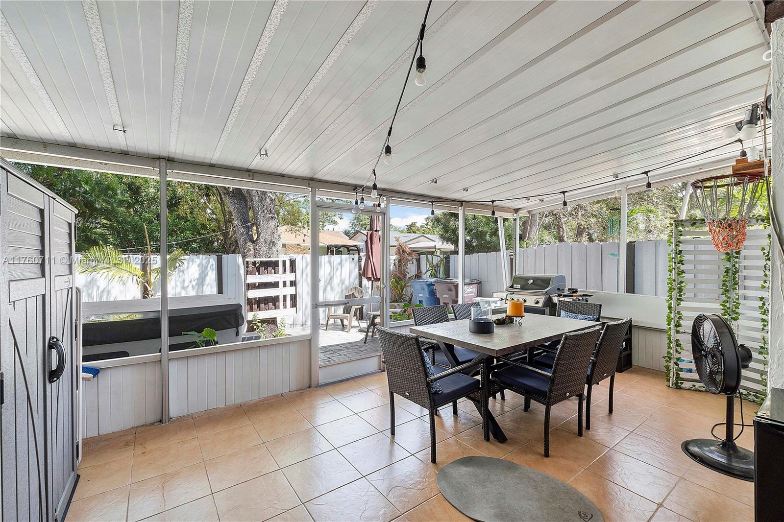 Beautifully updated fee simple Villa in community of Sheridan Oaks. This residence has 3 beds, 2 baths +den/office, a private front open & screened courtyard, 2 deeded parking spaces - right at your front door, adorable foyer entry, hurricane impact windows & doors, 24X24 tile floors throughout, open kitchen with granite countertops & s.s appliances, laundry room with w/d, shelving & 2024 hot water heater. Living room has direct access to fully enclosed tile patio+private fenced stamped concrete backyard with jacuzzi/spa perfect for entertaining. AC & Roof replaced in 2023! Perfectly located between Miami & Ft. Lauderdale, close to Ft. Lauderdale Intl. Airport, major highways, houses of worship, TY Park, Memorial Hospital, Hard Rock Hotel & Casino, shopping, dining, & DT Hollywood & Beach