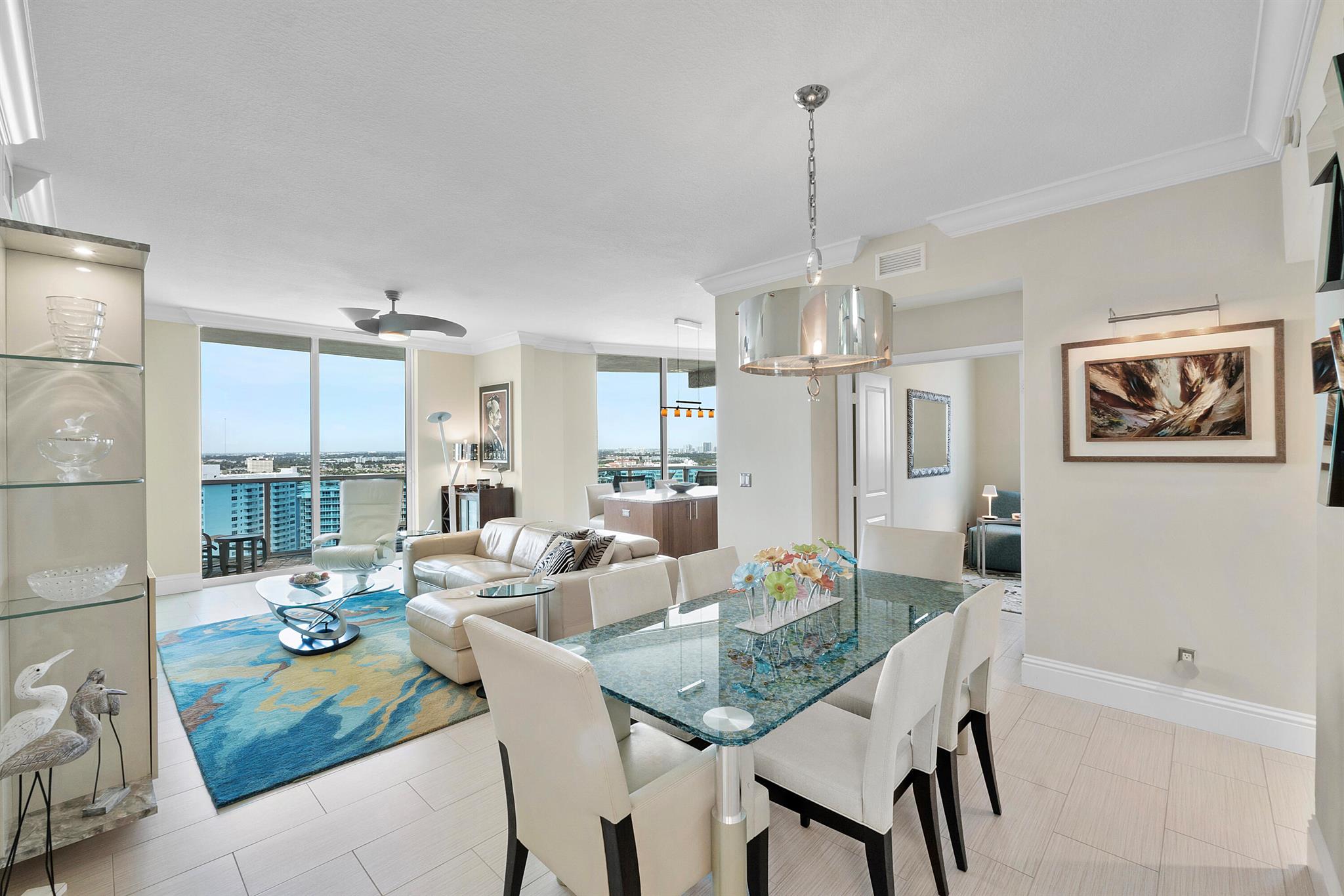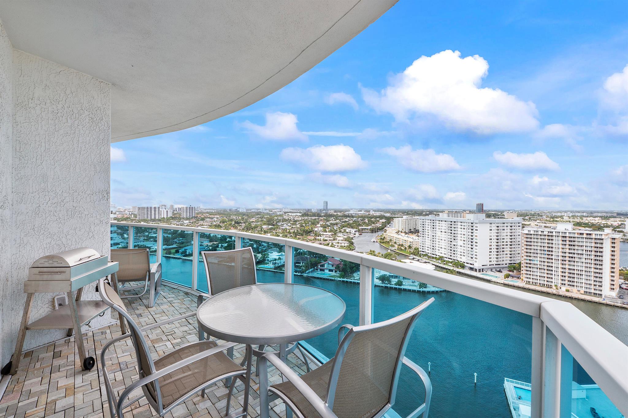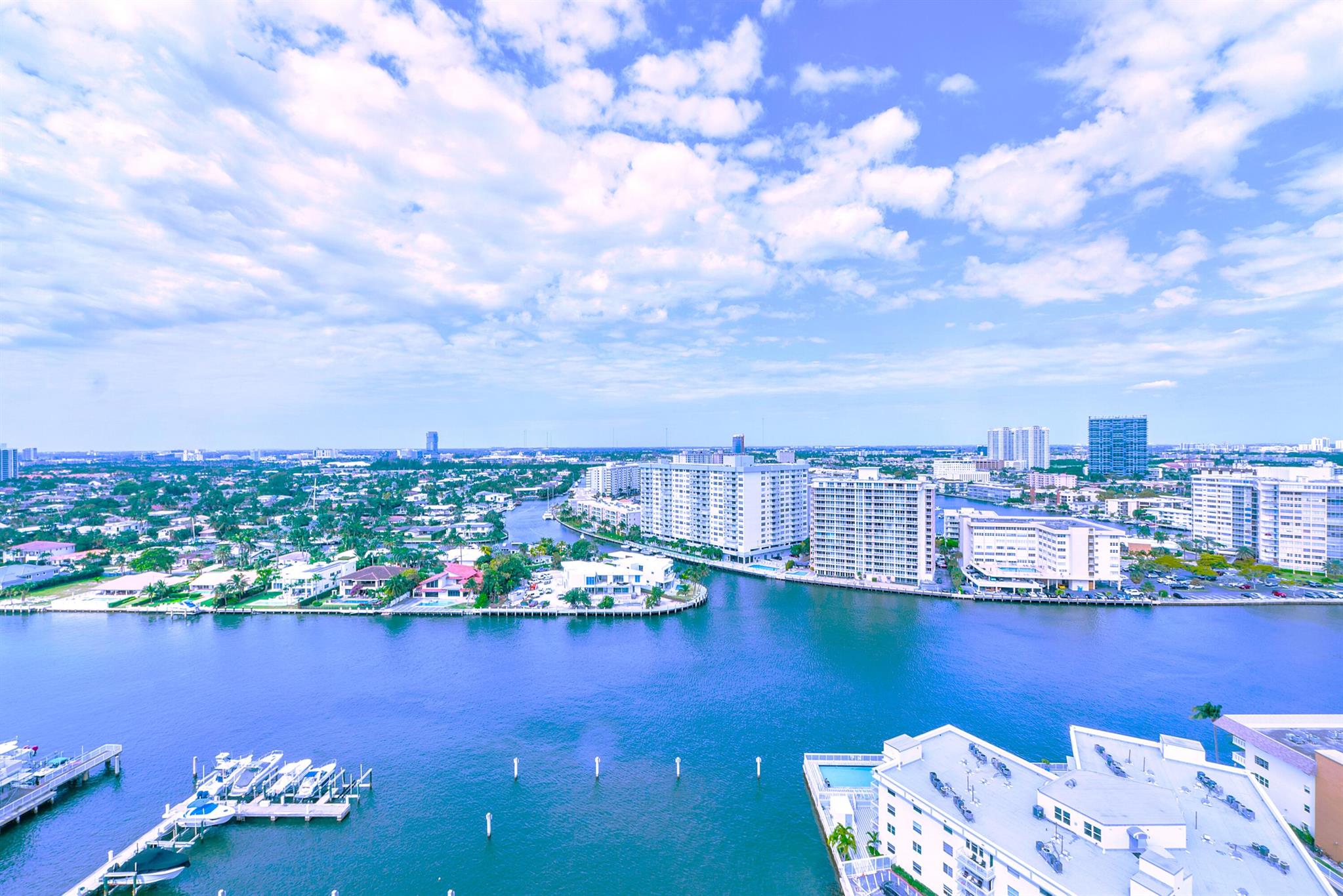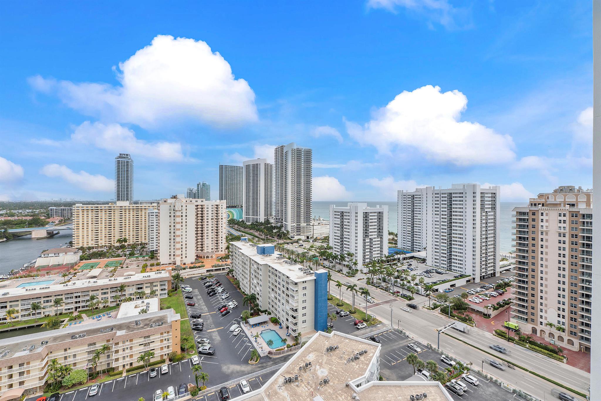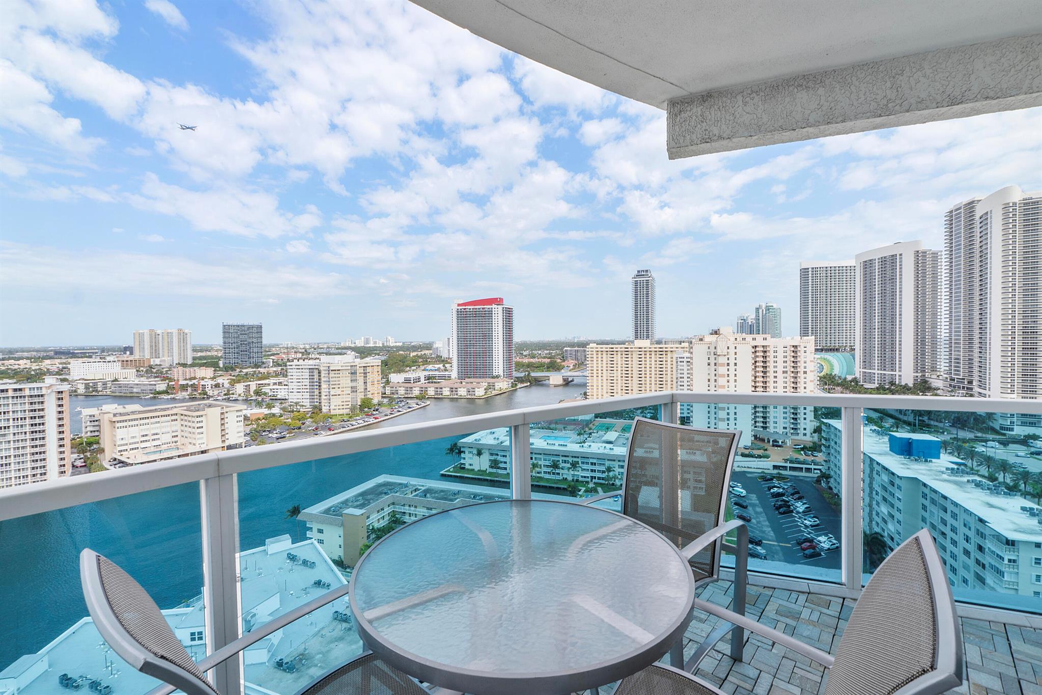 Fantastic find! Welcome to this magnificent sunlit 3 BR/2.5 Bath aerie high above the Intracoastal Waterway with views that go on 'forever'. This is a rare opportunity to own this 19th floor SW corner condo in the Ocean Marine Yacht Club.The unit has everything you want and is truly move-in ready. Both the primary and the 2nd bedroom have en-suite full, custom bathrooms. The 3rd bedroom would make a great office/den. There are new s/s appliances, Italian porcelain floors, gorgeous lighting fixtures that are all electrically controlled, an open island kitchen with another window over the sink and sliders to the tile-covered wrap-around terrace, custom closets galore, custom black-out shades, and more. There is also a separate large laundry room with a new washer and dryer.