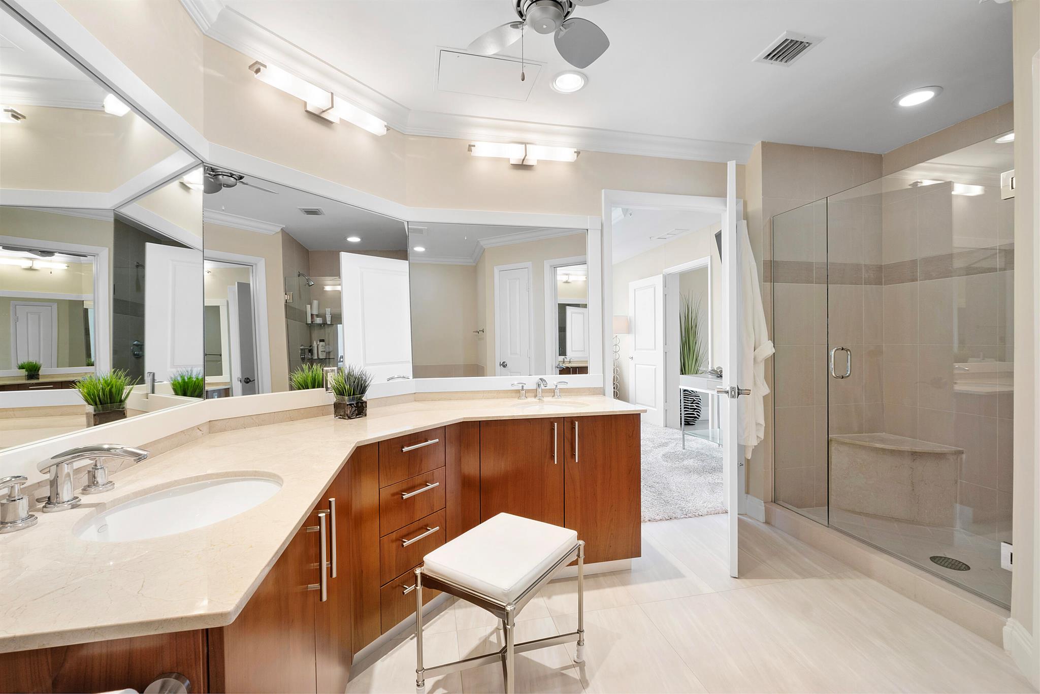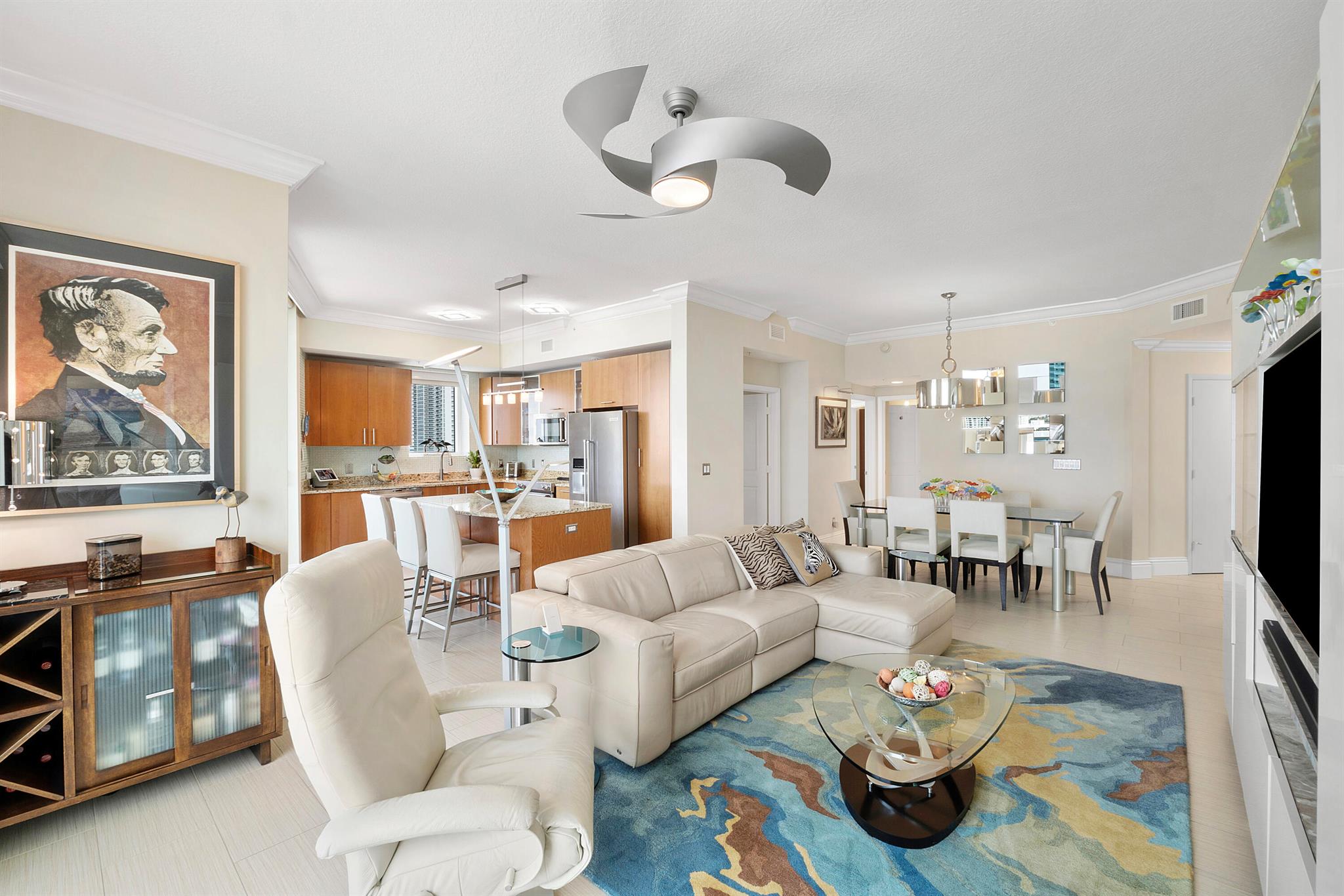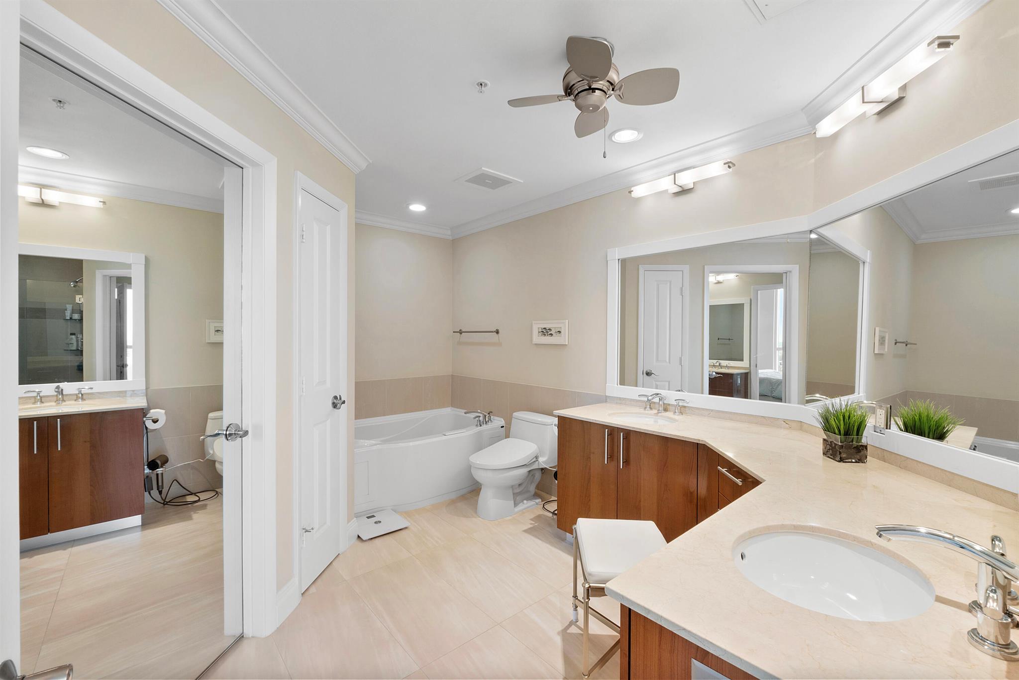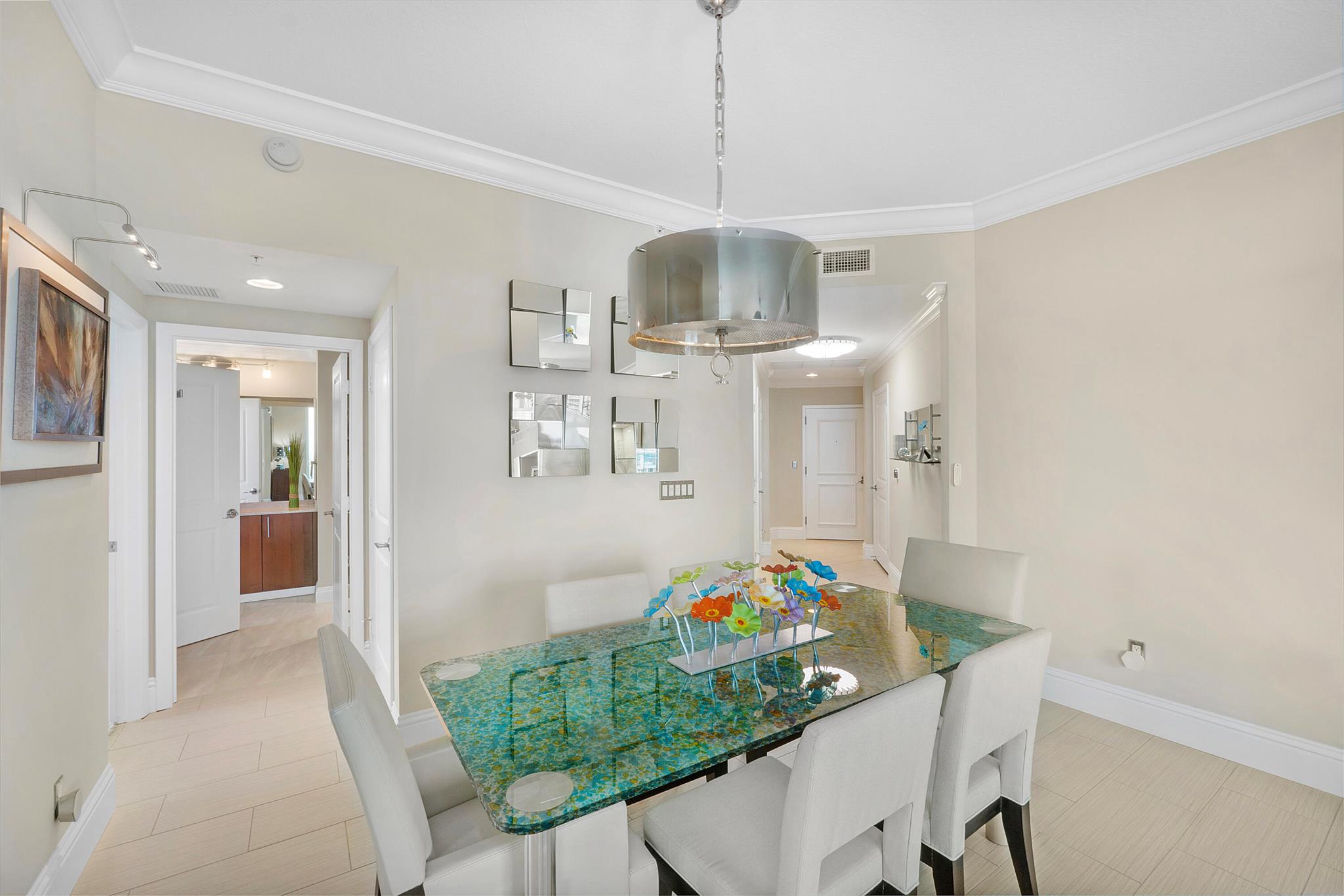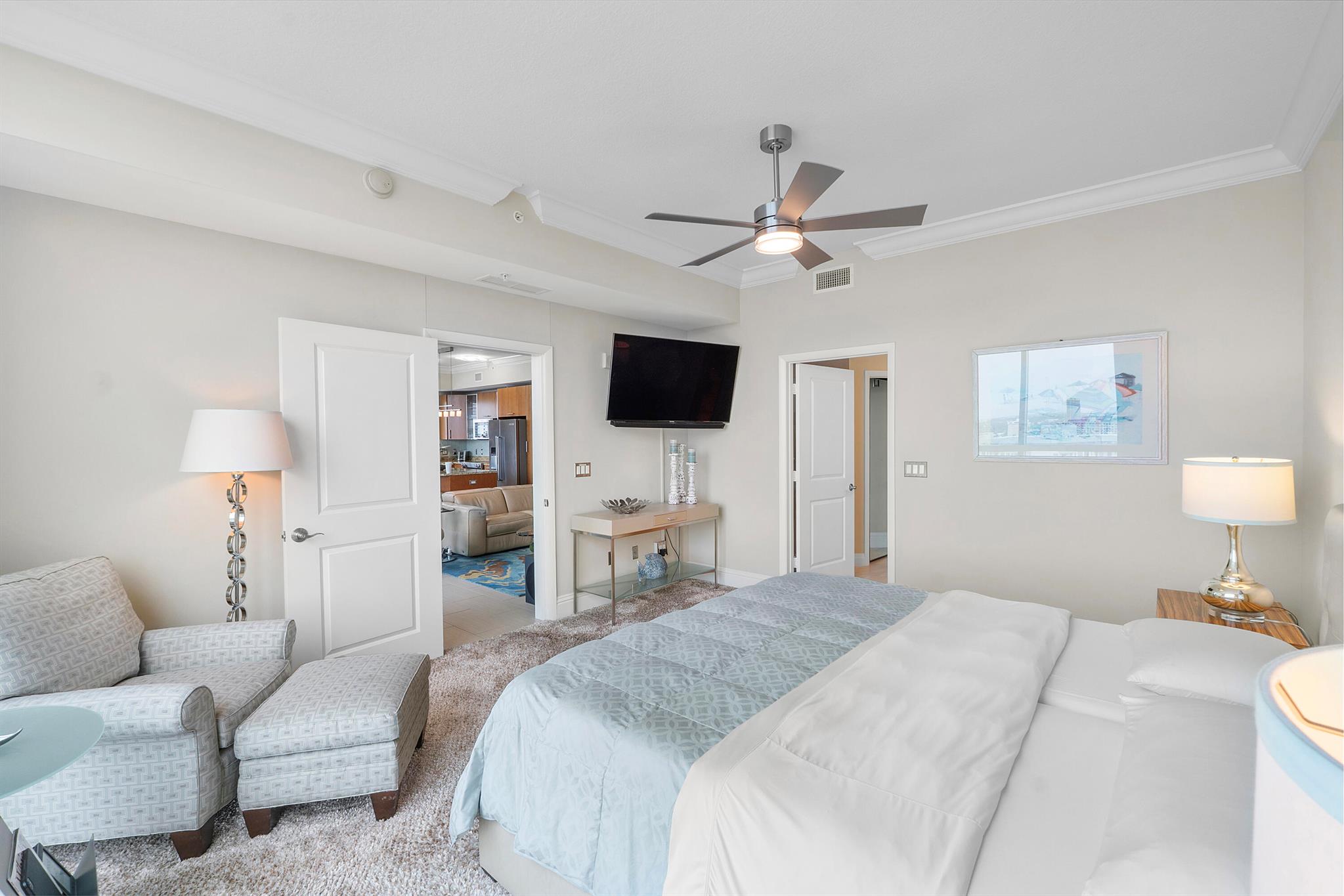 Fantastic find! Welcome to this magnificent sunlit 3 BR/2.5 Bath aerie high above the Intracoastal Waterway with views that go on 'forever'. This is a rare opportunity to own this 19th floor SW corner condo in the Ocean Marine Yacht Club.The unit has everything you want and is truly move-in ready. Both the primary and the 2nd bedroom have en-suite full, custom bathrooms. The 3rd bedroom would make a great office/den. There are new s/s appliances, Italian porcelain floors, gorgeous lighting fixtures that are all electrically controlled, an open island kitchen with another window over the sink and sliders to the tile-covered wrap-around terrace, custom closets galore, custom black-out shades, and more. There is also a separate large laundry room with a new washer and dryer.