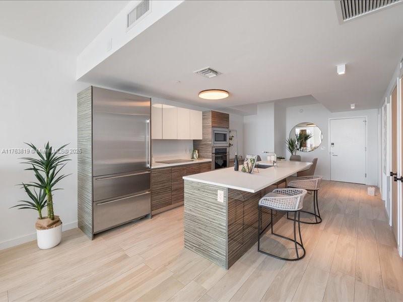 Luxury Waterfront Living in Icon Bay This stunning 2-bed, 2-bath condo in Edgewater offers unobstructed Biscayne Bay views from floor-to-ceiling windows and a private balcony. The open layout features a gourmet kitchen, spacious primary suite, electric blinds, and modern finishes. Enjoy resort-style amenities, including an infinity pool, fitness center, tennis courts, and a waterfront park. This property is in a prime location near Wynwood, and Downtown Miami.