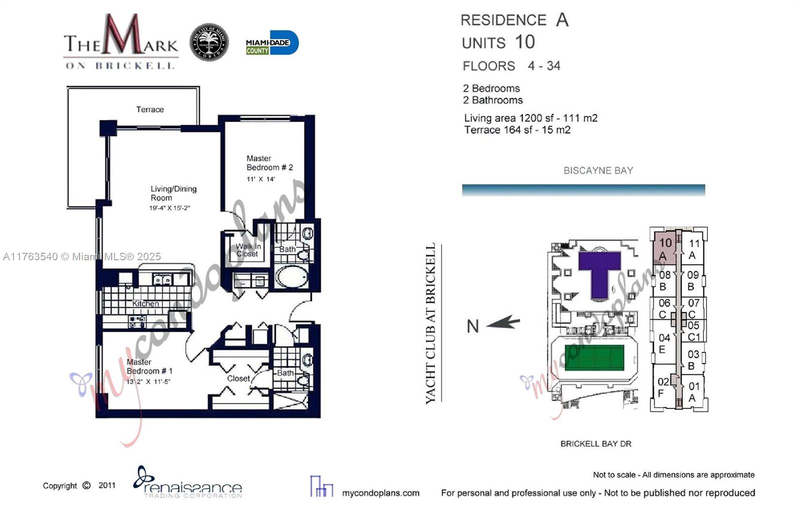 Endless bay views from this corner NE facing 2 bedroom, 2 bath condo at the Mark. The 10 line is the most desired line at The Mark. The unit features a split floor plan, many designer features and each bedroom has a walk in closet with plenty of room. Nice size laundry area as well as a pantry in the kitchen. Unit has a new refrigerator, marble flooring throughout, quartz counter tops, solid wooden doors in closets and updated bathrooms. . The condo is in central Brickell, walk to City Center and all of the activity. Well-managed building with enough reservers for the SIRS requirements.