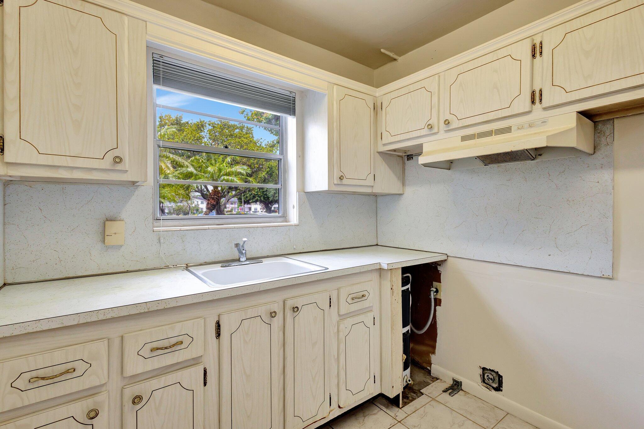 This Condo is Priced to Sell Quickly. CORNER unit on the FIRST Floor with parking space right in front of door. This Condo has CENTRAL AC. Walking Distance to main Gate on Okeechobee Blvd. Walk to shops, restaurants and moreTile flooring throughout. Will need TLC. There are no appliances. This is a one bedroom 1 and 1/2 bath. Many Amenities.