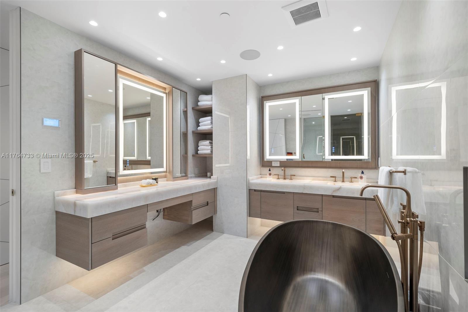Welcome to the coveted Bellini in Bal Harbour Beach, situated in the most sought-after line in the entire building with south exposure. Upon arrival at your private elevator landing, you’re welcomed by open living spaces and direct ocean views. 10 ft floor-to-ceiling windows frame the panoramic scenery of the Atlantic Ocean and iconic Miami skyline. Upgrades include Creston security system with facial recognition and smart house technology, Gaggenau kitchen appliances, beautiful onyx island, and full kosher kitchen. Artefacto furniture, beautiful porcelain floors throughout, and custom closets. Experience the unparalleled living synonyms with Bal Harbour living in one of the best buildings with less than 80 neighbors, services & amenities.