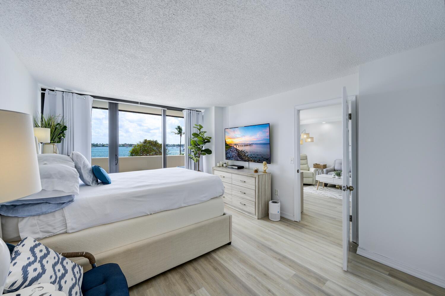 Turnkey waterfront beauty with unobstructed Intracoastal views and private beach! Wake up to breathtaking sunrises and enjoy moonlit nights from every window and the balcony. Watch pelicans at sunset, moor your boat.This split 2b/2ba condo shows like a model--new hurricane sliders, floors, kitchen appliances, quartz counters/backsplash, with updated baths, lighting, hot water heater, and new A/C. Sold fully furnished! Outdoor parking spot near elevators. Amenities include heated saltwater pool, sun decks, fishing pier (perfect for spotting manatees), tiki hut, grill stations, security gate, new fitness center, game room, saunas, library, event rooms, storage locker, and front desk services for packages. The building has recently undergone extensive infrastructure upgrades.