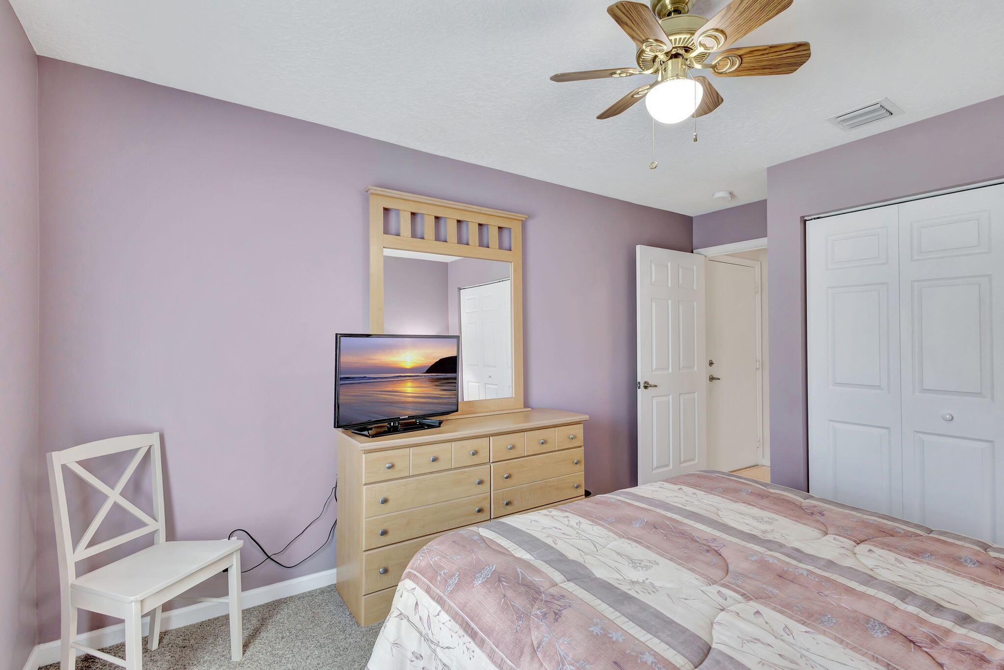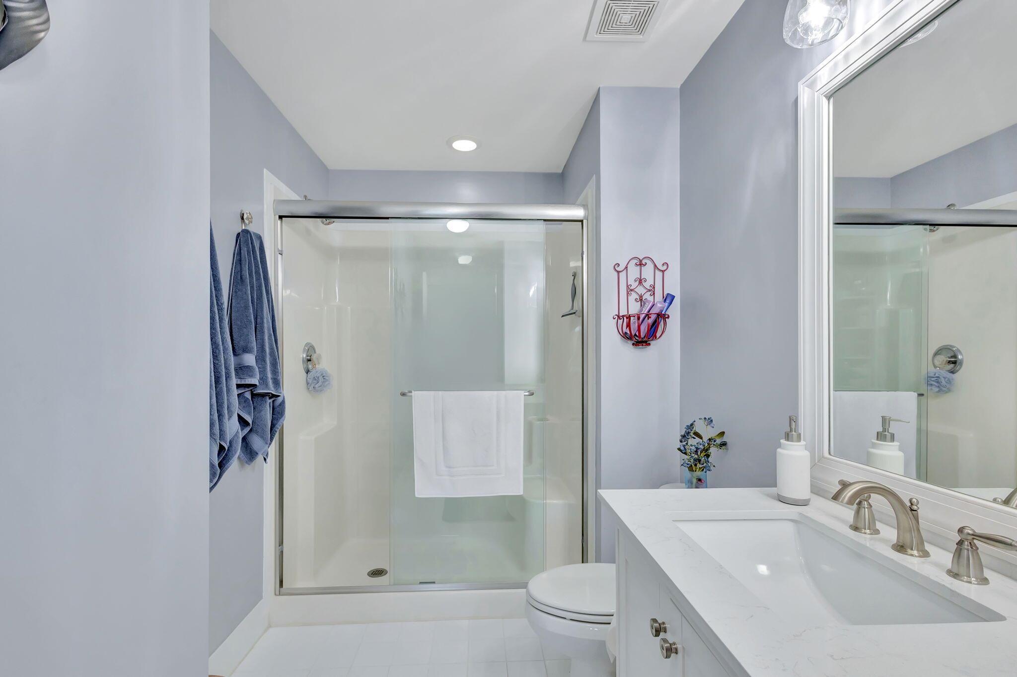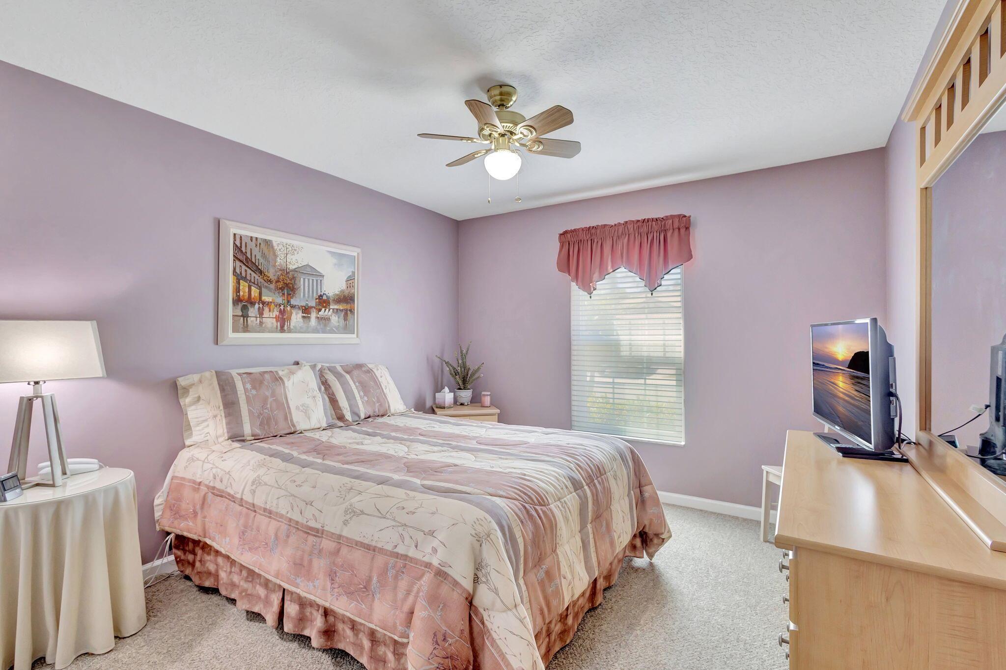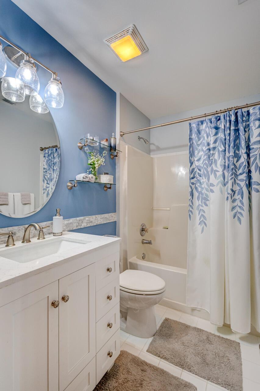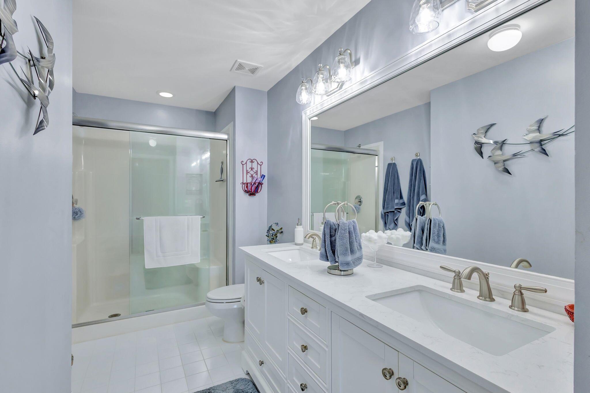 Pristine 2/2/1 villa with wide lake views. Seller is a Snowbird. Offered Furnished. Fully renovated bathrooms, and renovated Kitchen. New appliances. Newer A/C (one year). Rare double driveway in one car garage villas allows 2nd car. Hurricane Impact Windows (except patio slider has accordian storm shutter) Tile floors except carpet in bedrooms. Large covered and screened patio. Premium window treatments. HOA includes monitored security system, 24-7 Staffed gate, CATV, WiFi, Broadband, landscaping,front and back irrigation (lake, not meter), Roof cleaning, exterior painting, resort clubhouse with heated pool and well equipped Fitness Center. Private access road to nearby Publix Shpping Plaza. Easy access to Airporrt, Turnpike, Dwtn WPB, Wellington, mall, cinema, restaurant