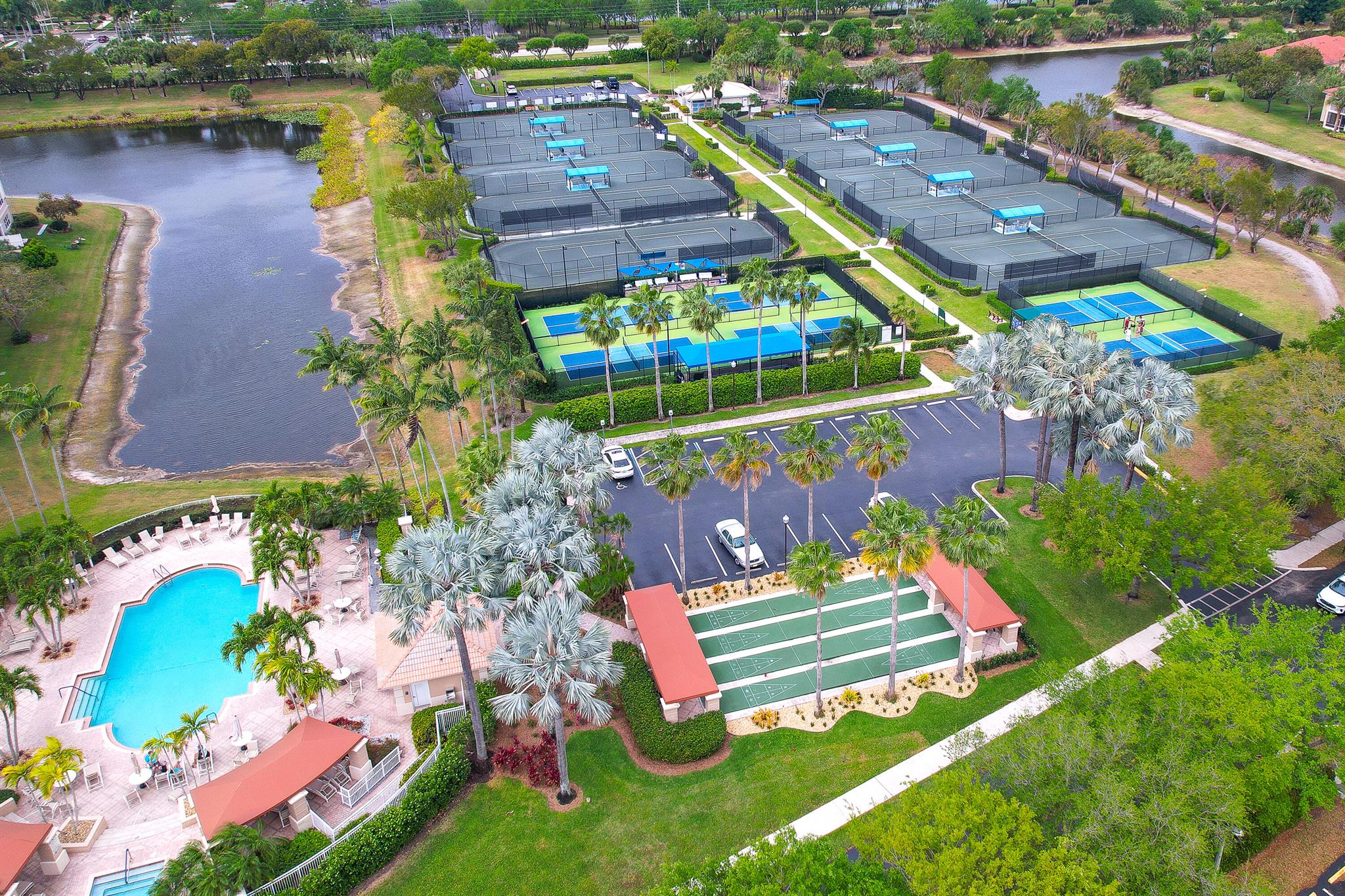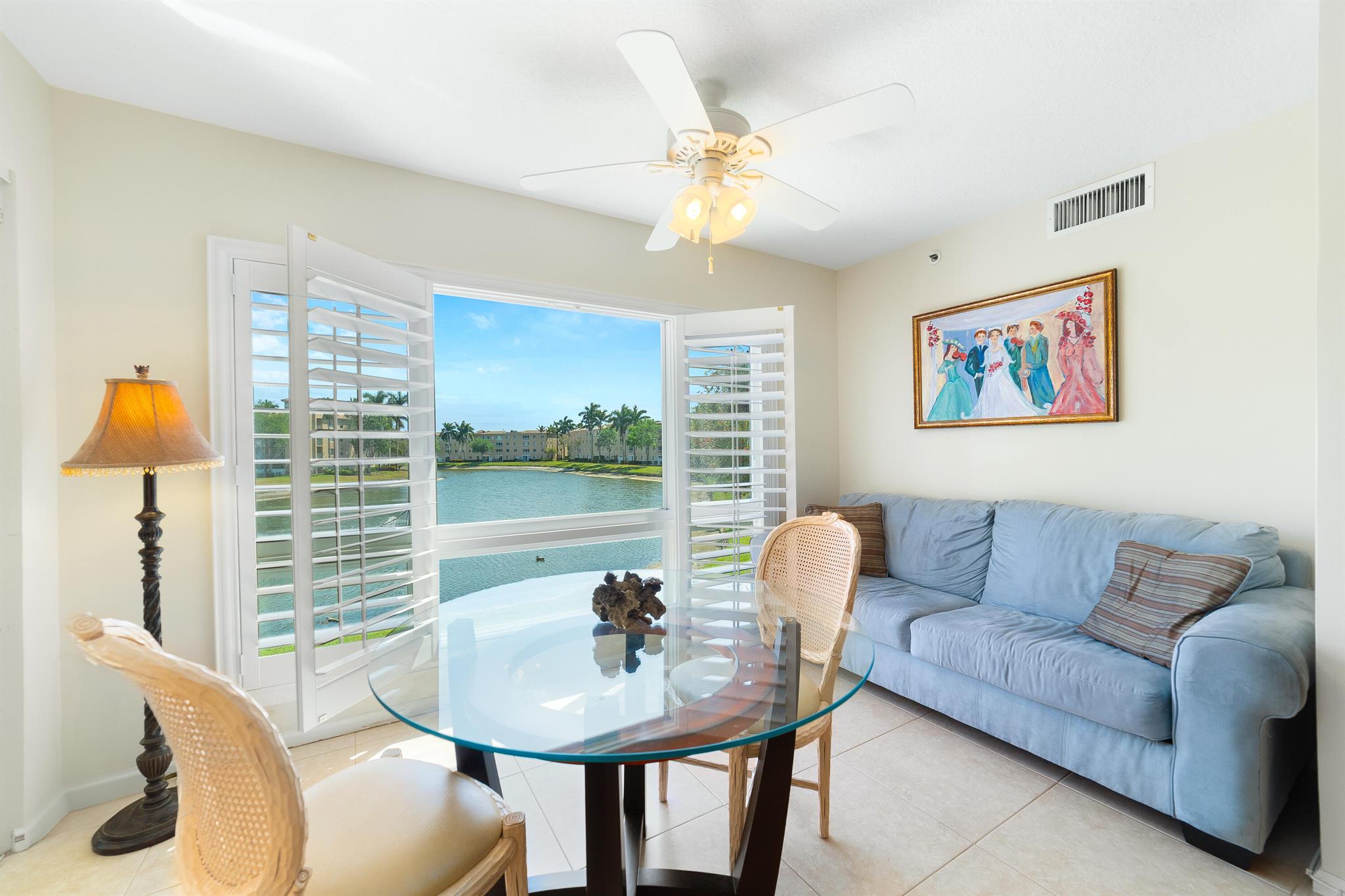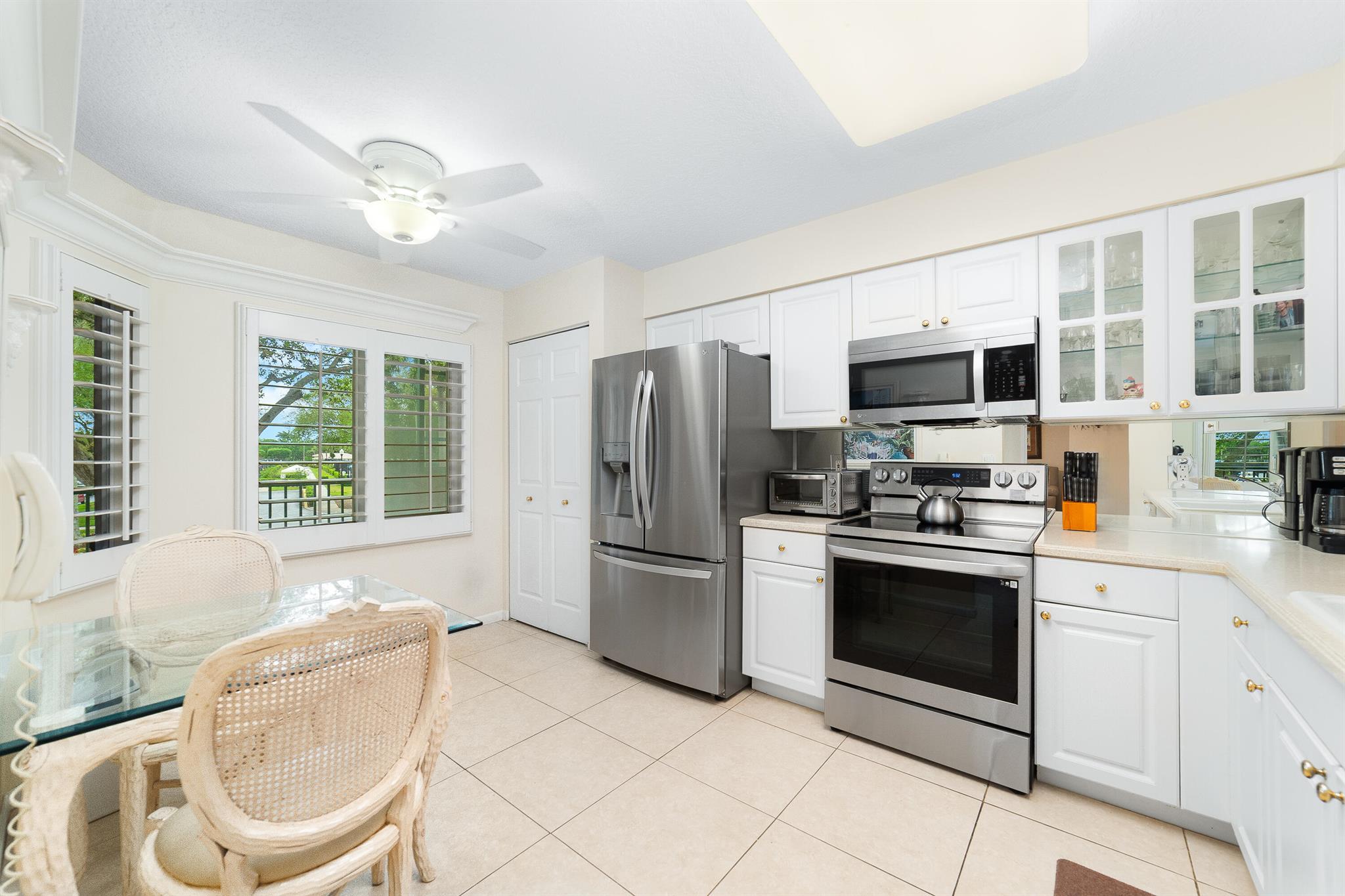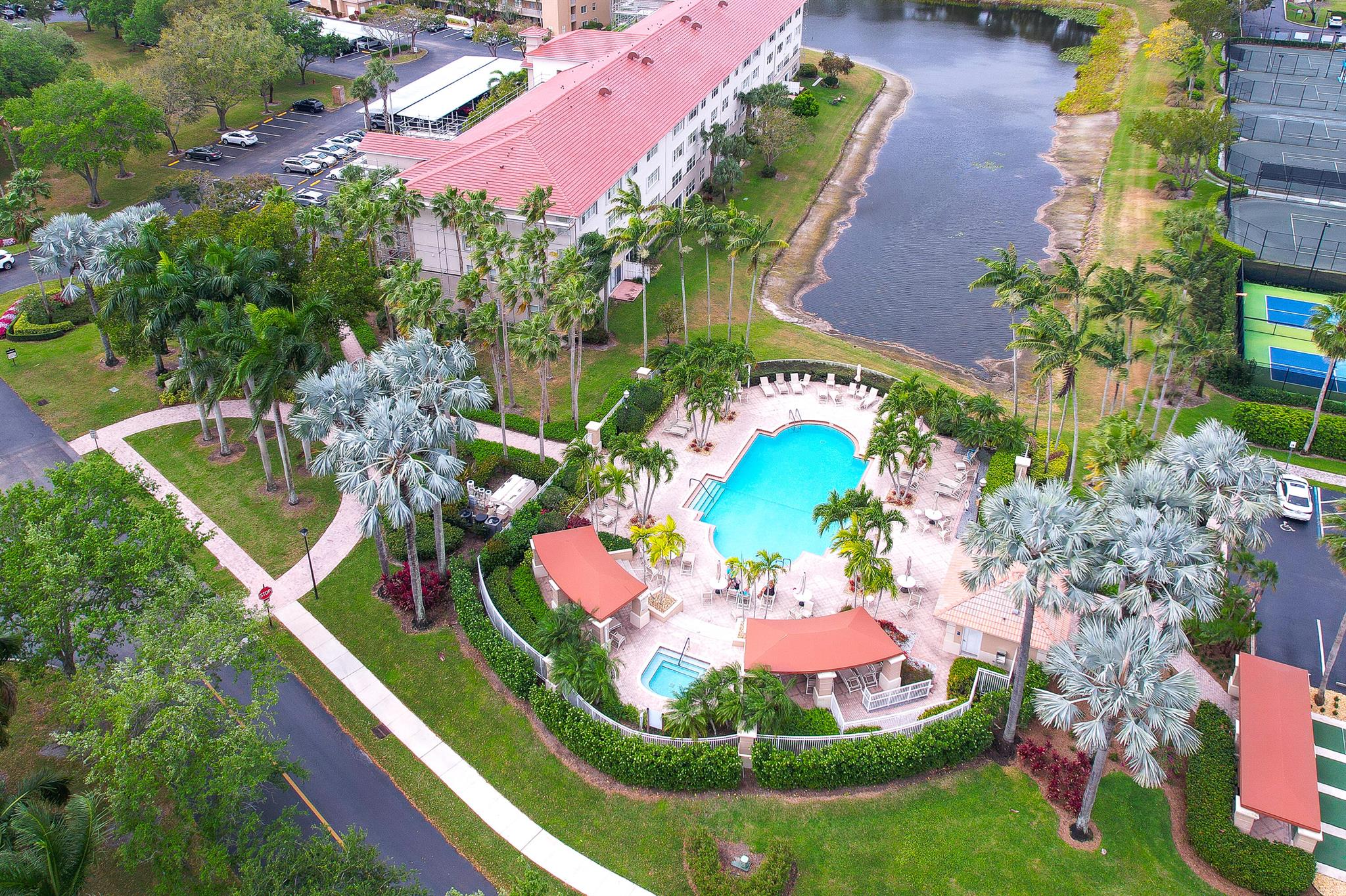 PRICED TO SELL, MOTIVATED SELLER! You'll love the gorgeous LAKE view from this bright and spacious unit in a fantastic, active 55+ community that has so much to offer! The eat-in kitchen is equipped with stainless steel appliances, Corian countertops, pantry and breakfast area. There is ceramic tile in the living areas and den, laminate in the guest bedroom and luxury carpet in the primary bedroom. The primary bedroom faces the lake, and offers a generous walk-in and strip closets. The en-suite primary bathroom is finished with dual sinks, separate tub and shower. Other notable features include a laundry room with a sink, plenty of storage closets, plantation shutters, 2023 AC and 2021 water heater. The roof is expected to be replaced in 2025. This unit is located steps away from the palm
