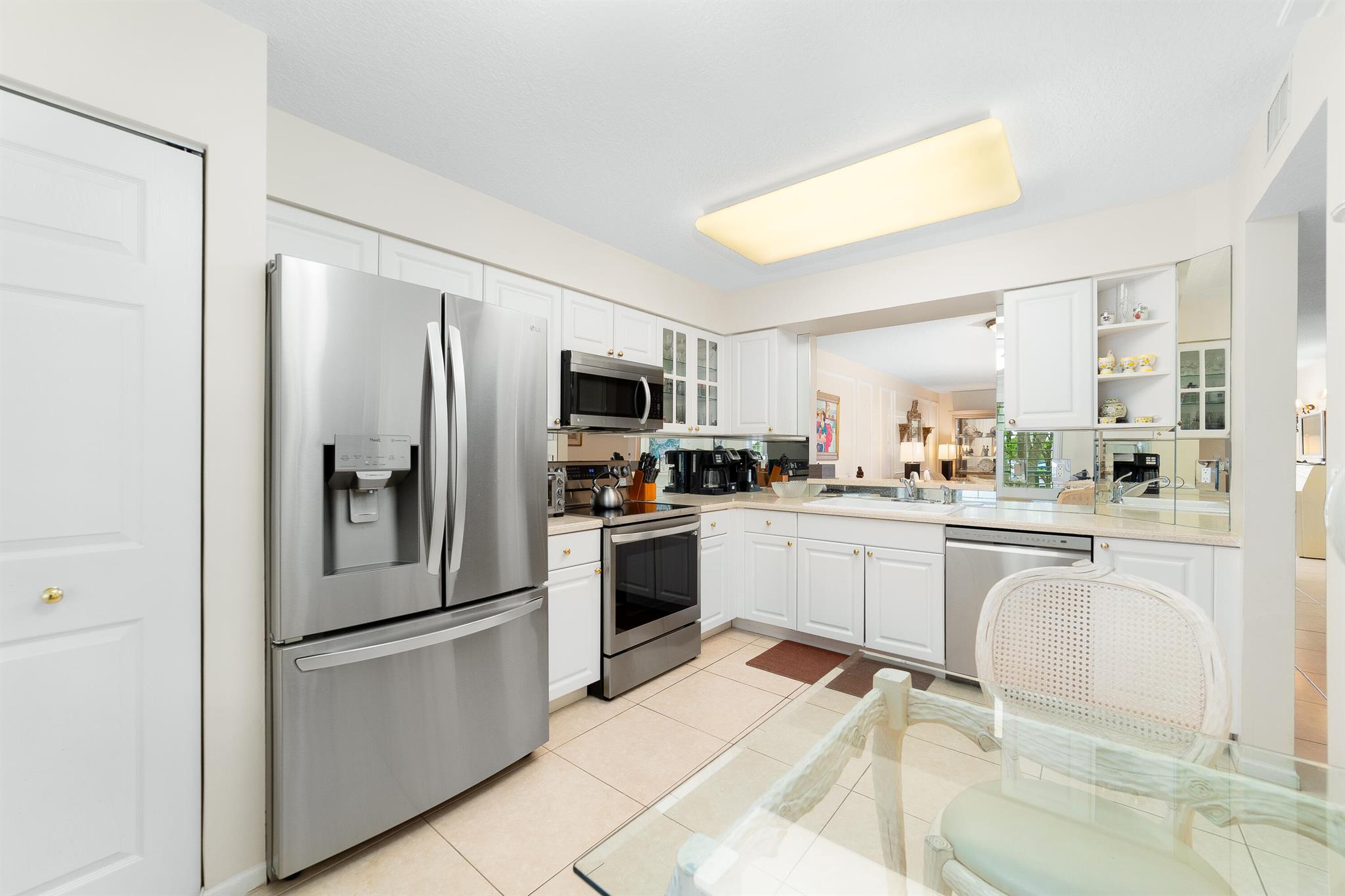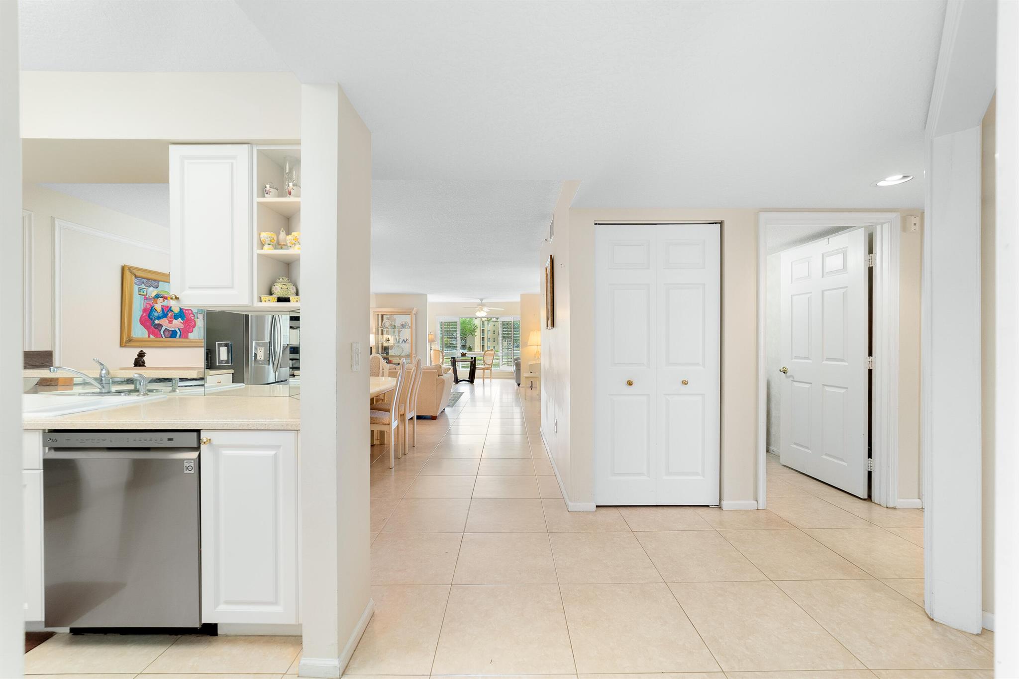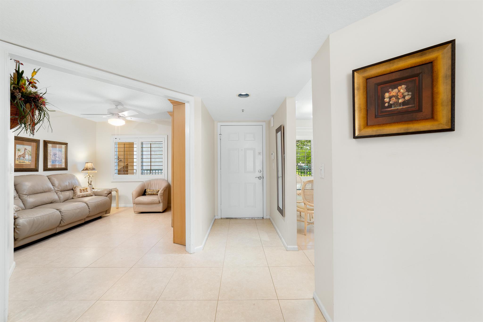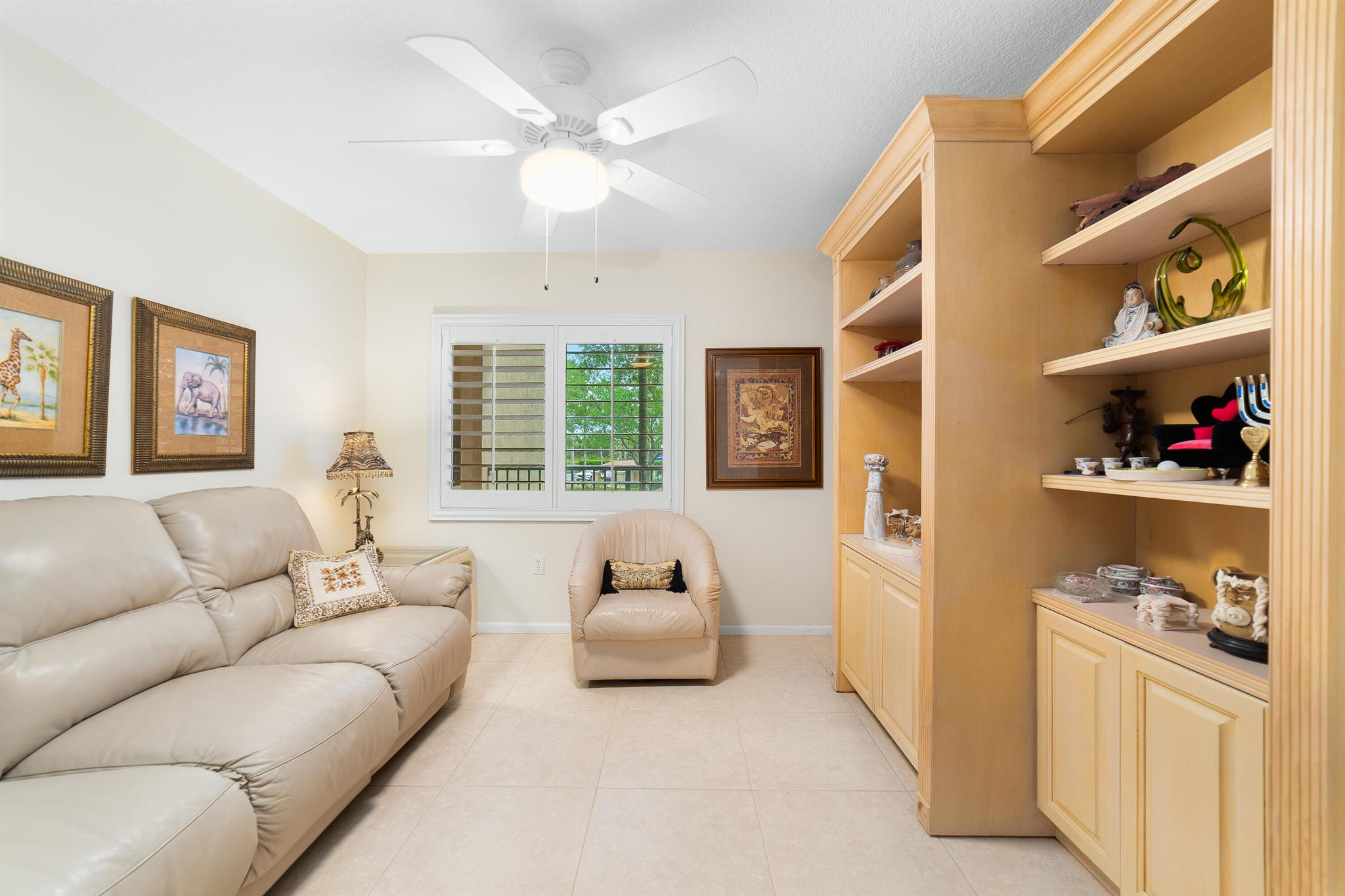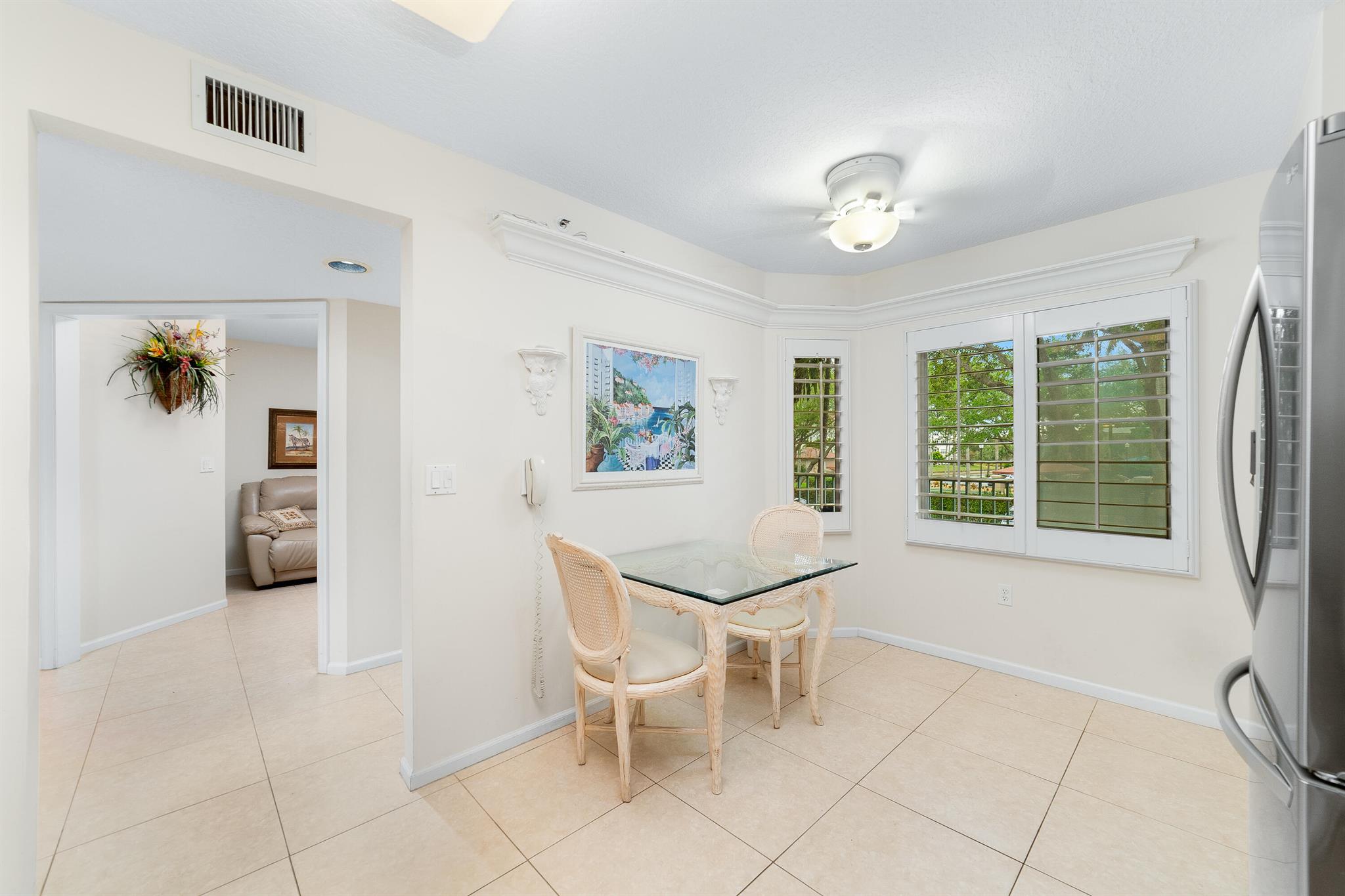 PRICED TO SELL, MOTIVATED SELLER! You'll love the gorgeous LAKE view from this bright and spacious unit in a fantastic, active 55+ community that has so much to offer! The eat-in kitchen is equipped with stainless steel appliances, Corian countertops, pantry and breakfast area. There is ceramic tile in the living areas and den, laminate in the guest bedroom and luxury carpet in the primary bedroom. The primary bedroom faces the lake, and offers a generous walk-in and strip closets. The en-suite primary bathroom is finished with dual sinks, separate tub and shower. Other notable features include a laundry room with a sink, plenty of storage closets, plantation shutters, 2023 AC and 2021 water heater. The roof is expected to be replaced in 2025. This unit is located steps away from the palm