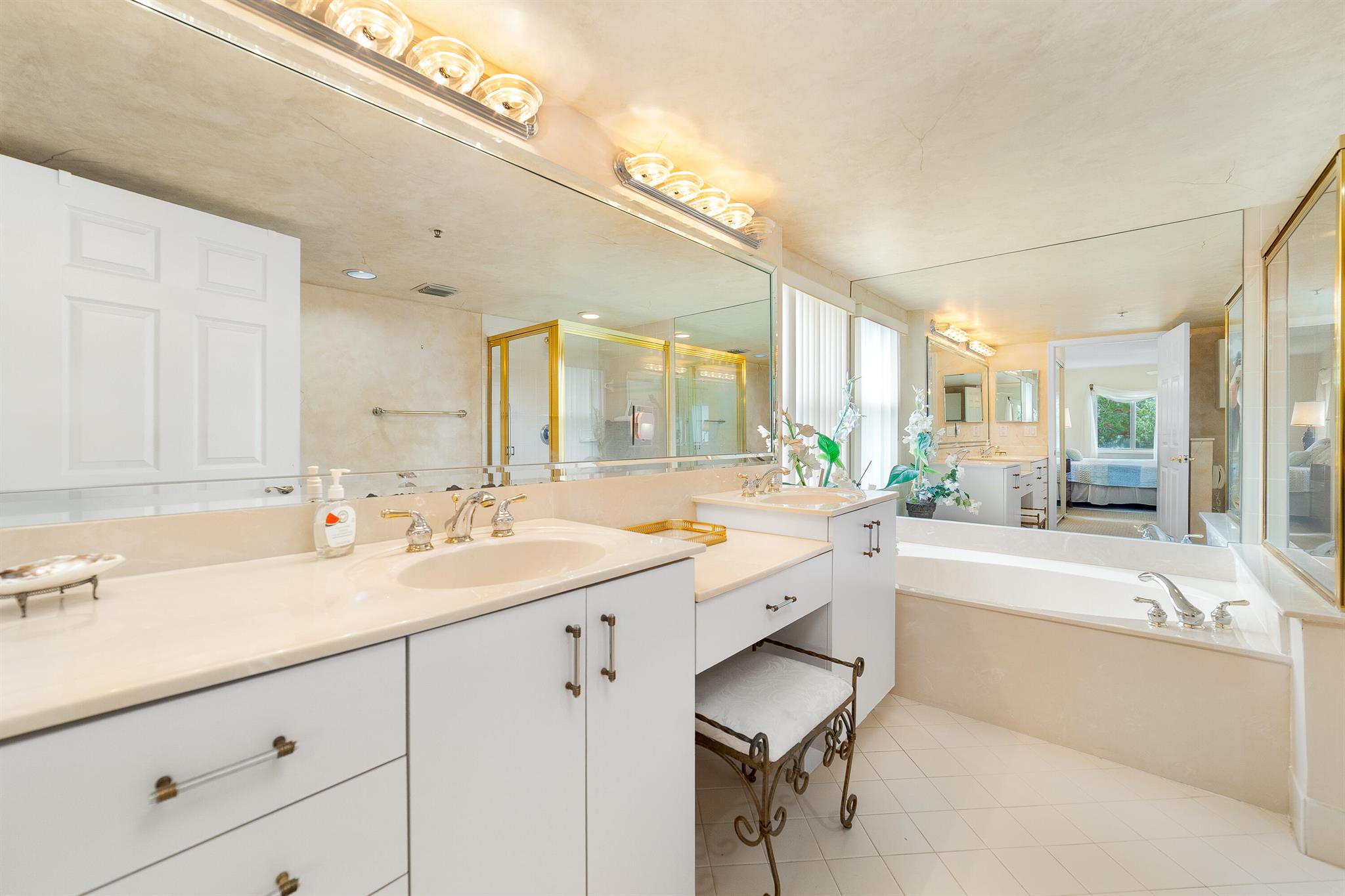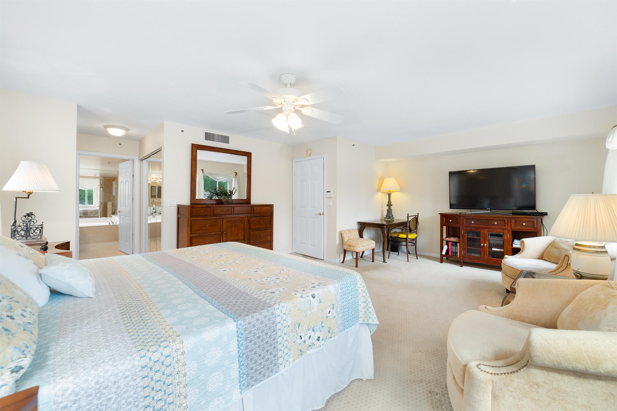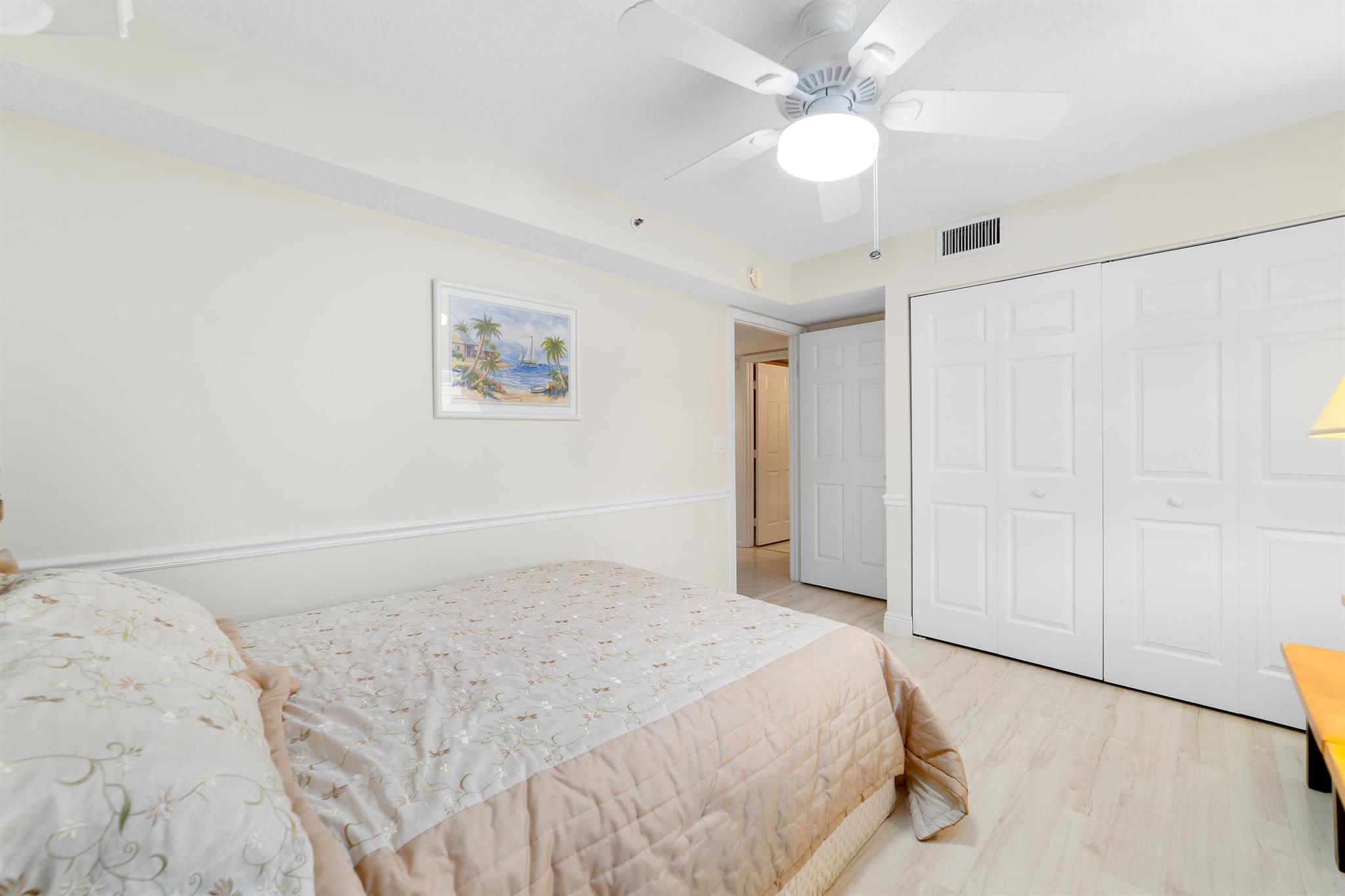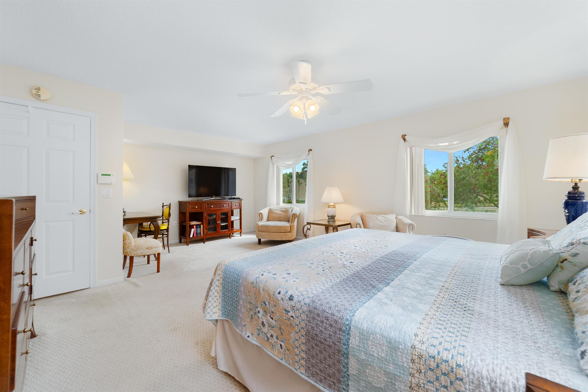 PRICED TO SELL, MOTIVATED SELLER! You'll love the gorgeous LAKE view from this bright and spacious unit in a fantastic, active 55+ community that has so much to offer! The eat-in kitchen is equipped with stainless steel appliances, Corian countertops, pantry and breakfast area. There is ceramic tile in the living areas and den, laminate in the guest bedroom and luxury carpet in the primary bedroom. The primary bedroom faces the lake, and offers a generous walk-in and strip closets. The en-suite primary bathroom is finished with dual sinks, separate tub and shower. Other notable features include a laundry room with a sink, plenty of storage closets, plantation shutters, 2023 AC and 2021 water heater. The roof is expected to be replaced in 2025. This unit is located steps away from the palm
