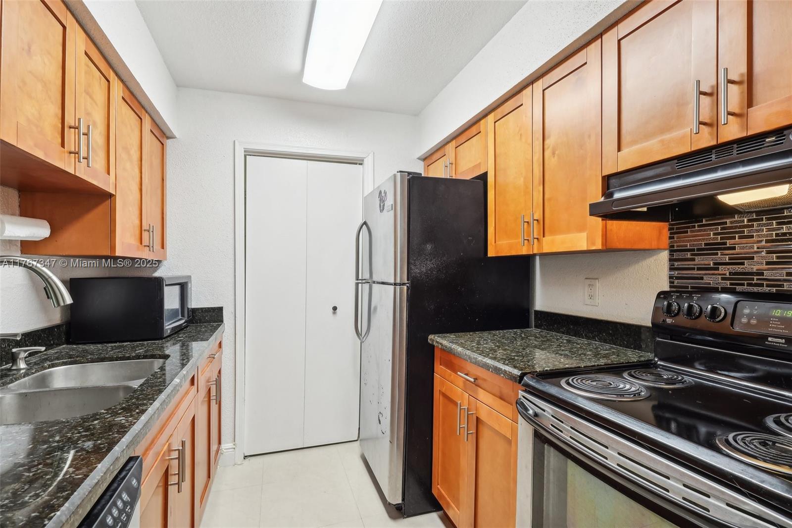 This lovely first-floor condo offers a perfect blend of comfort and modern style. The unit features porcelain tile throughout, an updated kitchen which boasts shaker, wood cabinets, sleek granite countertops, and an open floor plan that seamlessly connects to the living area, creating an ideal space for entertaining or relaxing. Other features include an updated bathroom, an outdoor patio and an extra storage room. The home also has a new washer and dryer for your convenience. Centrally located, this condo is just minutes away from shopping, restaurants, and major highways. The community offers a gym, pool and clubhouse with a low monthly fee.