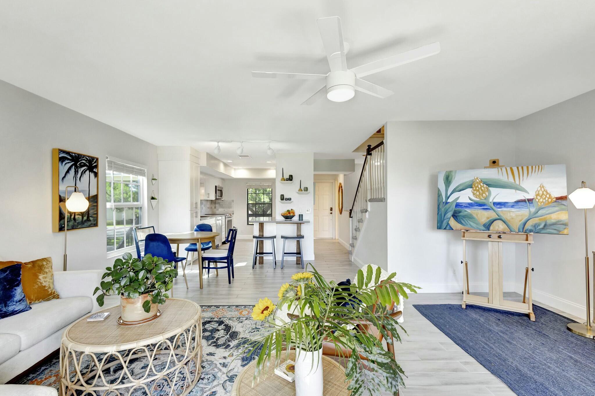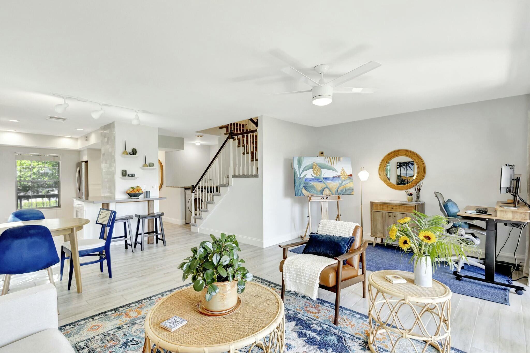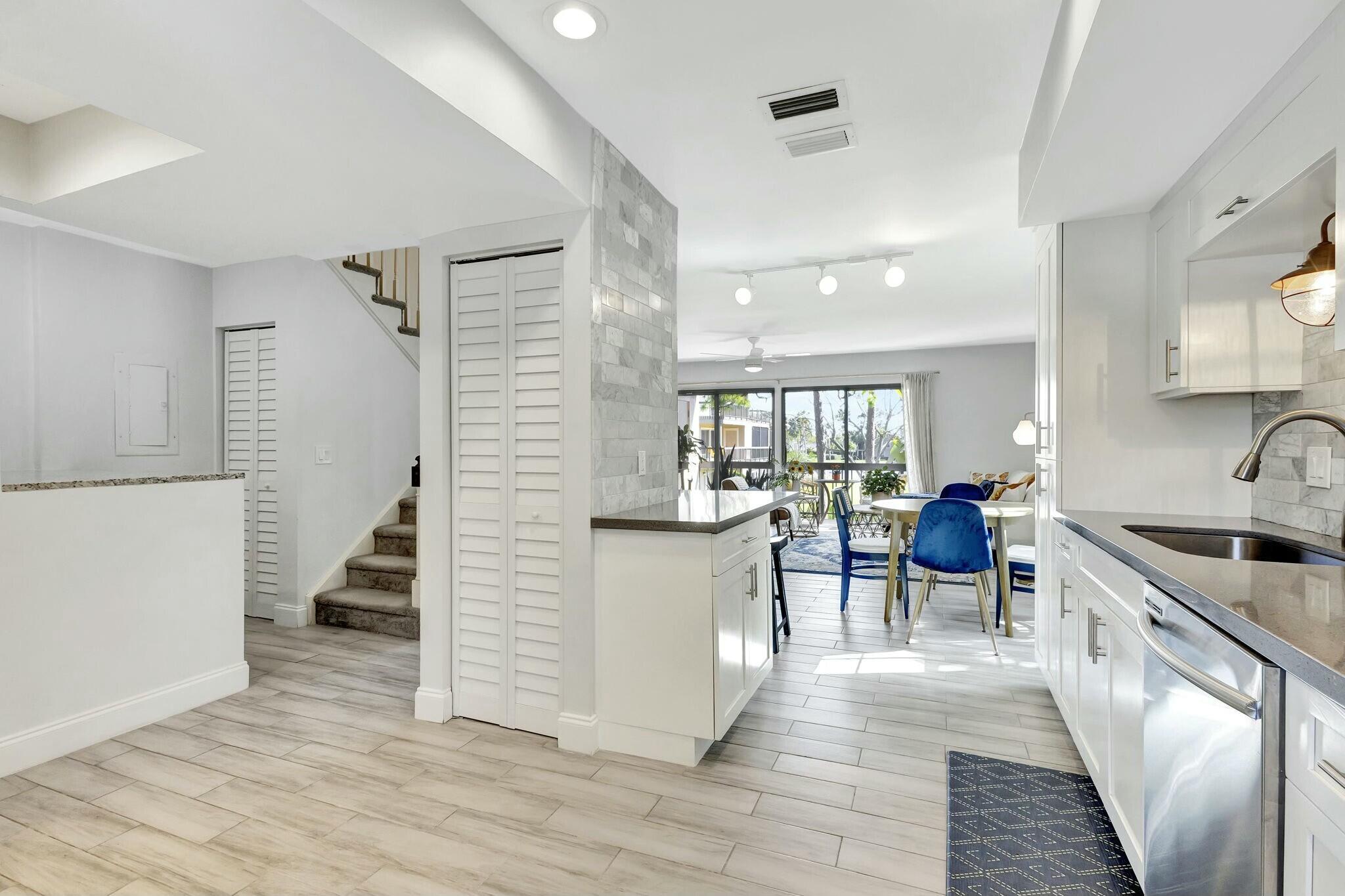 Beautifully remodeled light and bright 2 bed, 2.5 bath townhome condominium in the coveted Riverbend Country Club community in Jupiter/Tequesta (Martin County). Golf, tennis, pickleball, kayaking and paddle boarding are just a few of the activities right at your fingertips. This community sits on the Loxahatchee River. Kitchen is open with all SS appliances, white quartz counters and white cabinets. Enjoy your morning coffee out on your balcony or catch the stunning sunsets. Roof installed 2024. Carpet on steps only. Wood look tile throughout and new luxury vinyl in the bedrooms. California closets installed in the primary giving ample space for storage. AC 2019, Refrigerator 2020, Dryer 2017, Hot Water Heater 2021. Partial Impact windows. Don't miss out on this move in ready home!!
