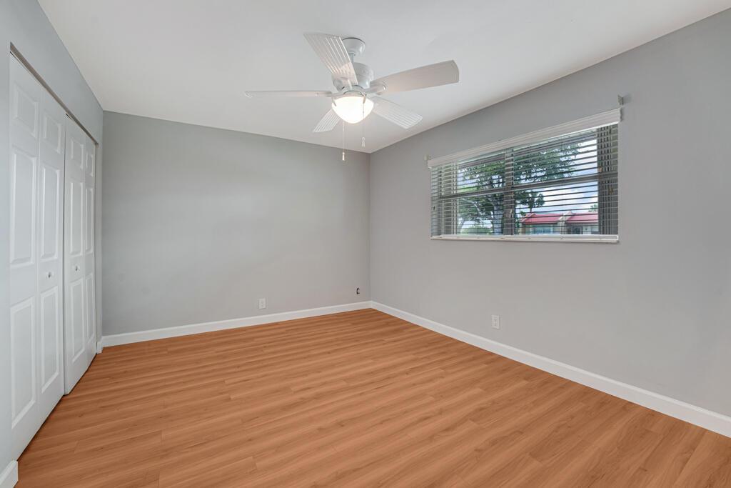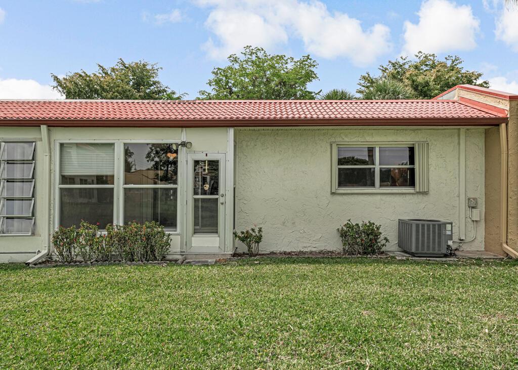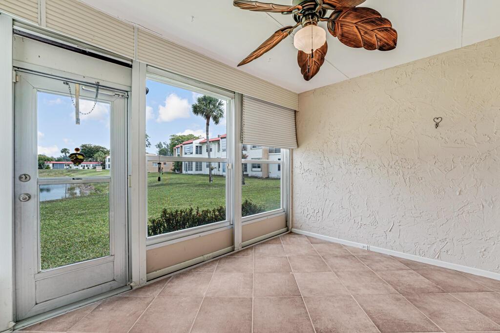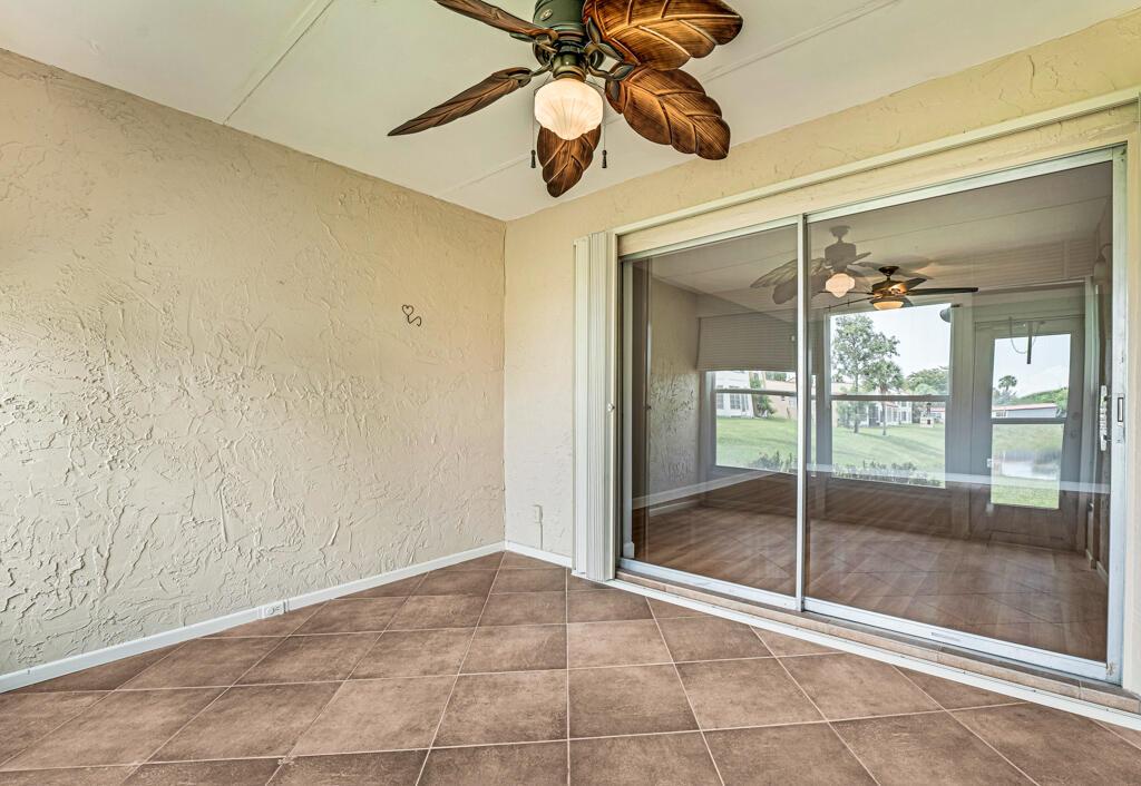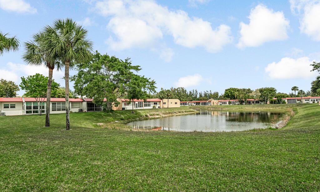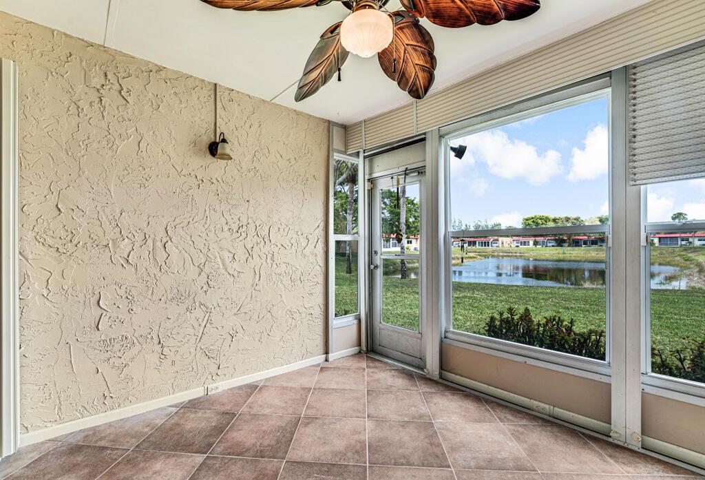 Bright & Spacious - Move-In Ready Corner Villa-Beautifully renovated 2/2 villa in Golden Lakes, a 55+ guard-gated community. This home offers a dedicated dining area, a glass-enclosed porch, and stunning lake views. The kitchen features Stainless Steel appliances, granite counters, and ceiling-height cabinets. Both baths are remodeled w/ walk-in showers. Roll-down & accordion storm shutters provide full storm protection. Just steps from the satellite pool. In-unit washer/dryer. Monthly fees cover cable, water, bldg insurance, & high-speed internet & more. Enjoy the active community w/ courtesy bus, fitness classes, weekly movies, & more. Just mins from downtown WPB, the beach, PBI Airport, & major highways like the FL Turnpike. A little piece of heaven I Seller open to holding mortgage!