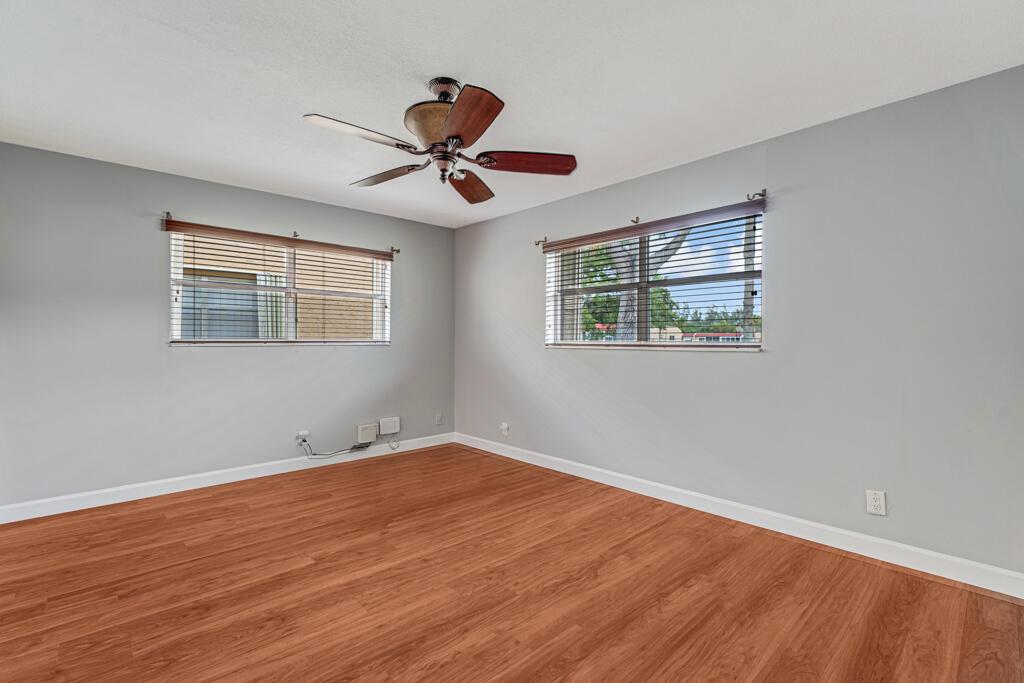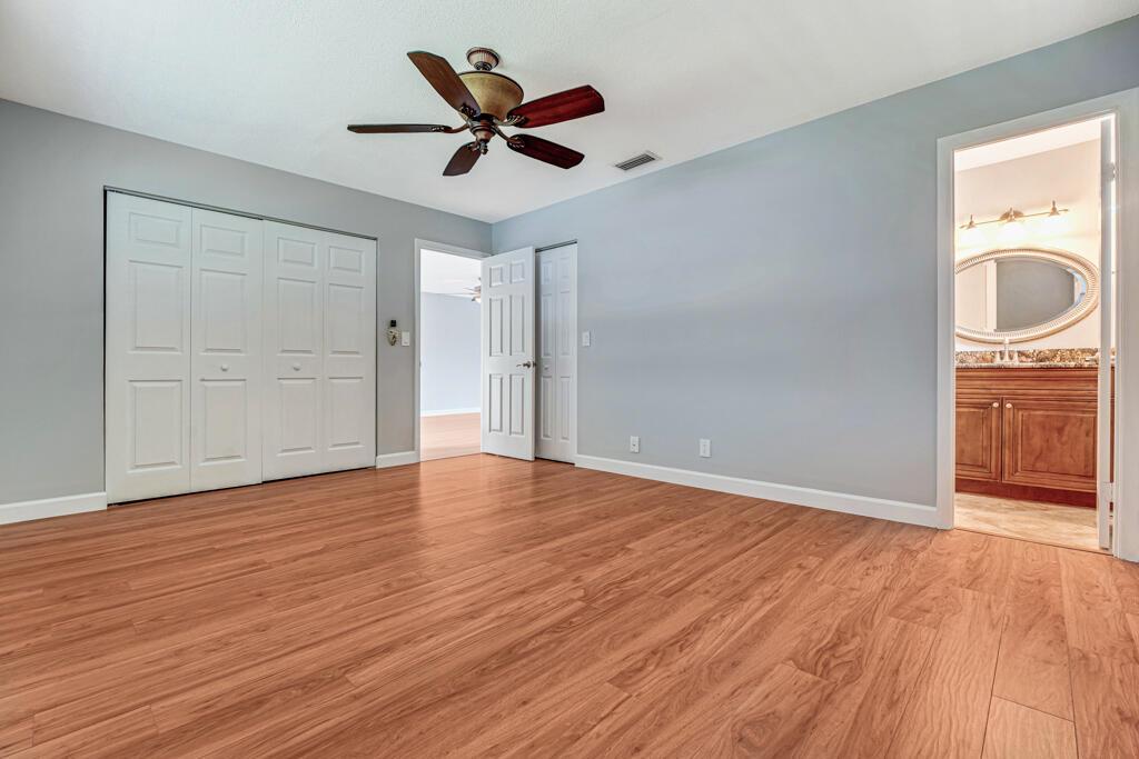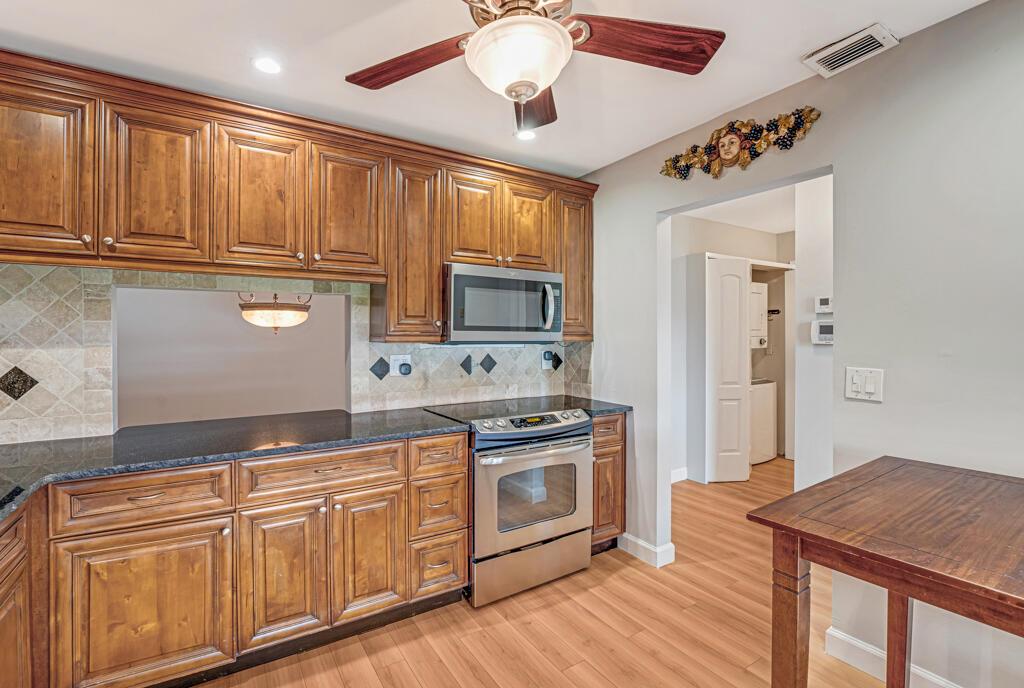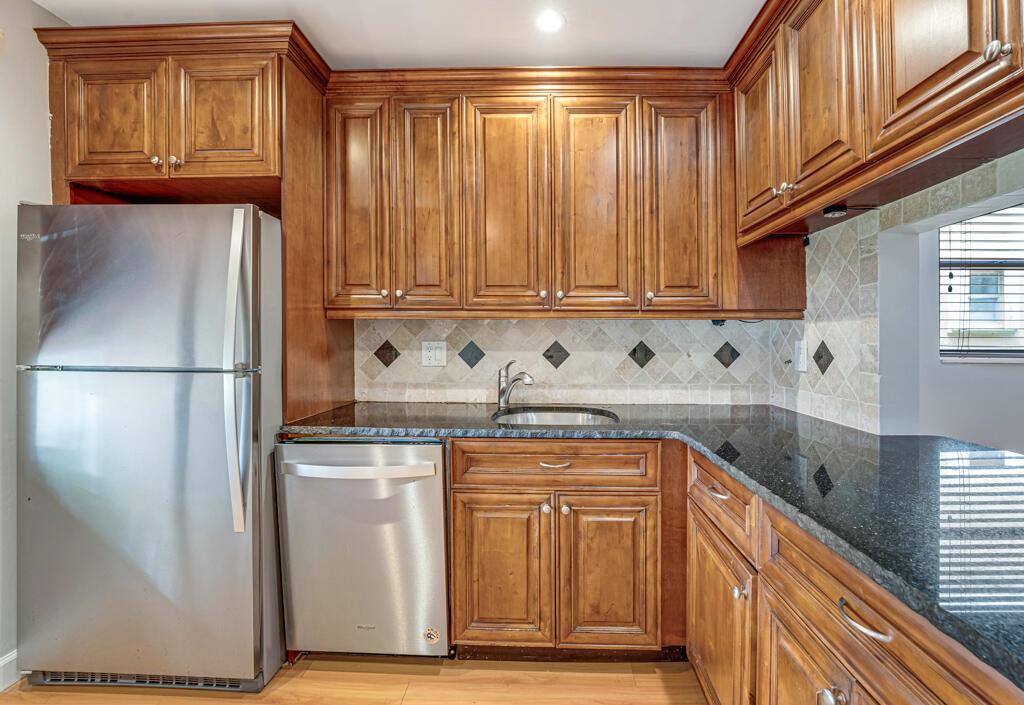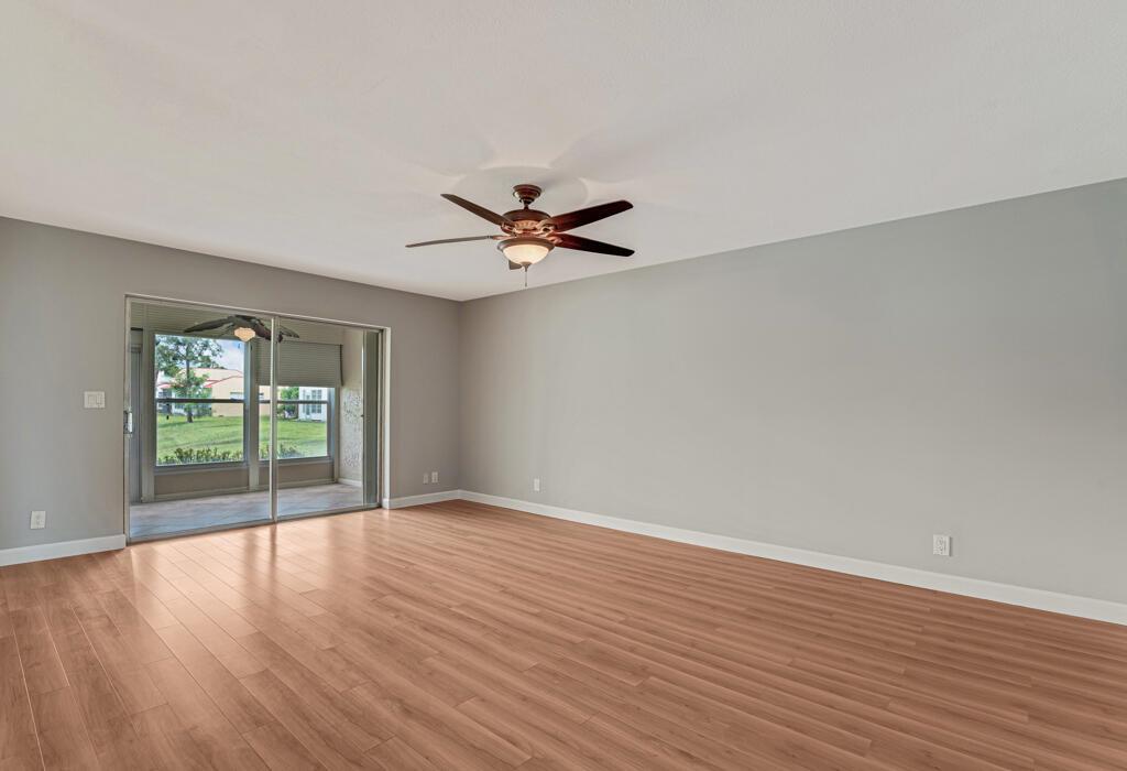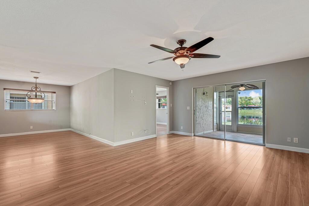 Bright & Spacious - Move-In Ready Corner Villa-Beautifully renovated 2/2 villa in Golden Lakes, a 55+ guard-gated community. This home offers a dedicated dining area, a glass-enclosed porch, and stunning lake views. The kitchen features Stainless Steel appliances, granite counters, and ceiling-height cabinets. Both baths are remodeled w/ walk-in showers. Roll-down & accordion storm shutters provide full storm protection. Just steps from the satellite pool. In-unit washer/dryer. Monthly fees cover cable, water, bldg insurance, & high-speed internet & more. Enjoy the active community w/ courtesy bus, fitness classes, weekly movies, & more. Just mins from downtown WPB, the beach, PBI Airport, & major highways like the FL Turnpike. A little piece of heaven I Seller open to holding mortgage!
