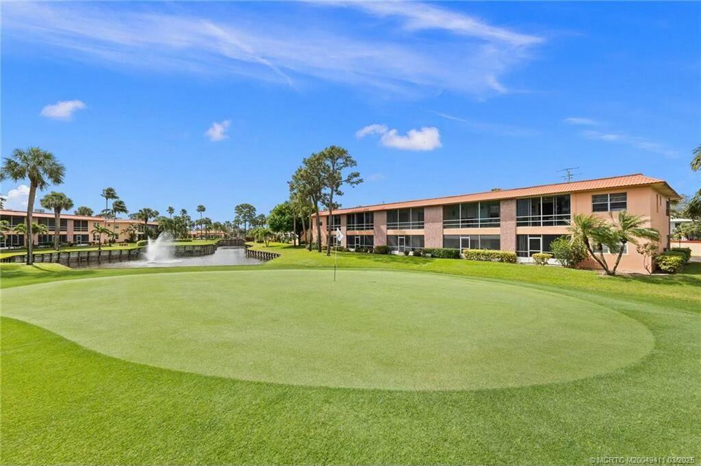 2 bedroom 1 bath 1st floor unit that overlooks the amenities and the golf course. Furnished and ready to move-into. Kitchen with lots of cabinets. Master with . Full bath has tub/shower combination. UNLIMITED GOLF. Close to the pool, putting green, picnic area, bocce, shuffleboard, library and one of the two clubhouses. 2nd clubhouse overlooks the St Lucie River with 2 fishing piers and storage area for canoe/kayak upon availability. Water, sewer, cable, wifi are included. No rentals for the first 3 years. Call for details.